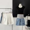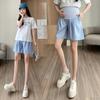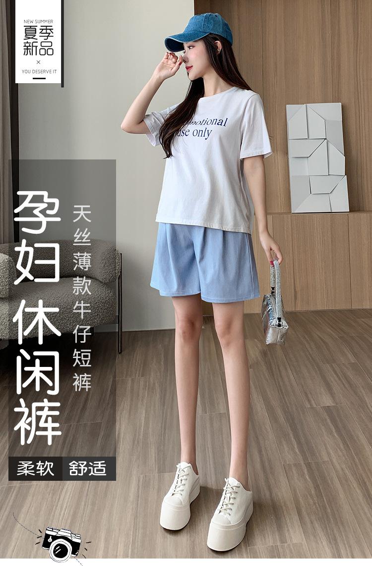 Shorts de Verano para Mujer Embarazada para Ropa Exterior Denim Tencel Pantalones de Verano de Pierna Ancha de Cinco Puntos para Pantalones Pequeños y Holgados para el Verano