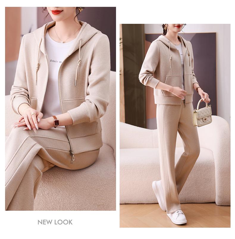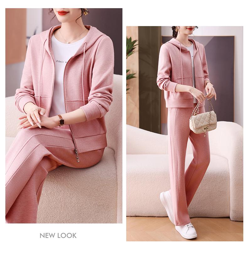 Pantalones Banana de Gama Alta Traje Deportivo Popular Primavera 2025 Sudadera Holgada con Capucha Reductora de Edad Conjunto de Dos Piezas para Mujer