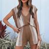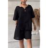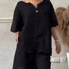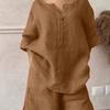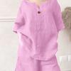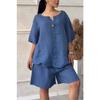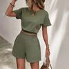 Europeo y Americano Transfronterizo 2025 Amazon Nuevo Elegante Top Holgado Shorts de Color Puro para Mujer Conjunto Casual de Dos Piezas