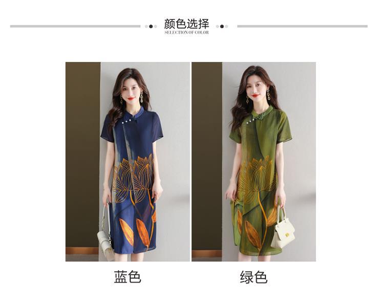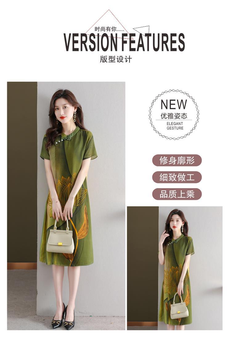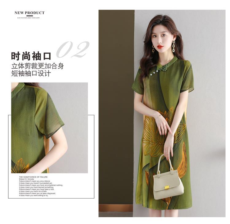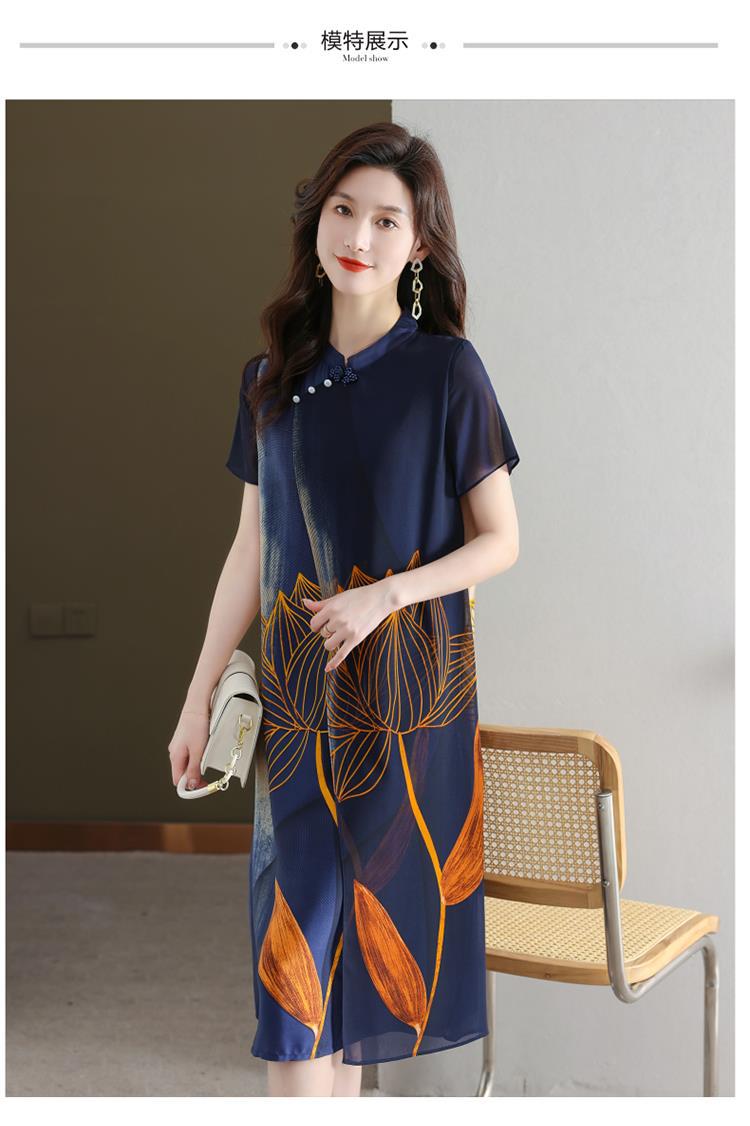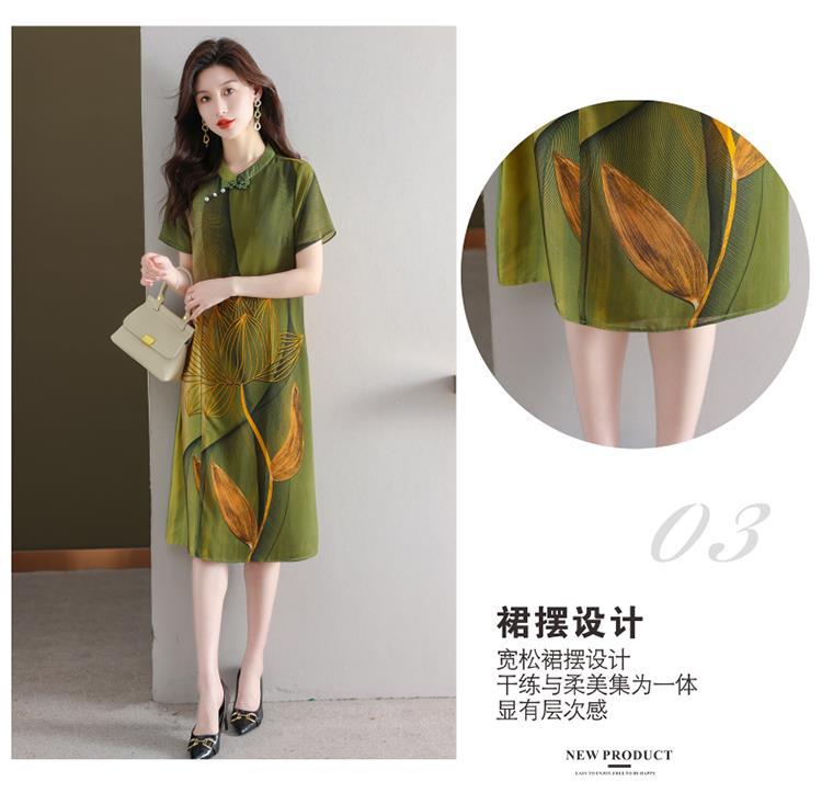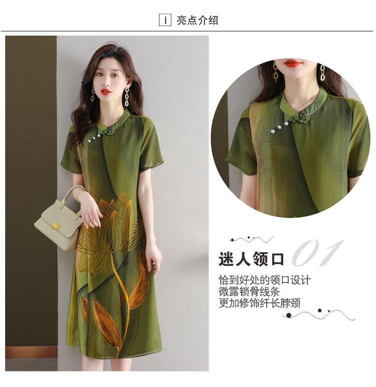 Vestido cheongsam de verano para madres, elegante y nuevo, vestido largo de gasa de seda noble de verano para mujeres de mediana edad y mayores.