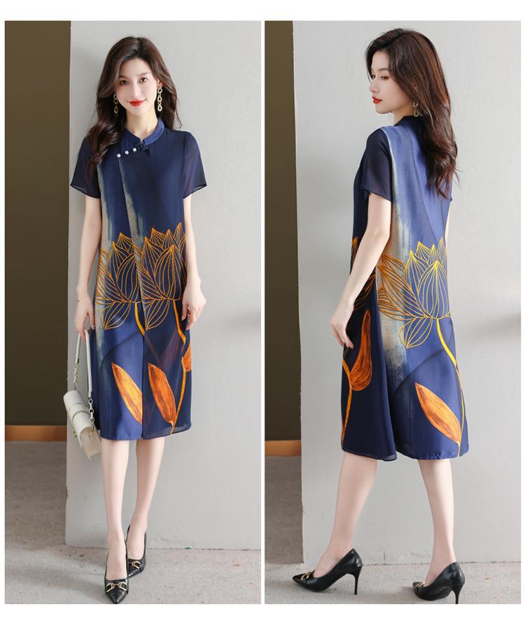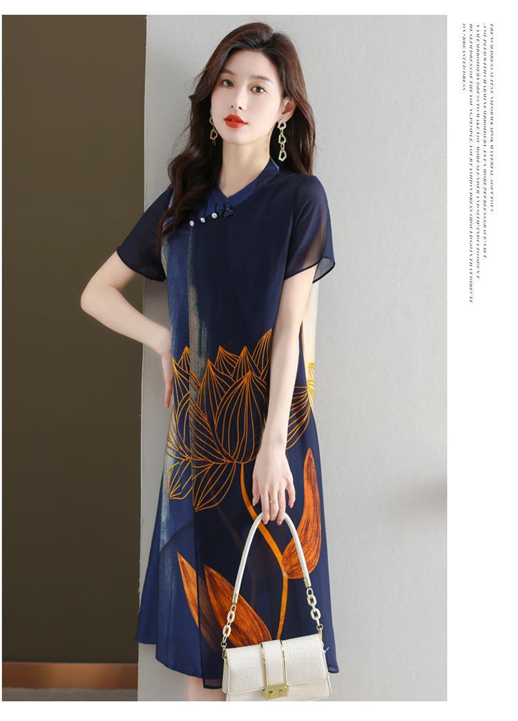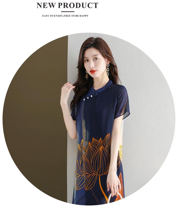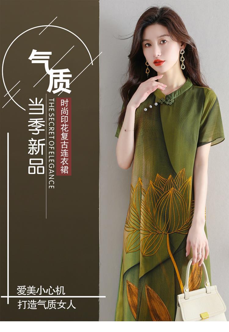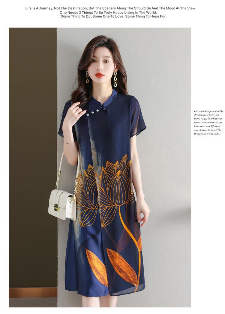Vestido cheongsam de verano para madres, elegante y nuevo, vestido largo de gasa de seda noble de verano para mujeres de mediana edad y mayores.