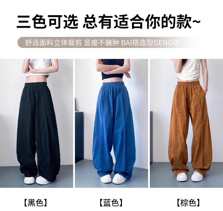 Pantalones anchos de seda de hielo para mujer, de verano, finos, de talla grande, de cintura alta, holgados, informales, de secado rápido, estilo relajado.