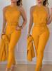 Traje de dos piezas cruzado de cintura ajustada, informal, de color liso, para mujer, 2024, estilo europeo y americano.