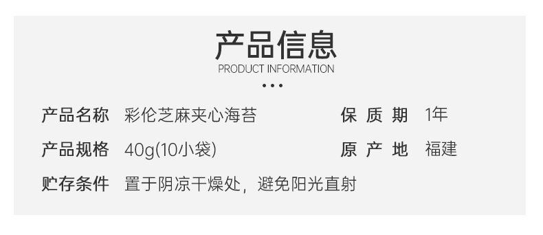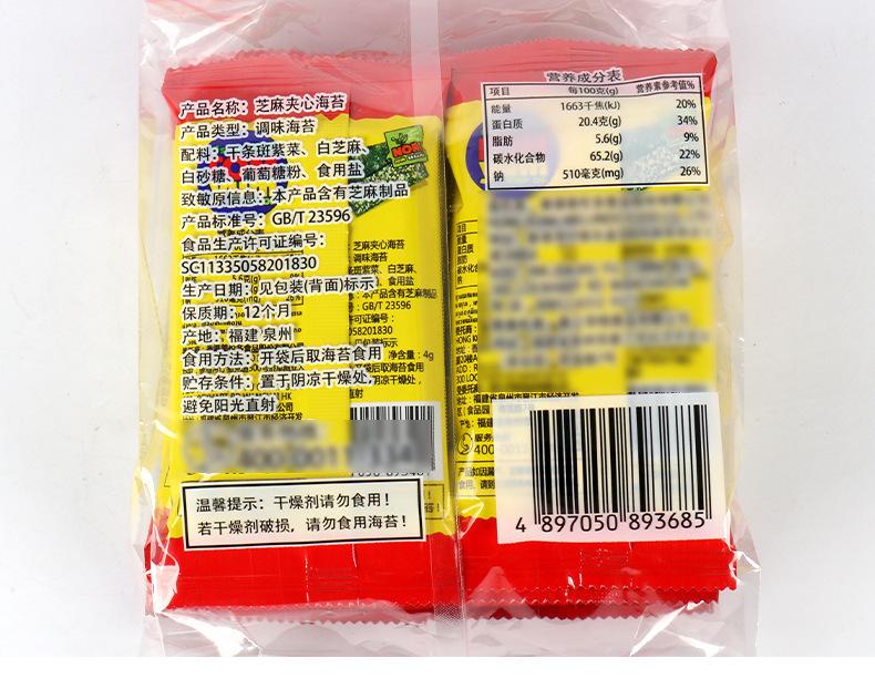As of october 26th, sesame-filled seaweed snacks 40g (10 individual packets)/bag, shelf life: 1 year
