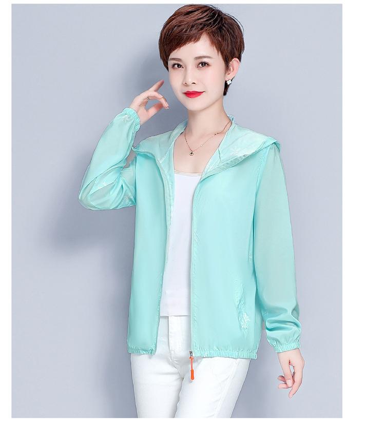 Ropa de protección solar para madres, ropa de verano para mujeres de mediana edad y mayores, abrigo fino, sombrero de manga larga para abuela, nuevo estilo, color sólido de verano, suelto