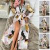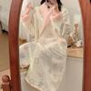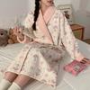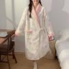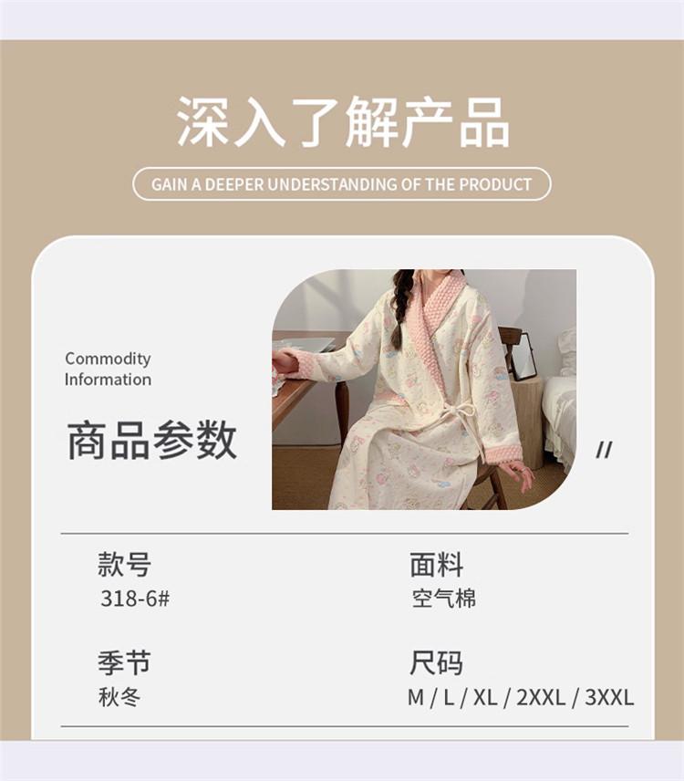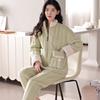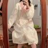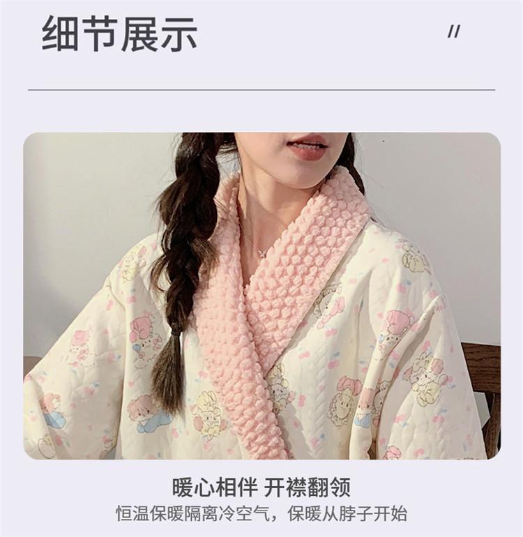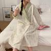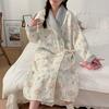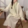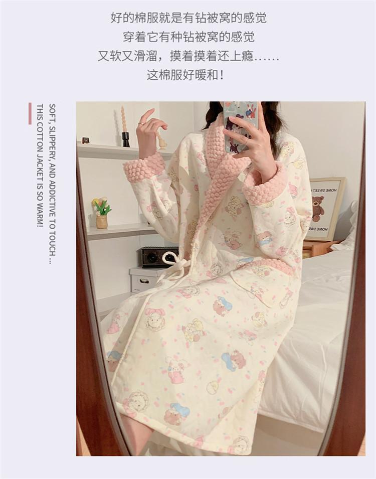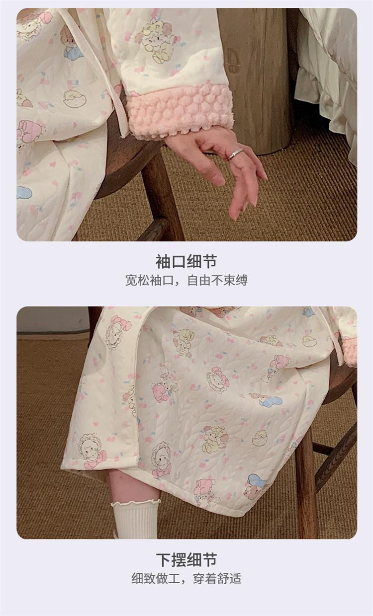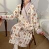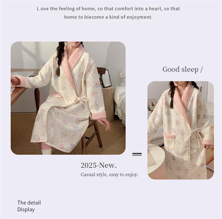 Pijama Sándwich de Algodón Aire para Mujer Otoño e Invierno Batín Grueso con Cordones Manga Larga Talla Grande Camisón Estilo Largo Ropa para el Hogar Camisón