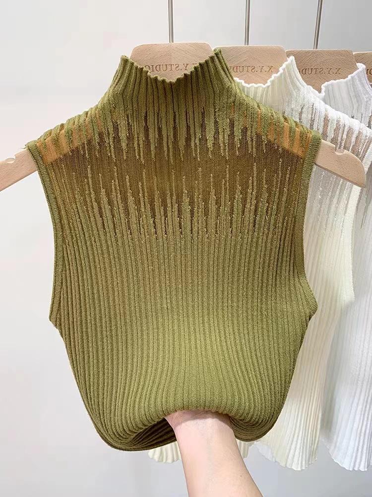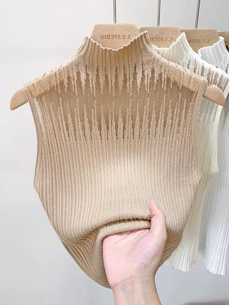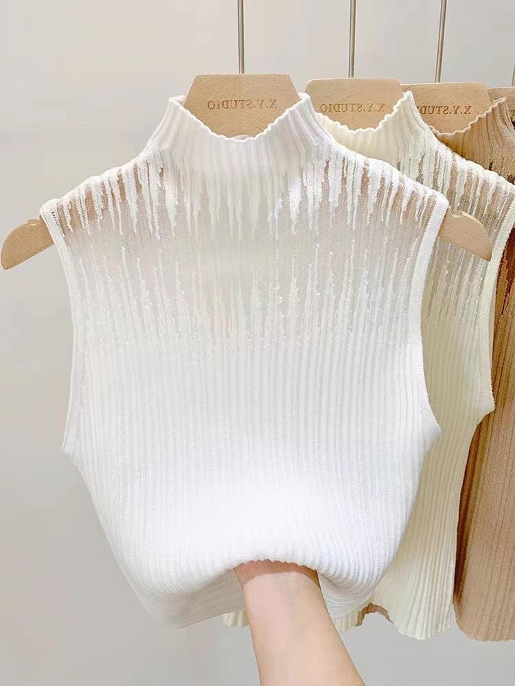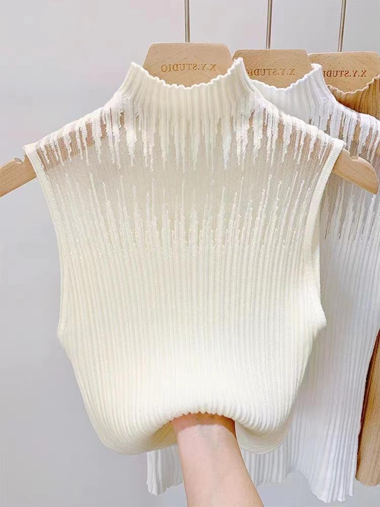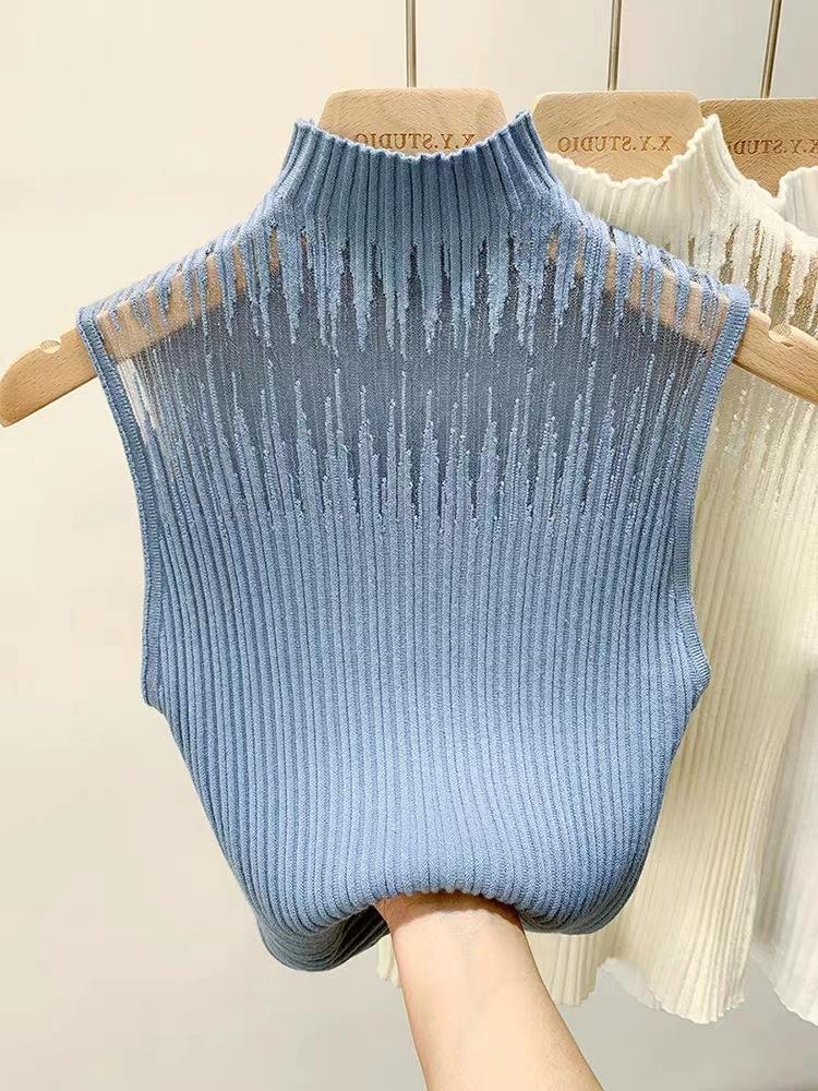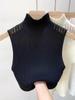 Camisola pequeña hueca para mujer, camisa interior de base, ropa exterior de primavera y verano, suéter de cuello alto medio, top corto sin mangas, otoño e invierno