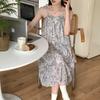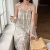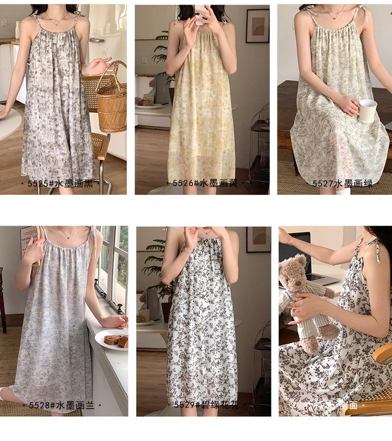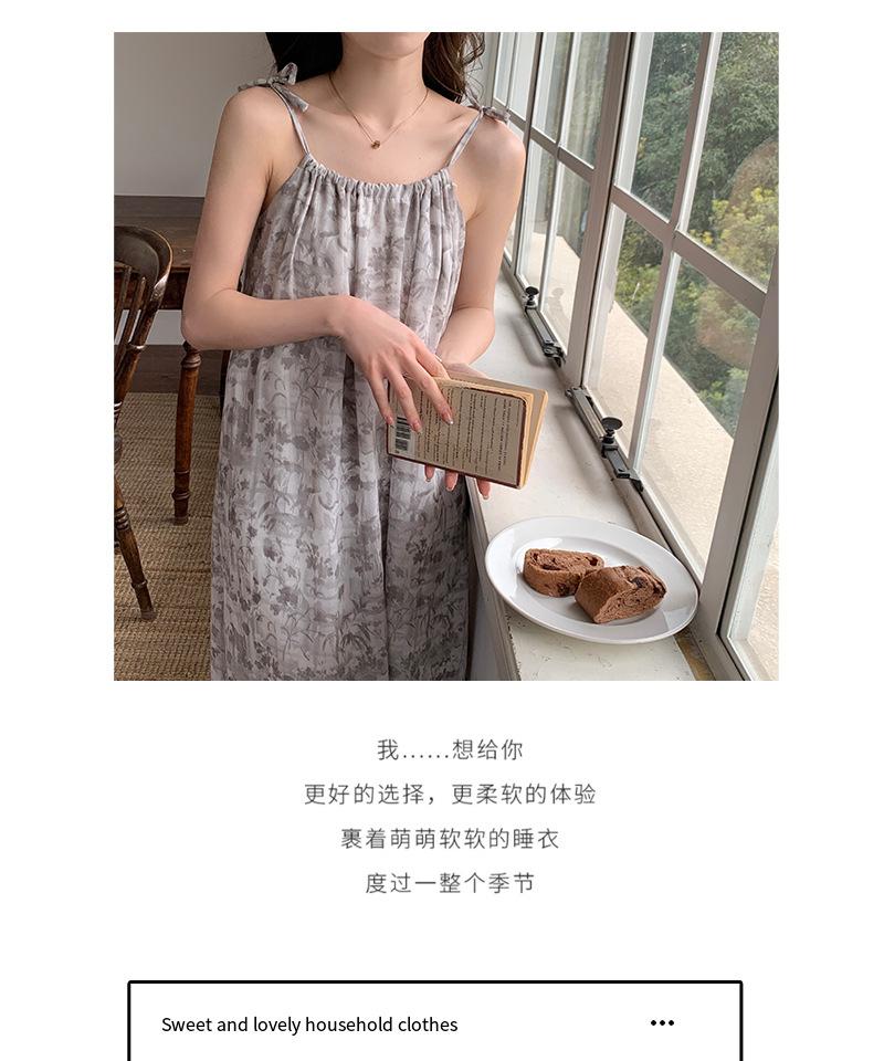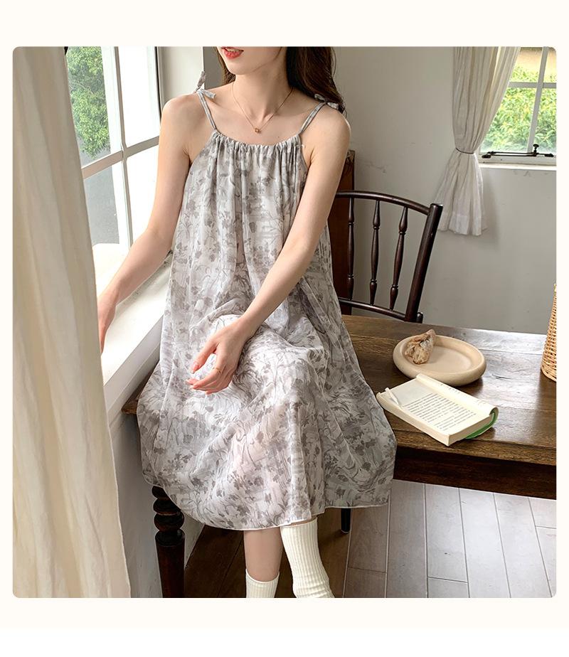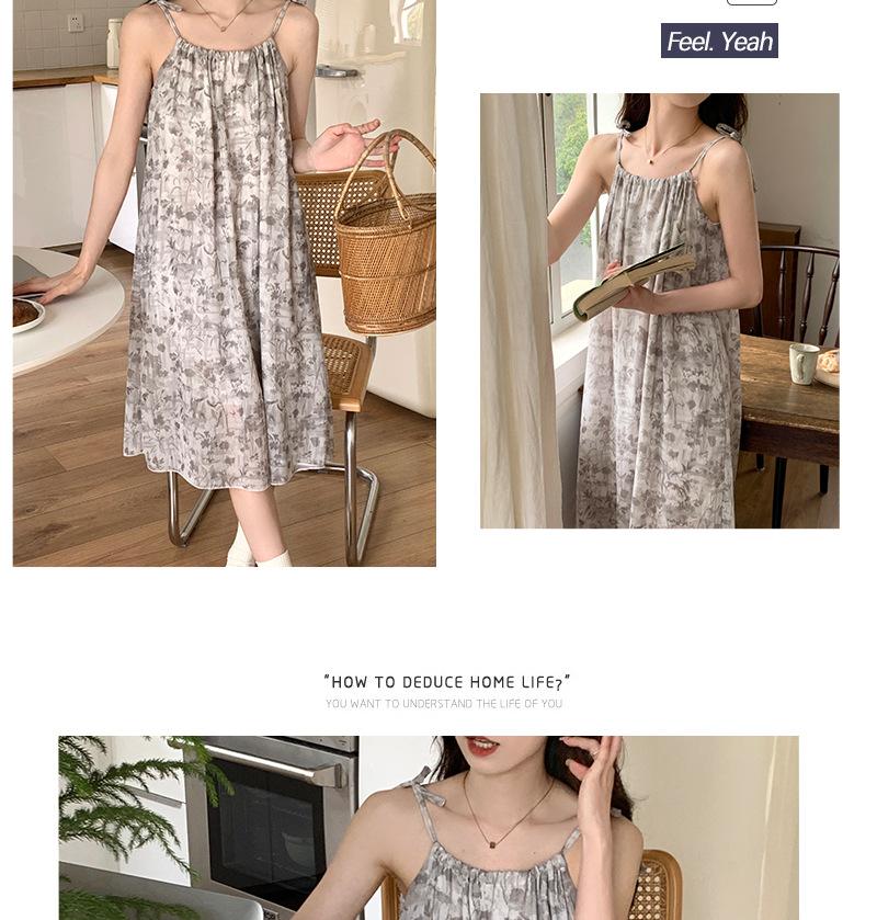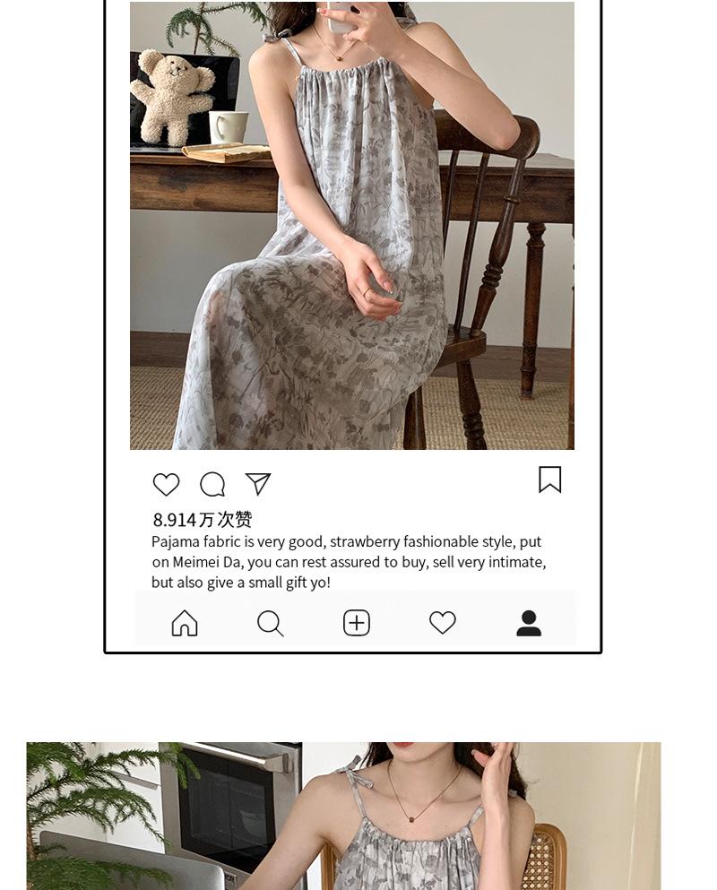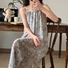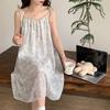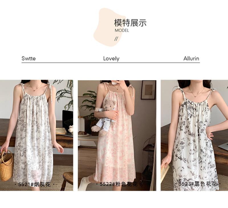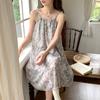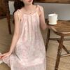 Camisón Sexy de Tirantes para Mujer Verano Largo Medio Estilo Coreano Dulce Estilo Vacacional Floral Malla de Seda de Hielo Pijama Ropa para el Hogar