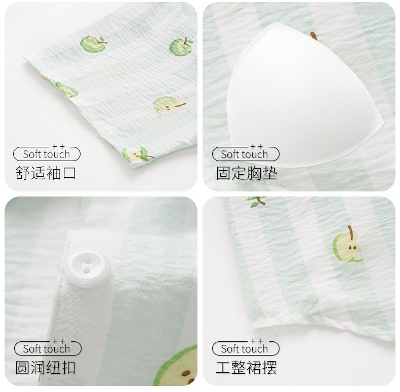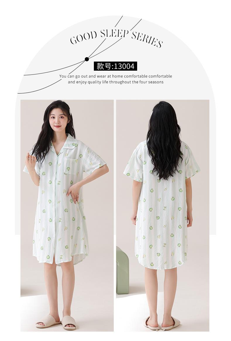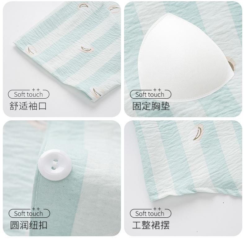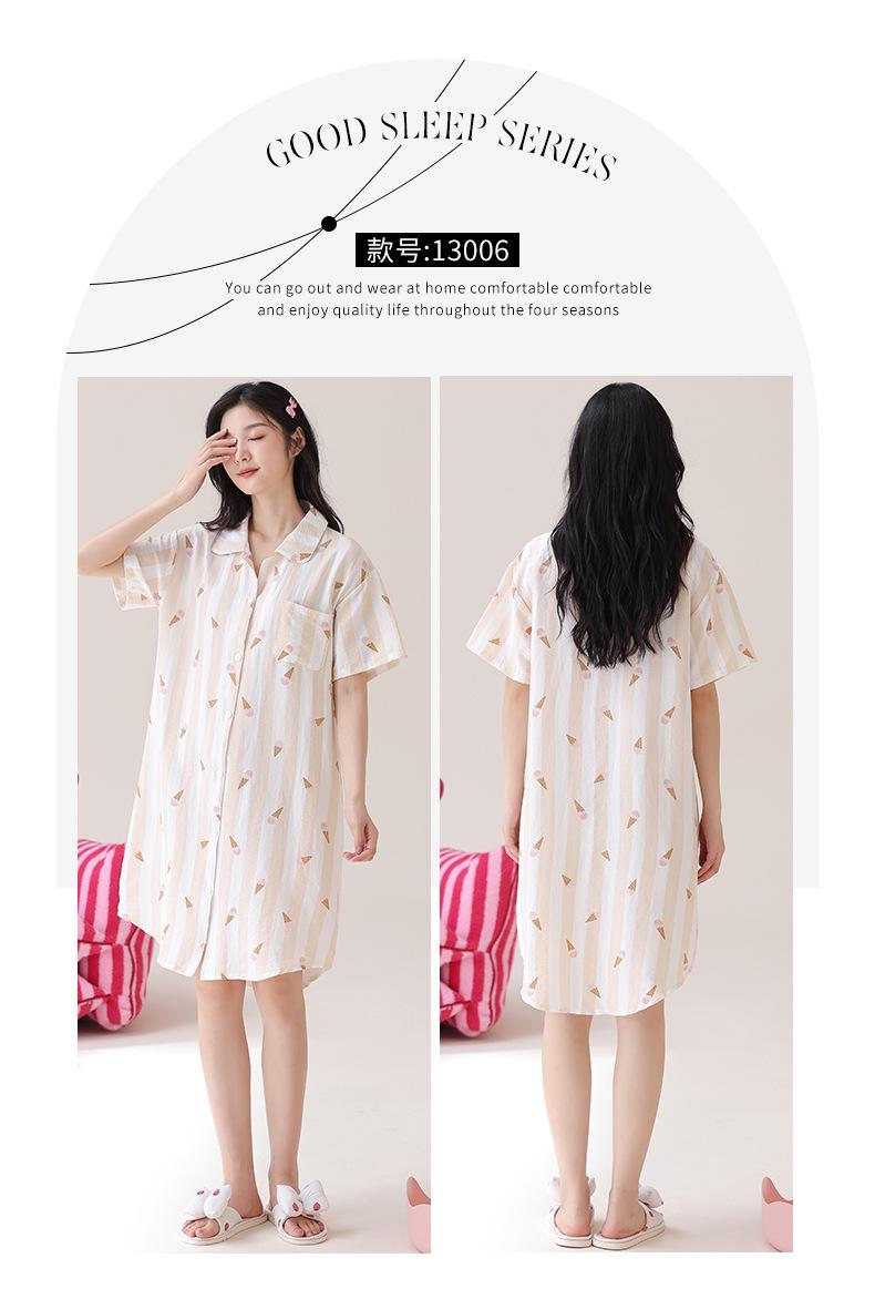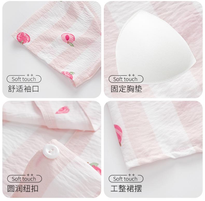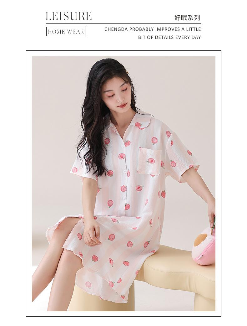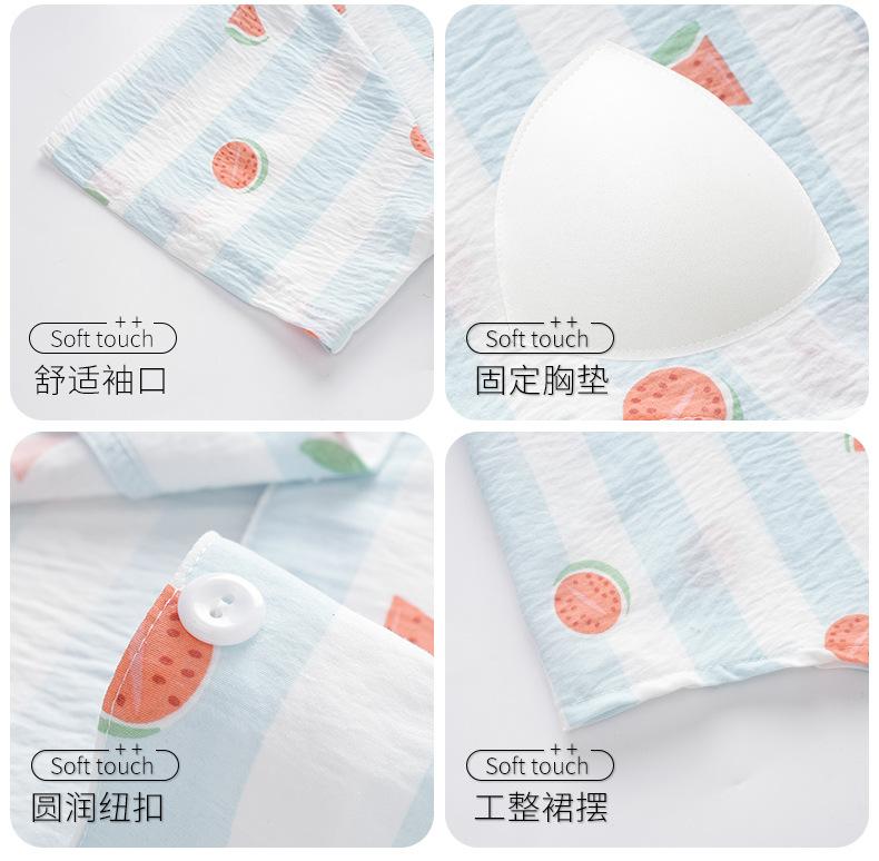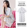 Camisón de Manga Corta para Mujer Verano Nubes Algodón Sexy Cárdigan con Almohadilla en el Pecho Ropa para el Hogar Dulce Vestido de Pijama de Princesa