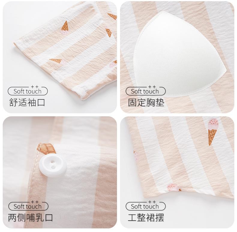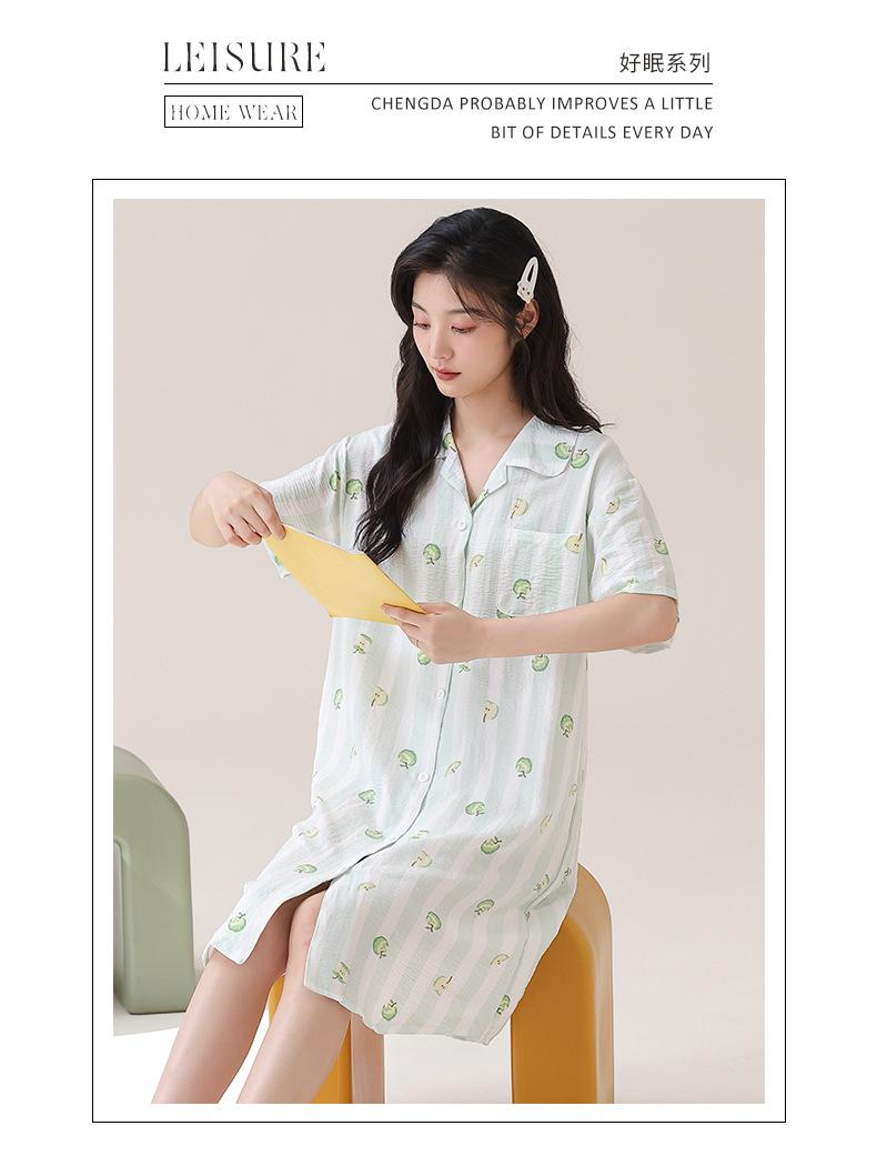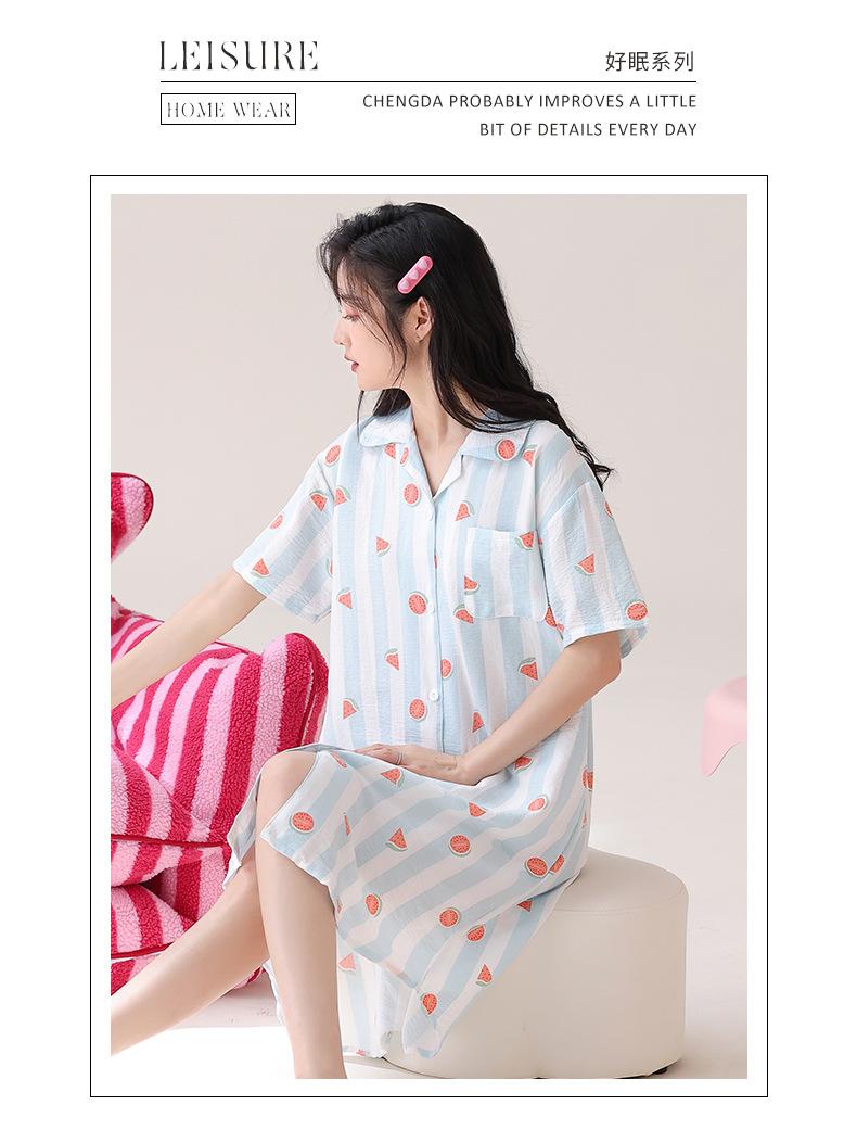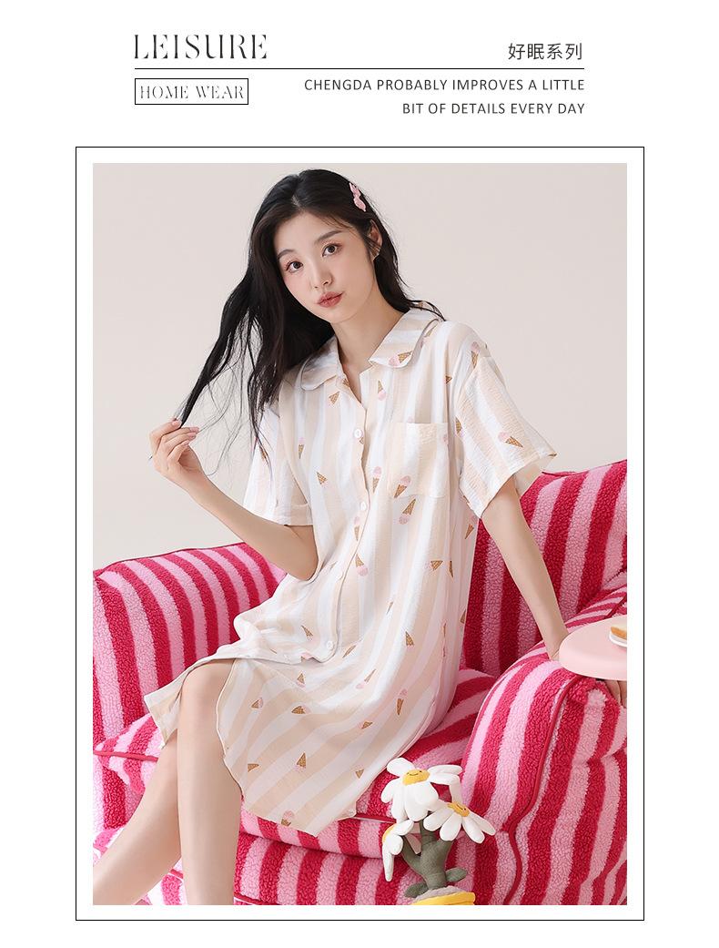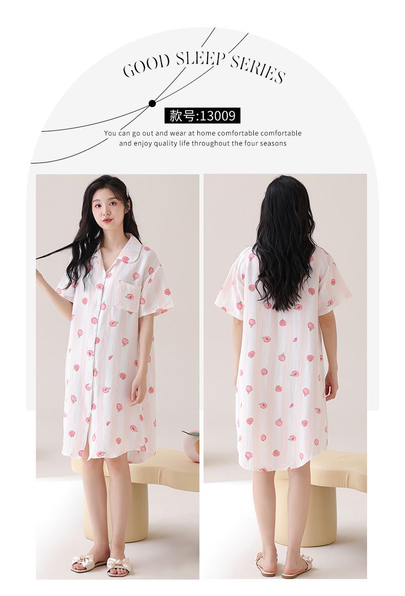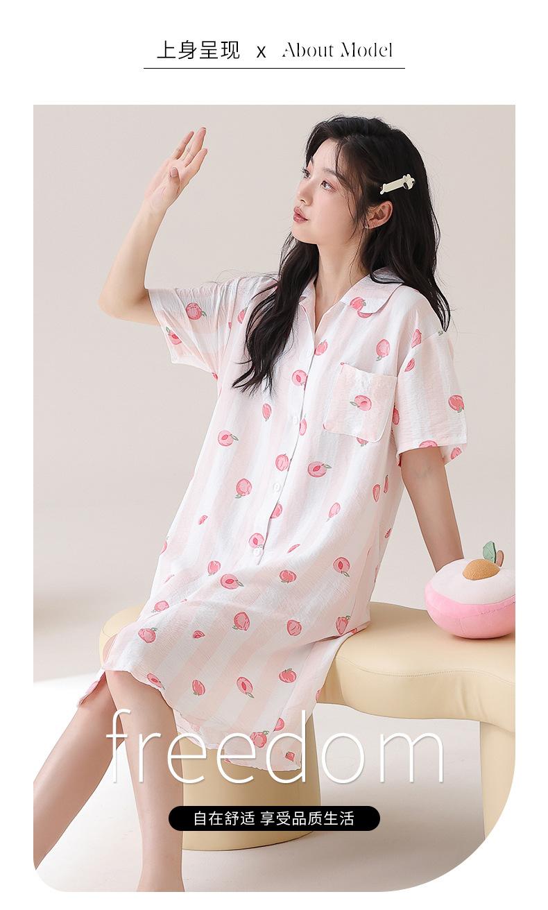 Camisón de Manga Corta para Mujer Verano Nubes Algodón Sexy Cárdigan con Almohadilla en el Pecho Ropa para el Hogar Dulce Vestido de Pijama de Princesa