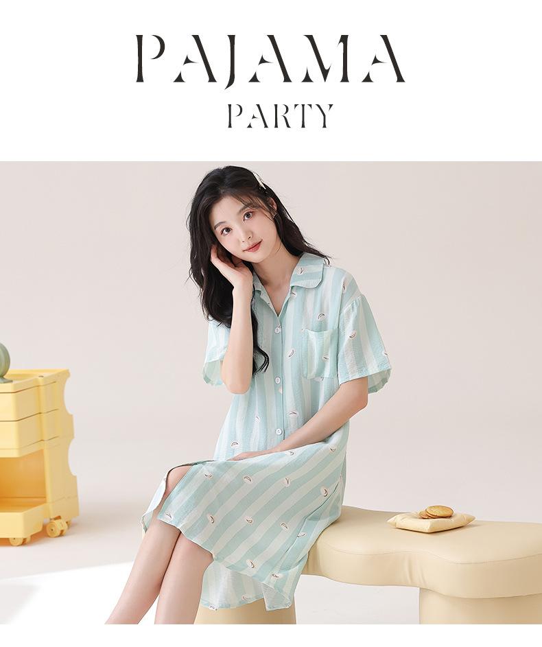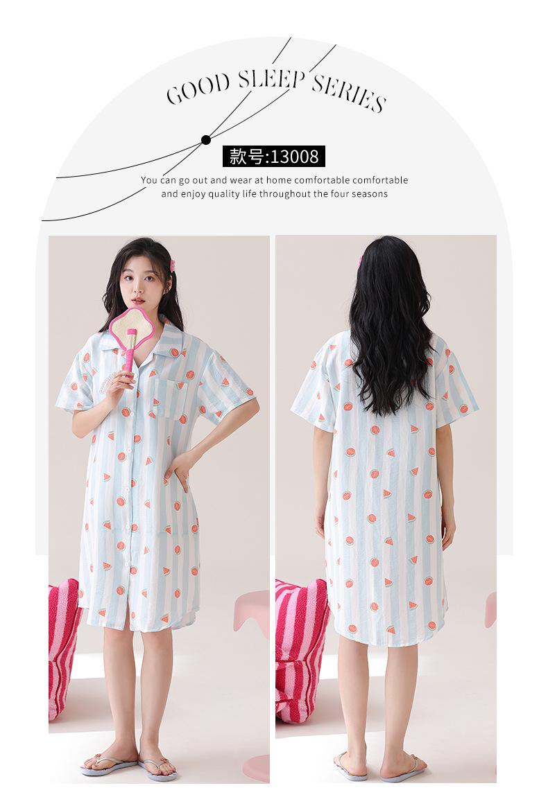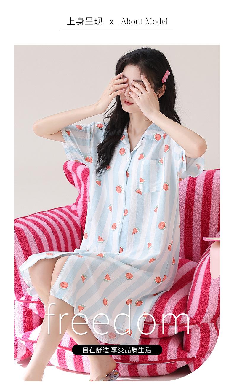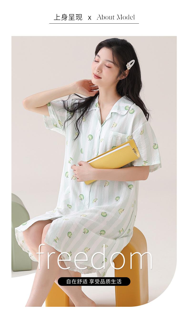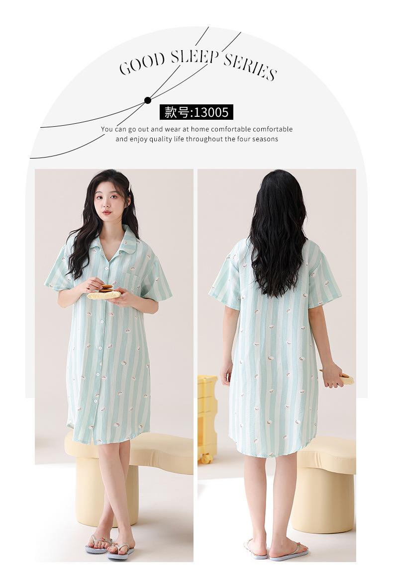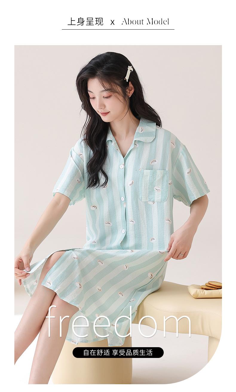 Camisón de Manga Corta para Mujer Verano Nubes Algodón Sexy Cárdigan con Almohadilla en el Pecho Ropa para el Hogar Dulce Vestido de Pijama de Princesa