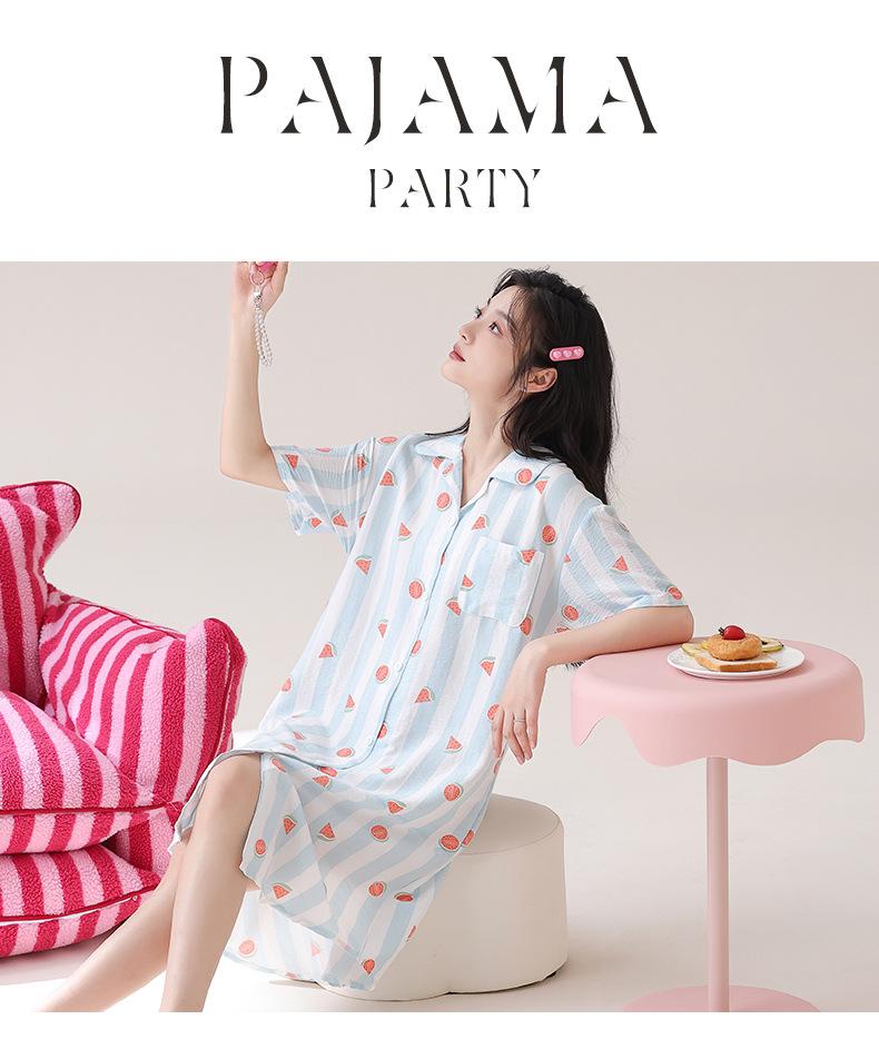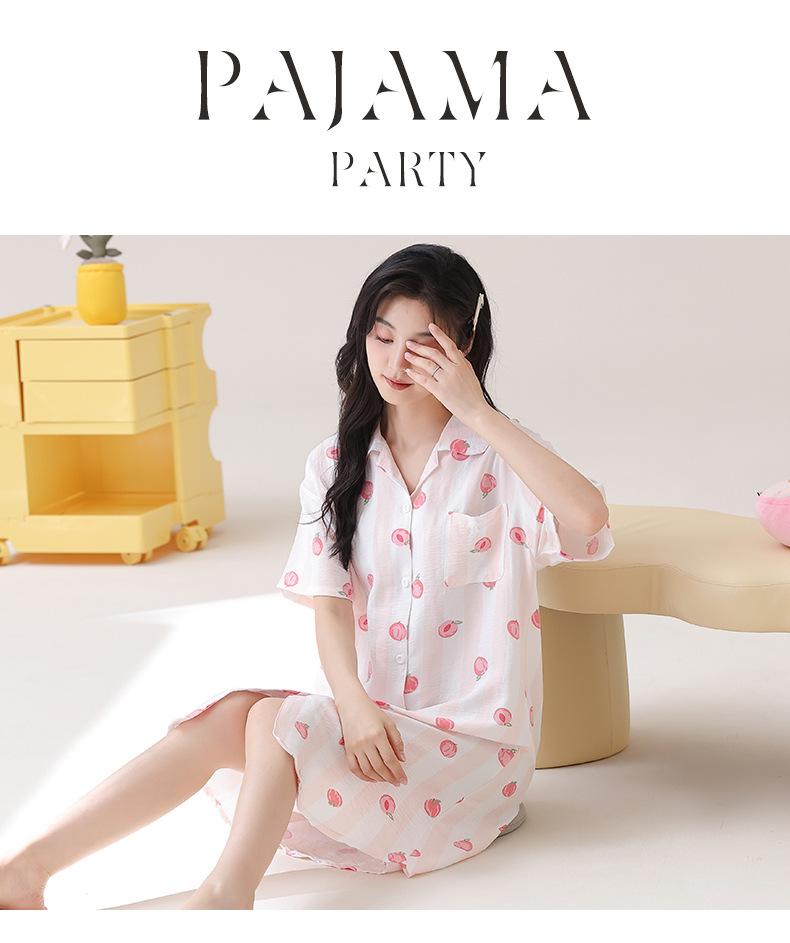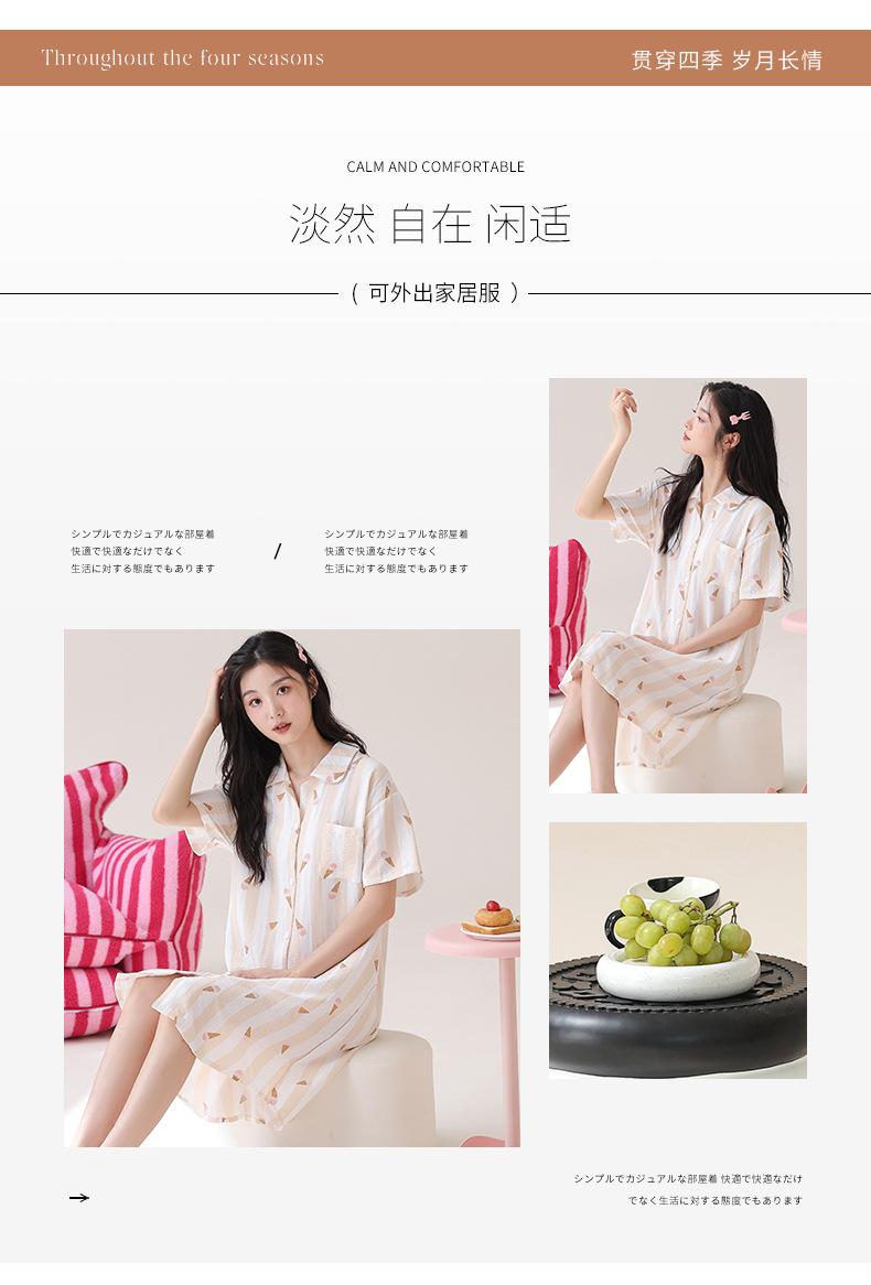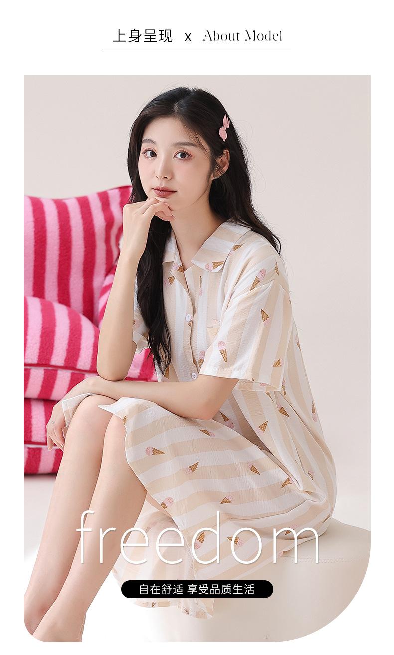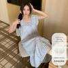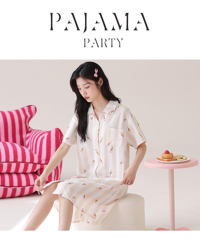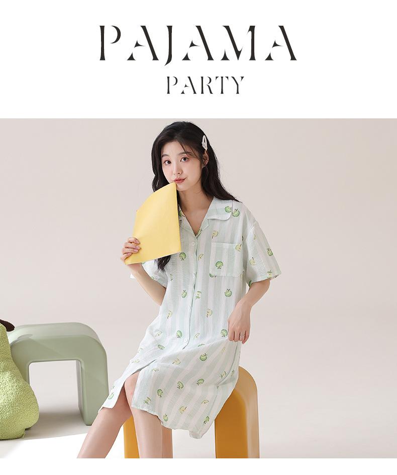 Camisón de Manga Corta para Mujer Verano Nubes Algodón Sexy Cárdigan con Almohadilla en el Pecho Ropa para el Hogar Dulce Vestido de Pijama de Princesa