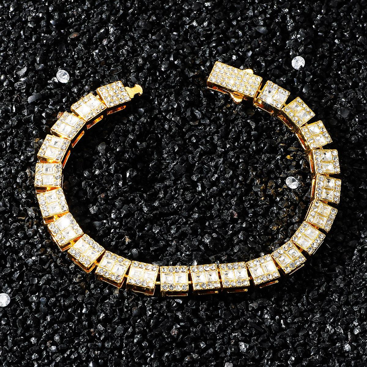 Pulsera de estilo hip-hop europeo y americano con pequeños diamantes cuadrados, moderna y moderna, para hombres y mujeres, estilo punk de discoteca, pulsera decorativa de moda disco