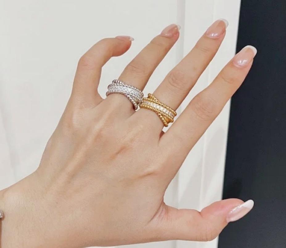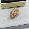 V Edición Oro Seiko Anillo Doble Trenzado Anillo de Diamantes Cruzados Moda Europea y Americana Lujo Ligero Anillos de Cuentas Dos en Uno