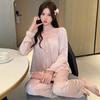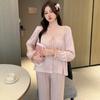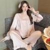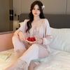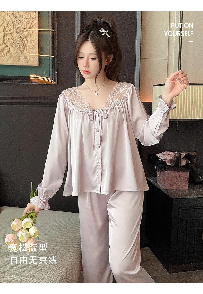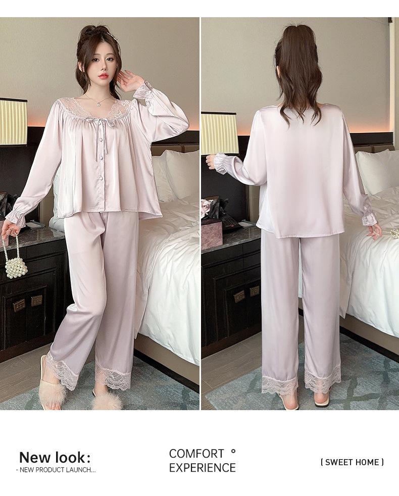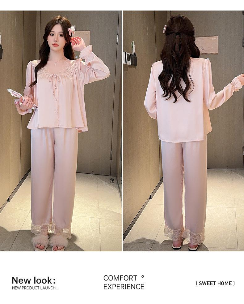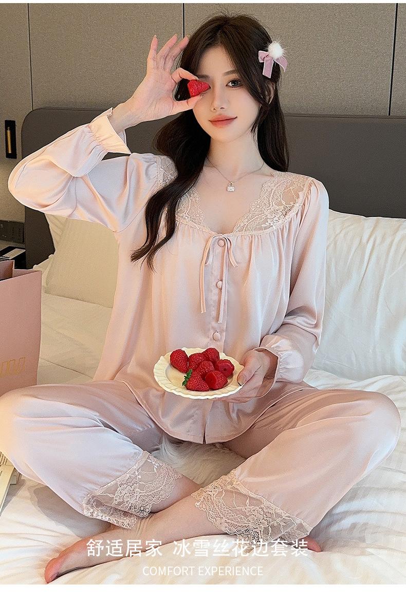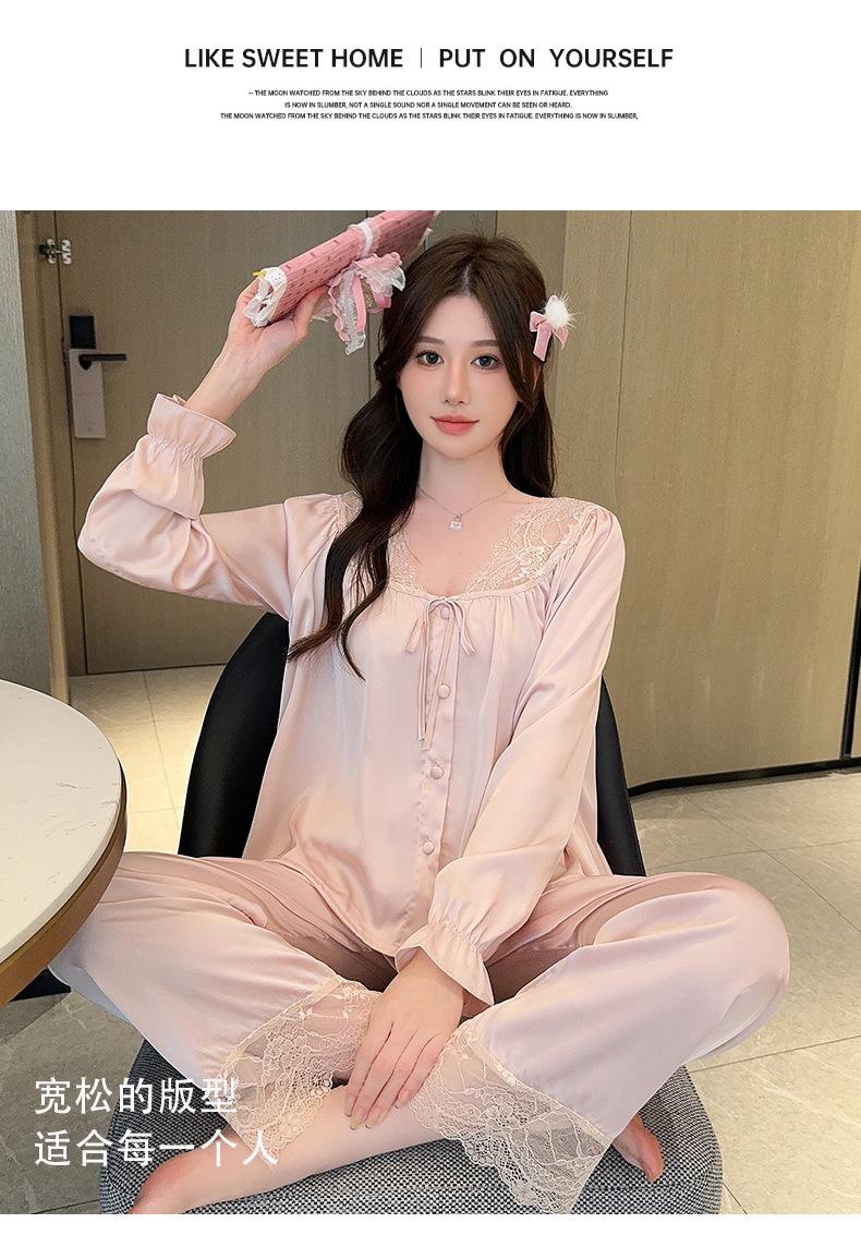 Pijamas de mujer estilo Pure Desire, otoño 2024, nuevos conjuntos de seda hielo y nieve de manga larga para el hogar, traje de corte con encaje dulce.