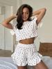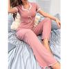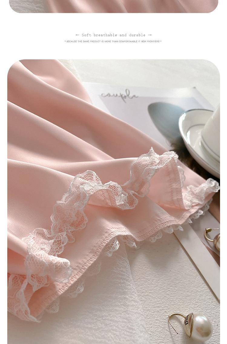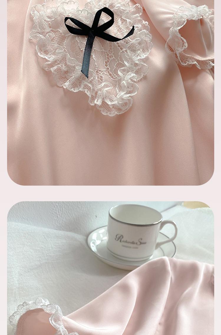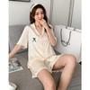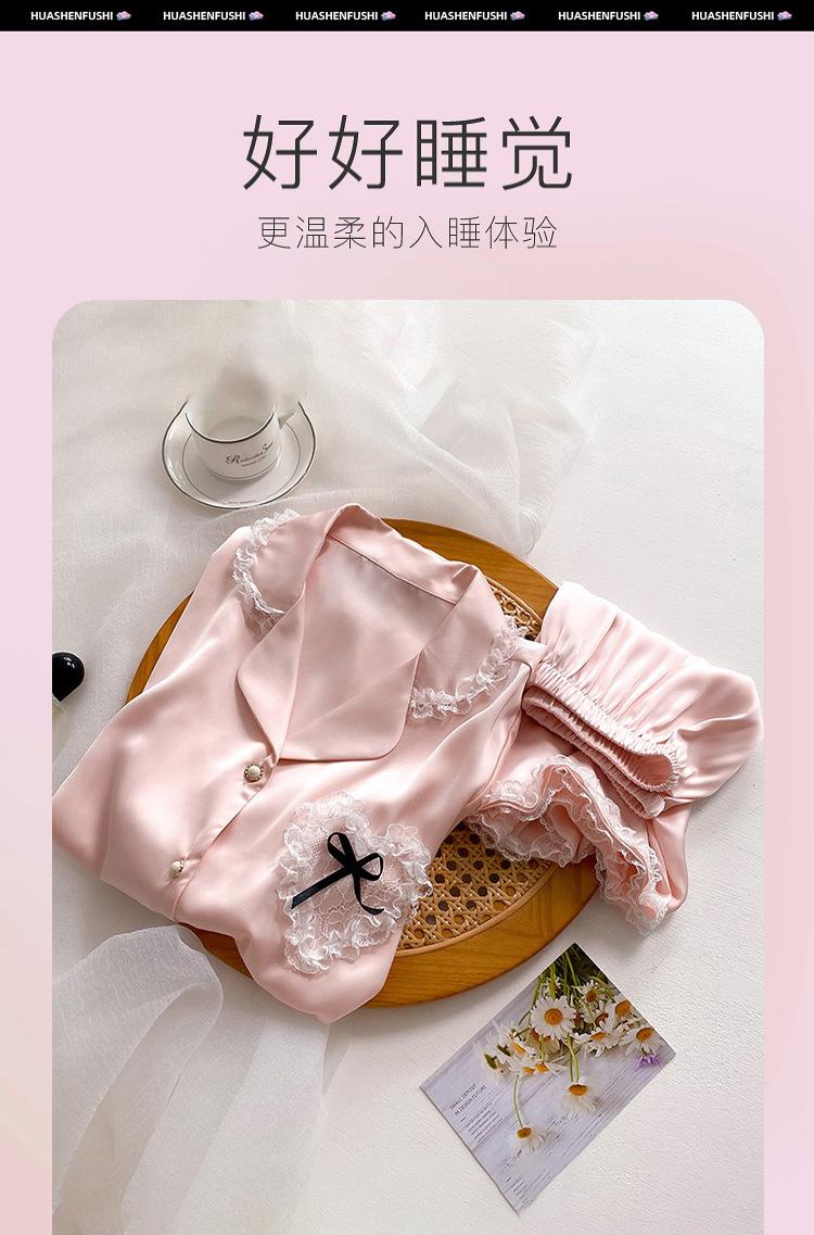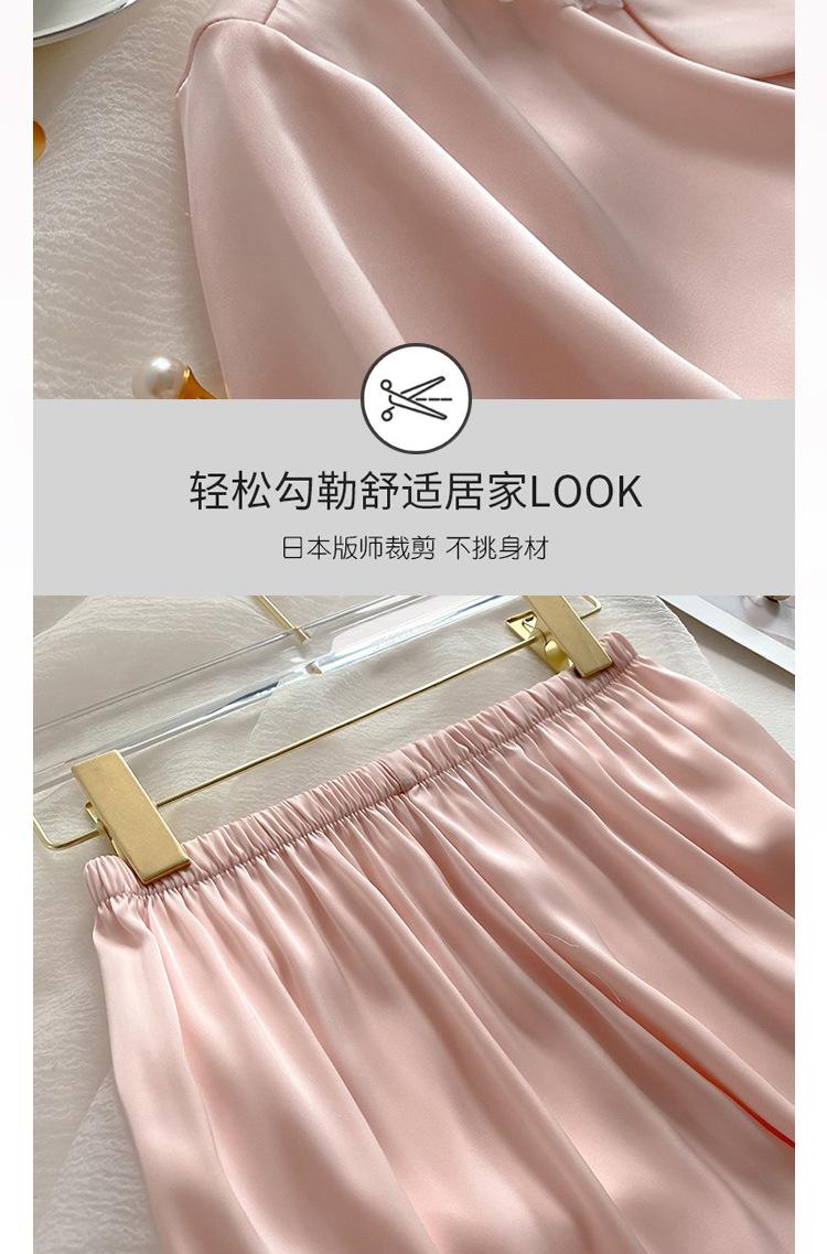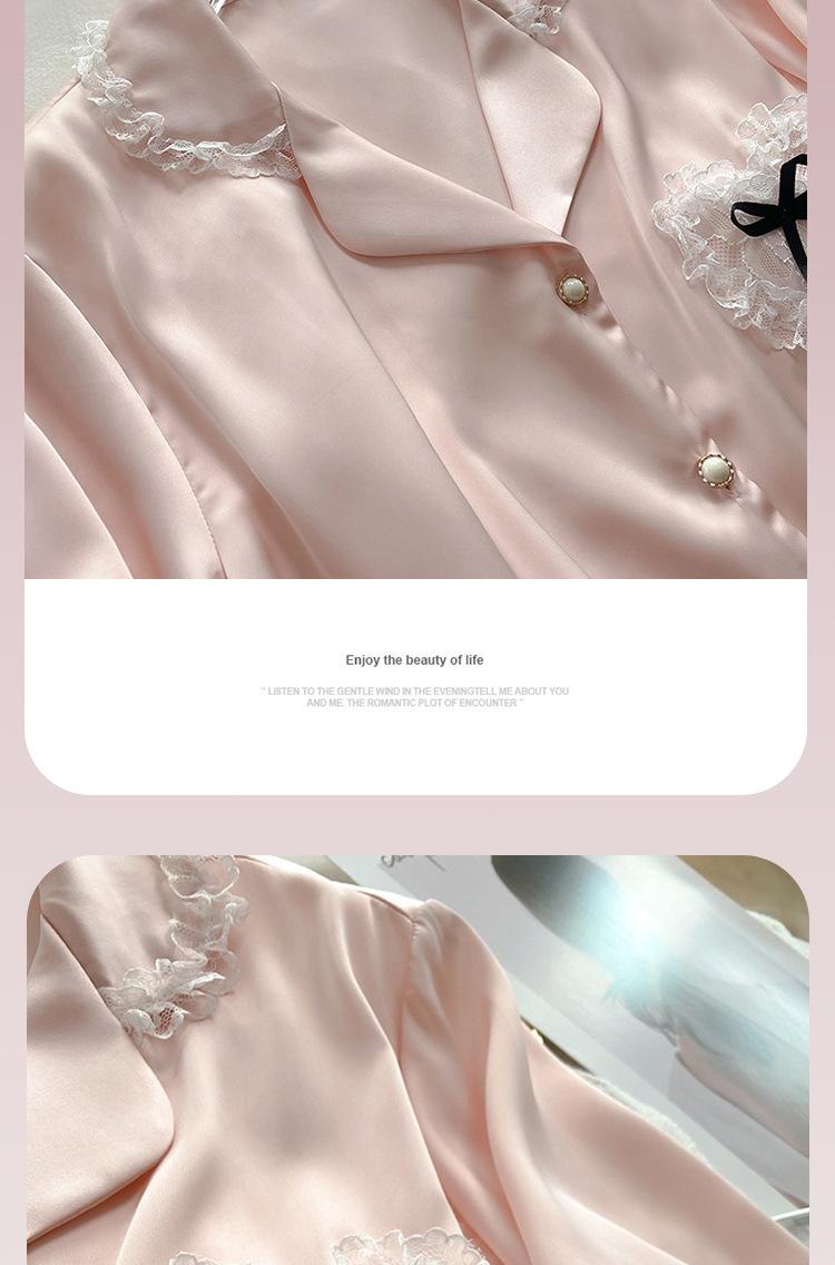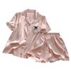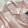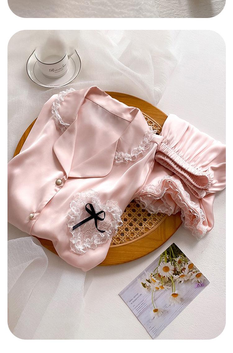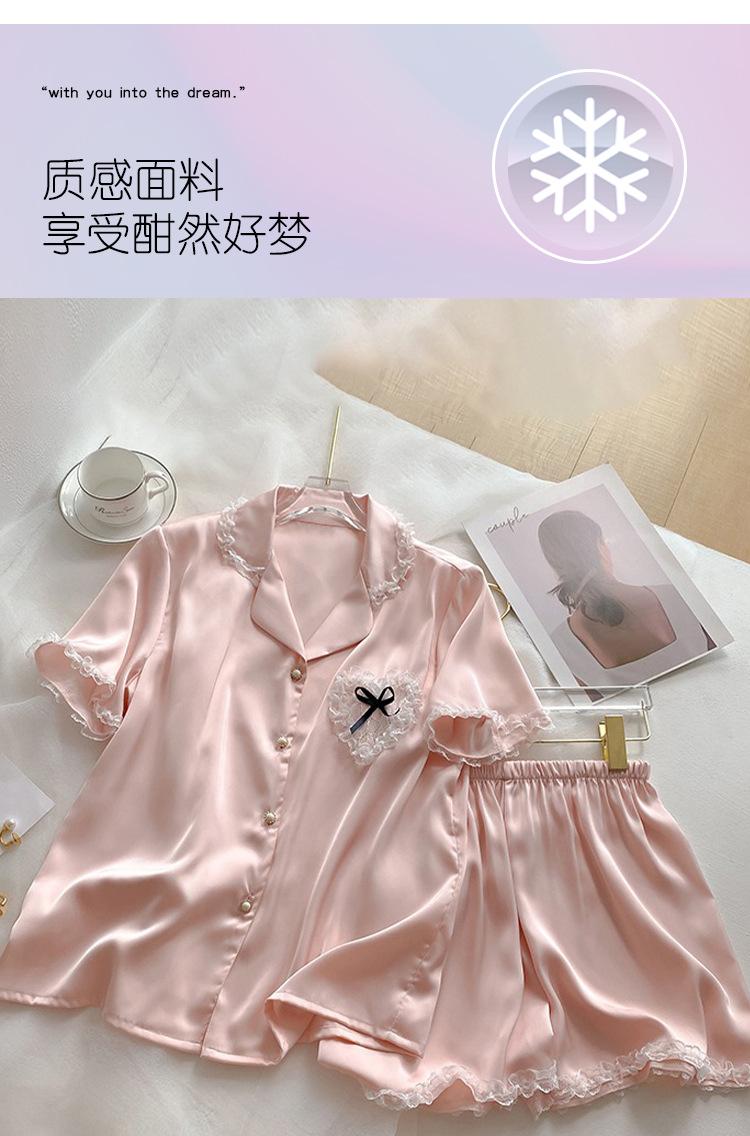 Celebridad de Internet Amor Bolsillo Lazo Encaje Ropa de Casa Coreana de Manga Corta Pantalones Pijama Seda Traje Casual