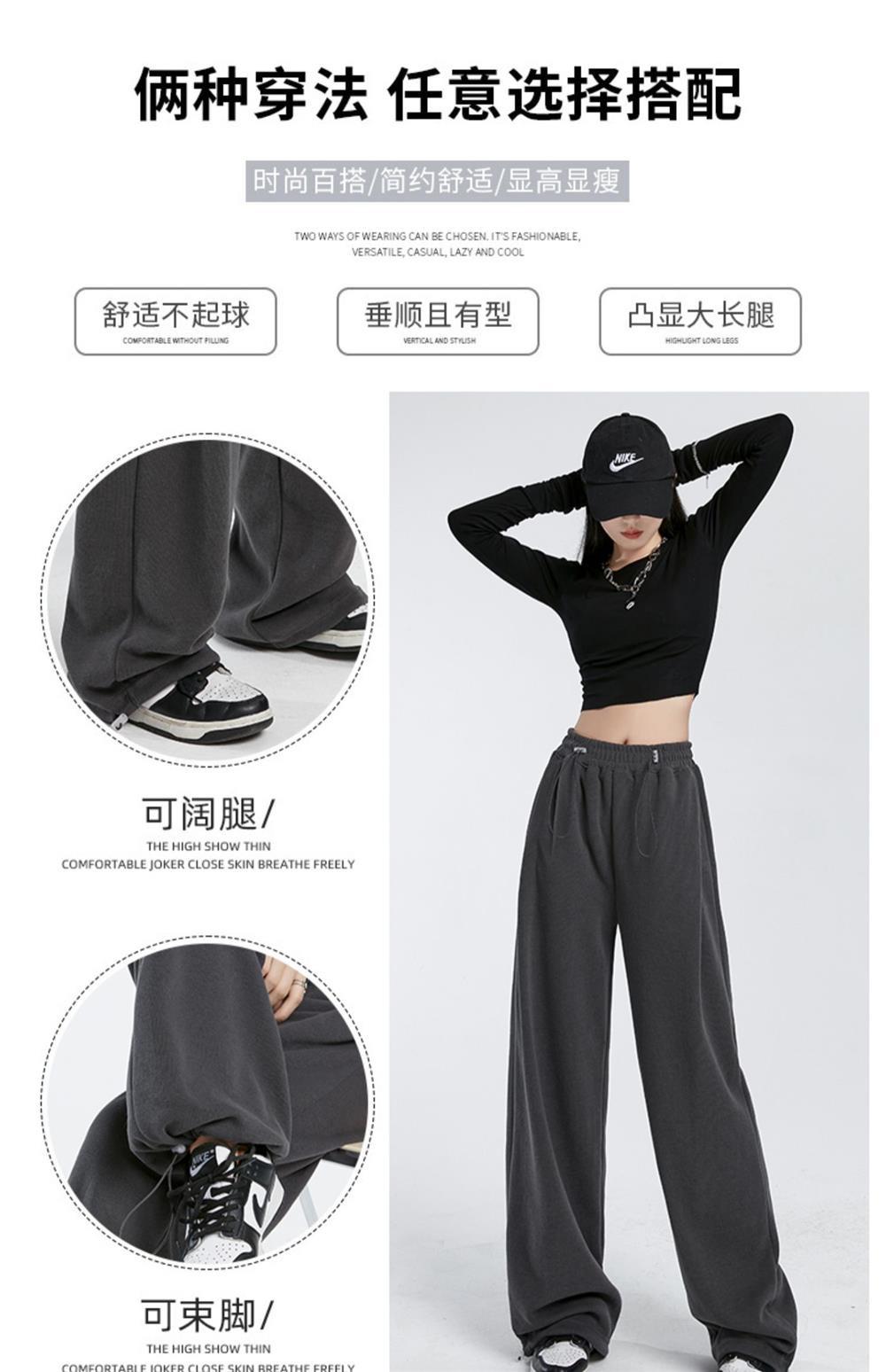 Pantalones Deportivos para Jóvenes y Mujeres Otoño e Invierno Nuevos Forrados de Felpa Pierna Suelta Trendy Pierna Ancha Populares Casuales Pantalones de Sudor