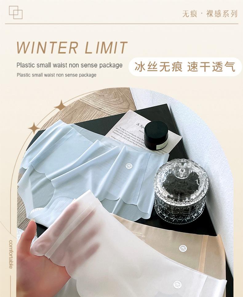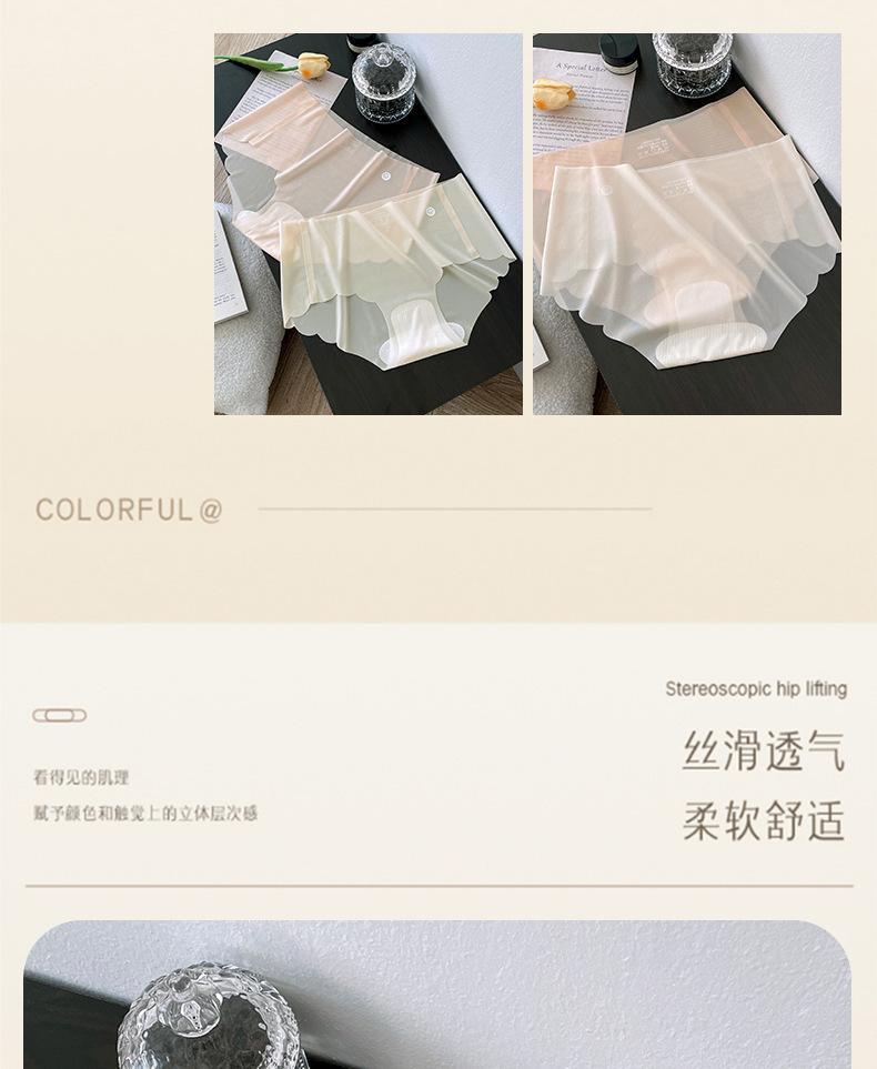 Braguitas sin costuras para mujer, seda de hielo, chica desnuda, sexy, cadera de durazno, pantalón máscara 3D, bolsa en la cadera, transpirable, braguita triangular, cabeza