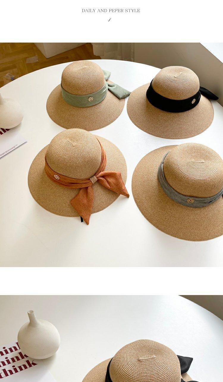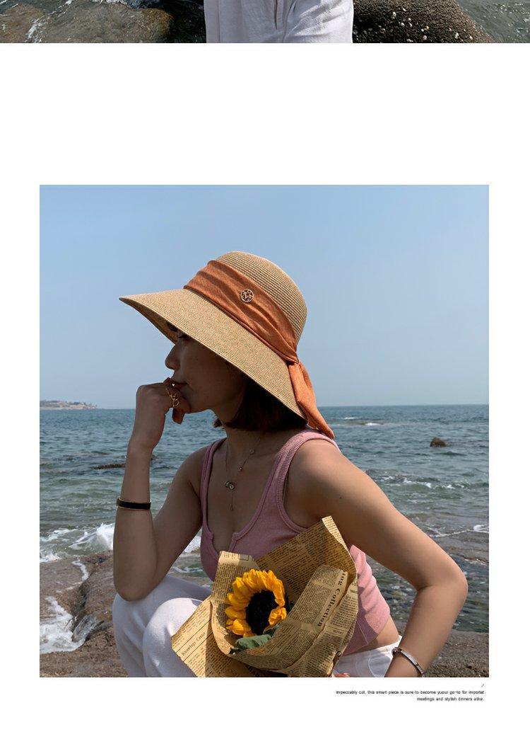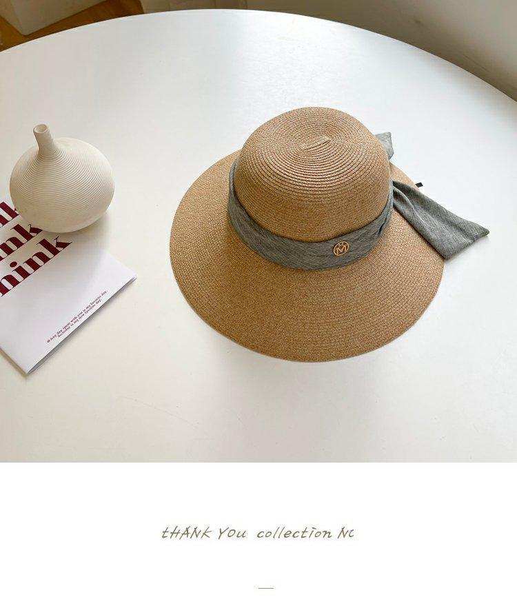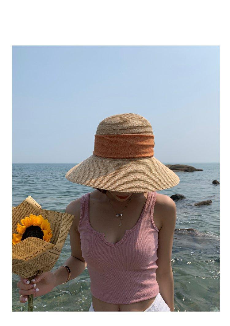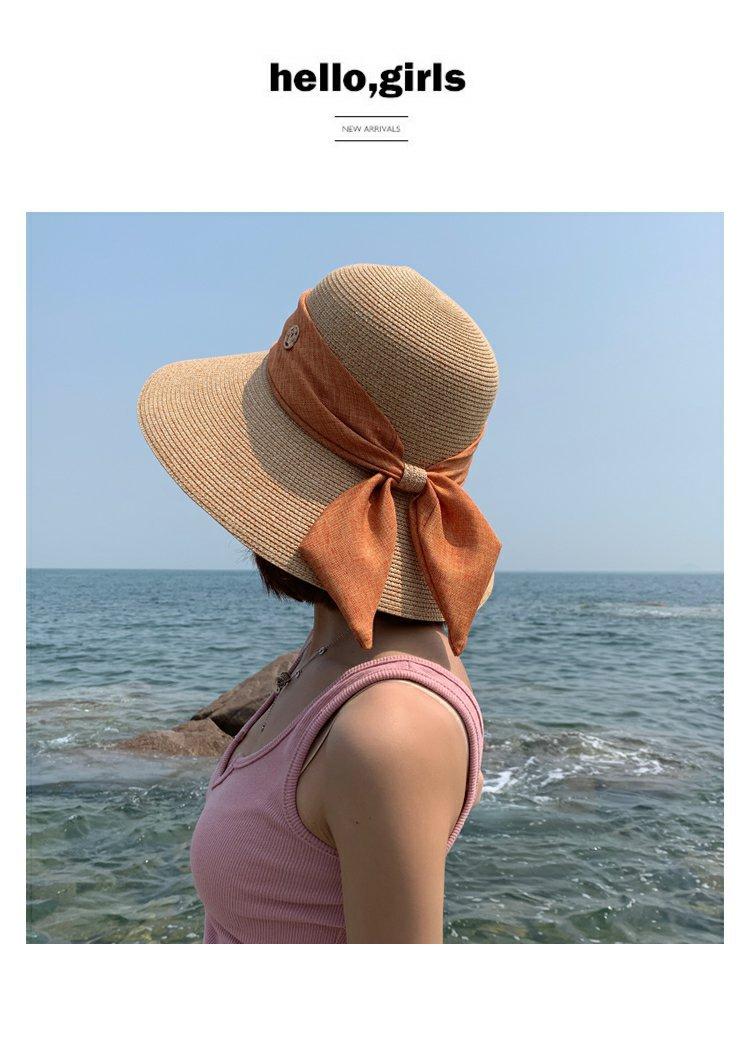 Sombrero de Paja de Playa para Mujer Estilo Coreano Trendy ins Combinable Estilo Japonés Verano Viaje Sombrilla Protector Solar Sombrero de Ala Ancha con Lazo