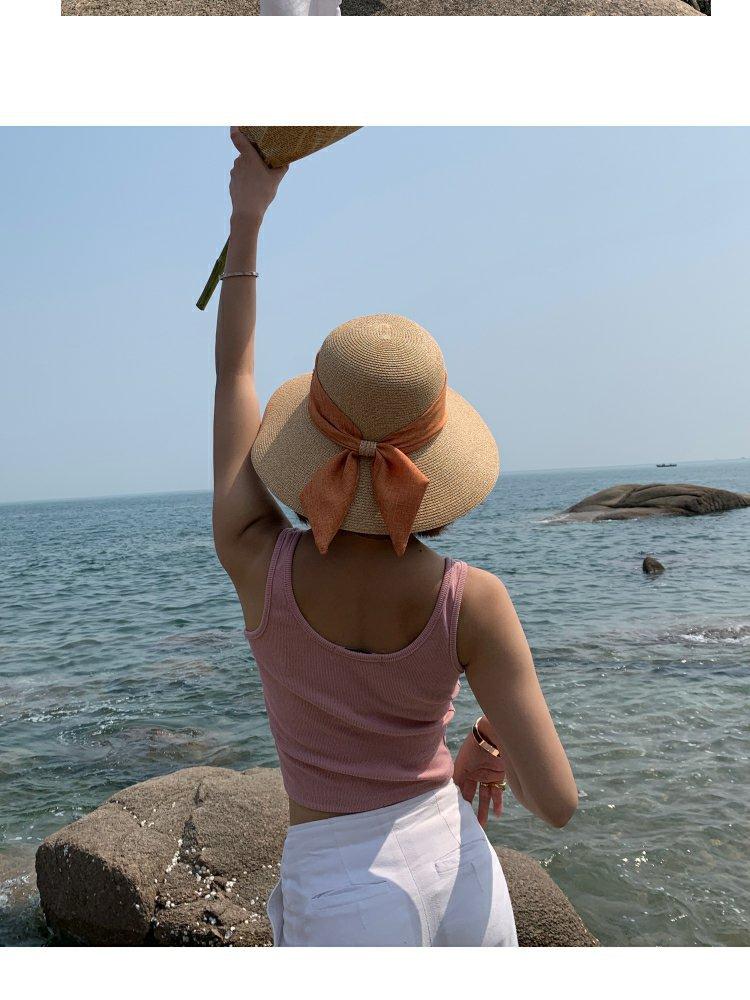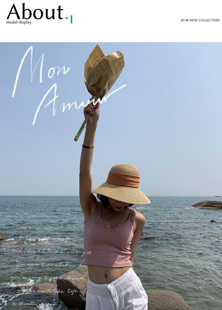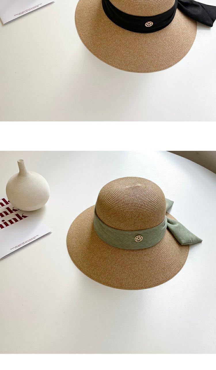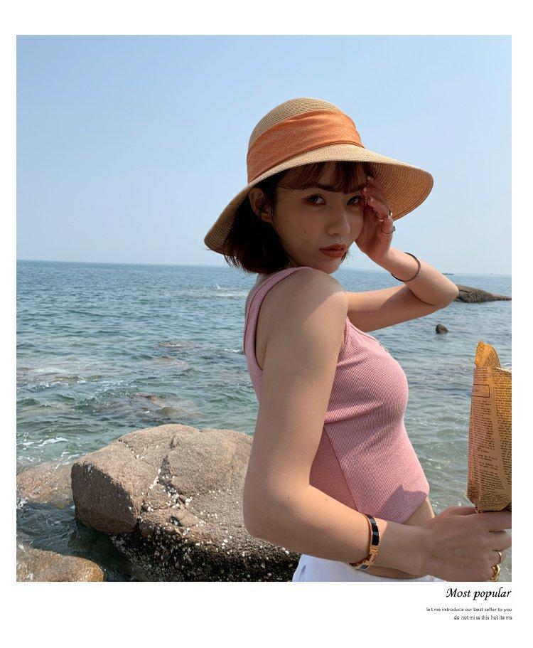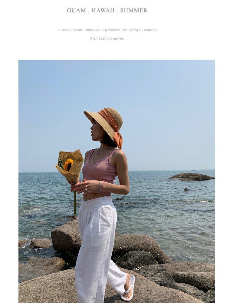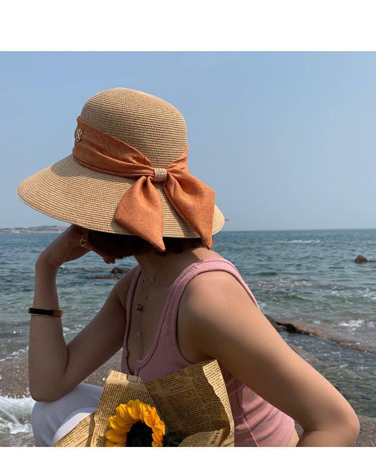 Sombrero de Paja de Playa para Mujer Estilo Coreano Trendy ins Combinable Estilo Japonés Verano Viaje Sombrilla Protector Solar Sombrero de Ala Ancha con Lazo