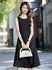 Vestido negro sin mangas estilo Hepburn para mujer, primavera y verano 2025, nuevo, elegante, adelgazante, pequeño, de alta gama, pequeño, negro.