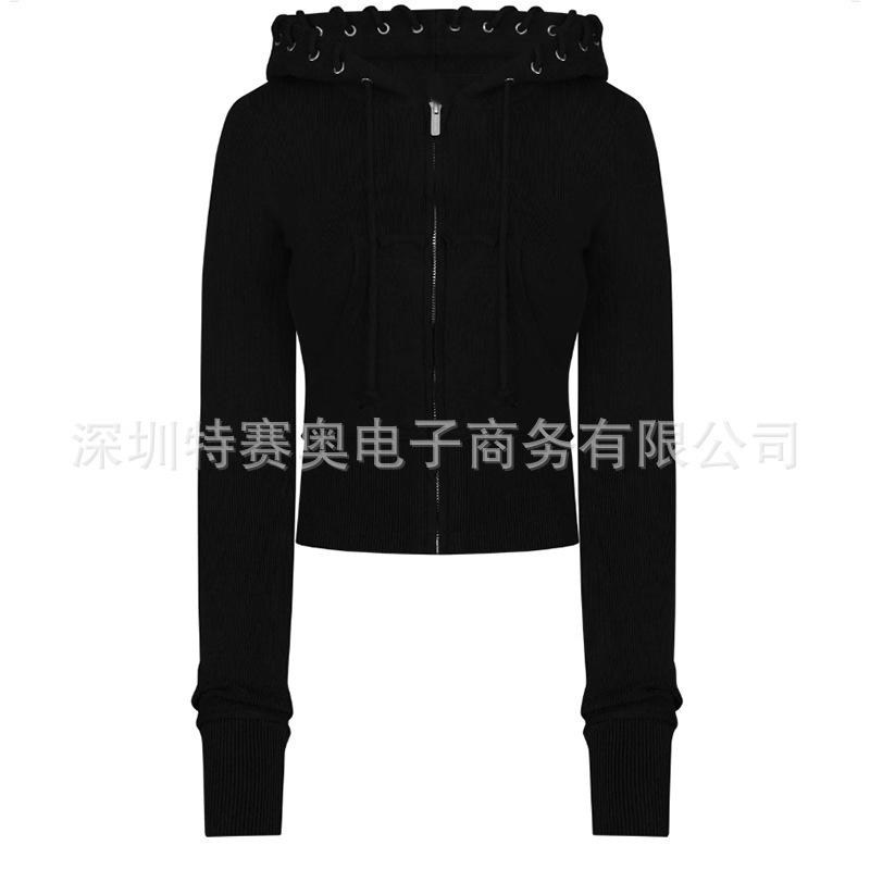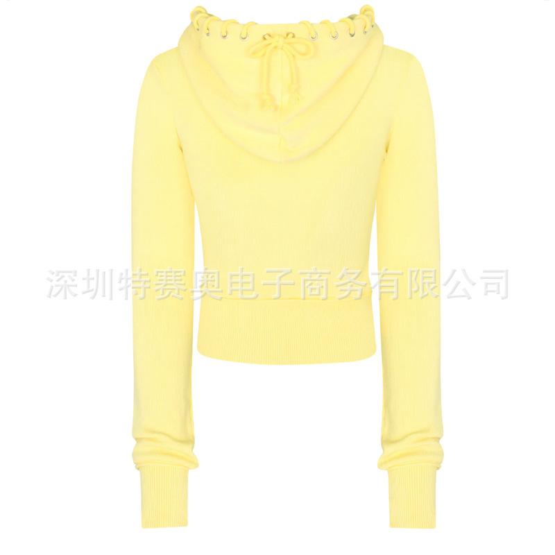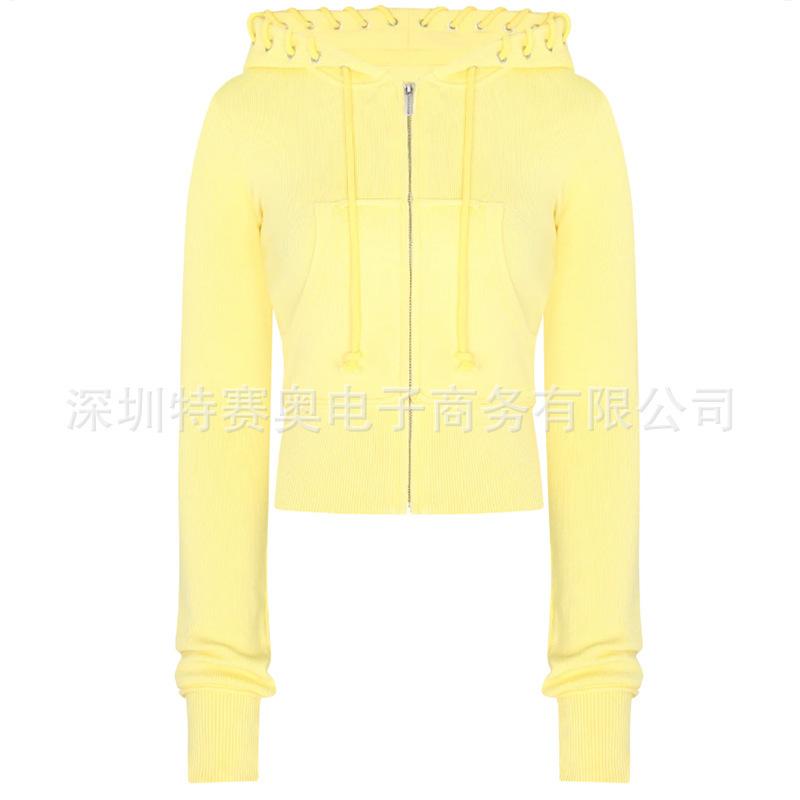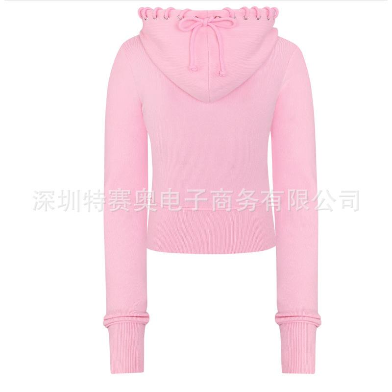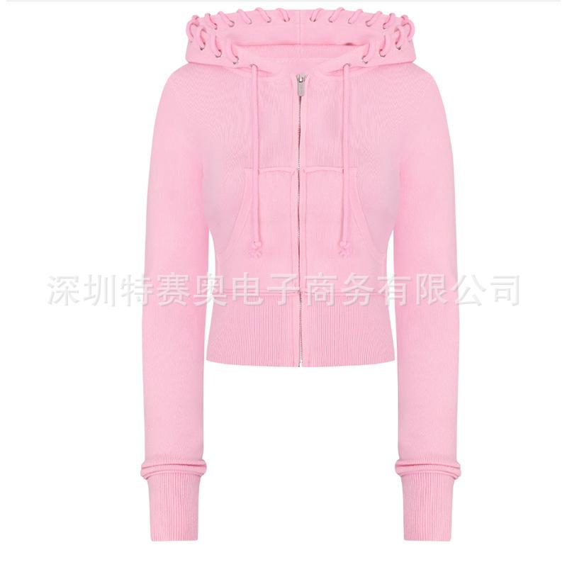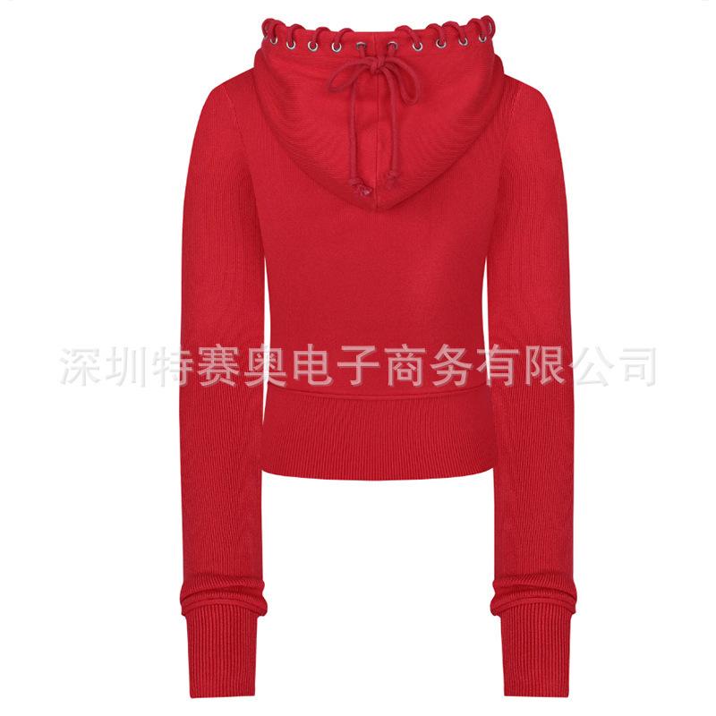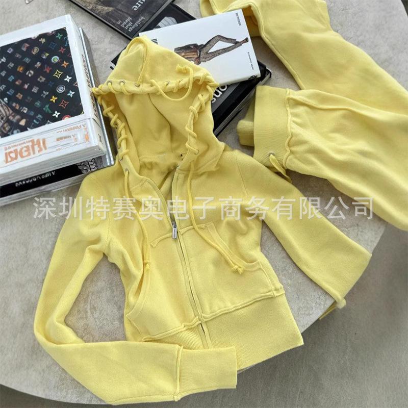 Sudadera con capucha y tiras Spring Street 2025, chaqueta de sudadera americana con color de contraste, cinturilla patchwork ligeramente acampanada, traje europeo y americano