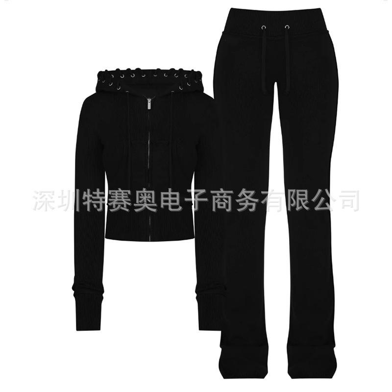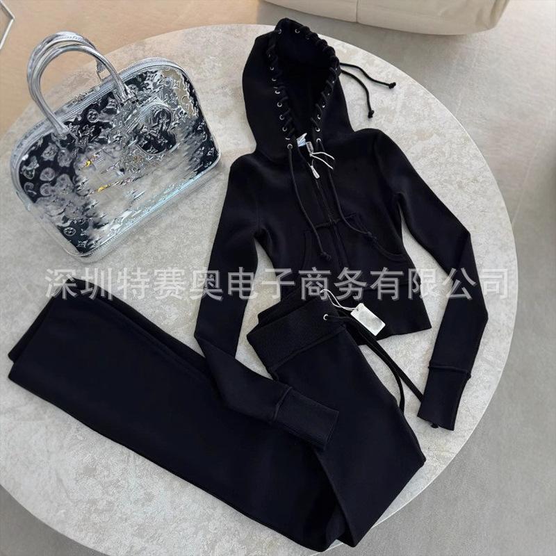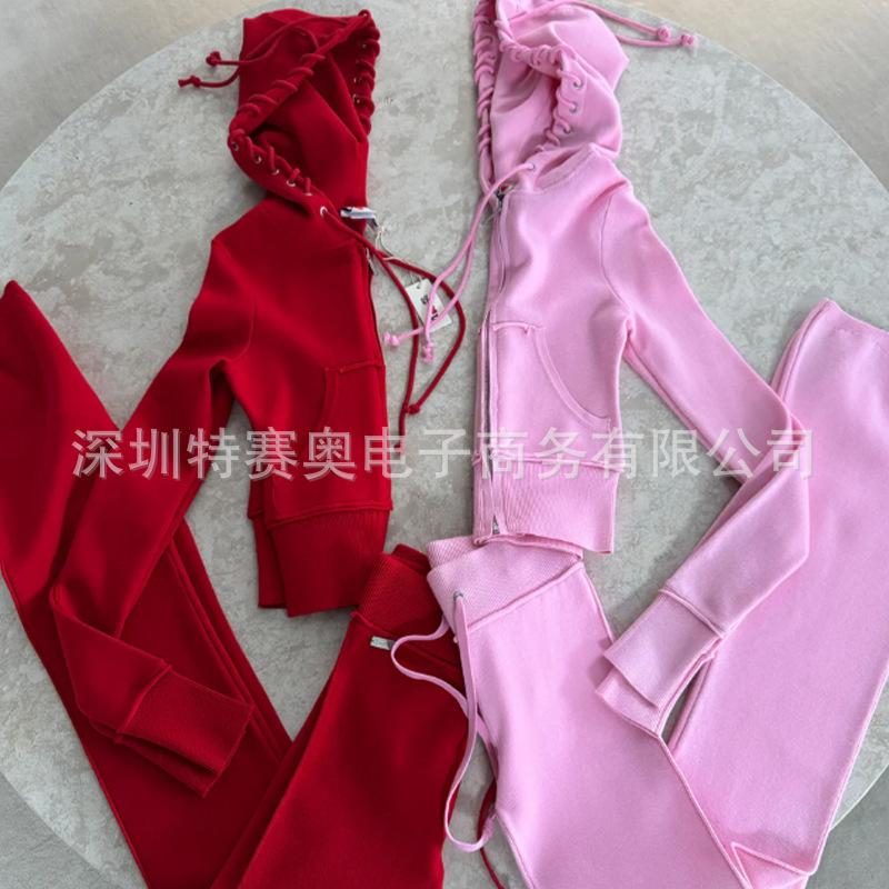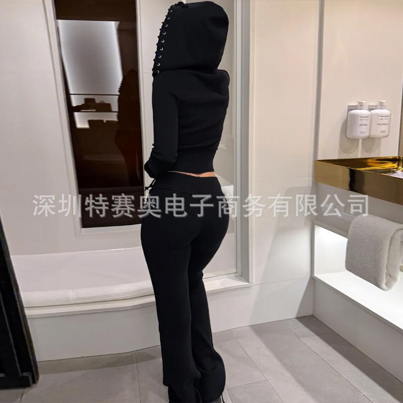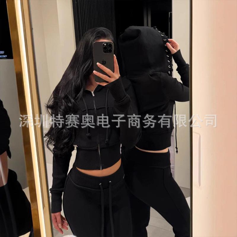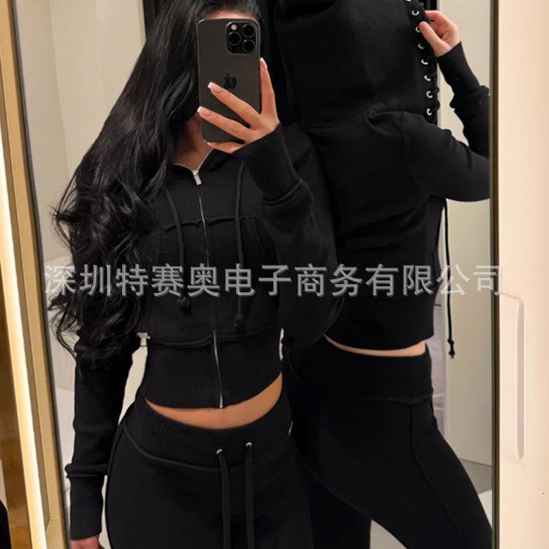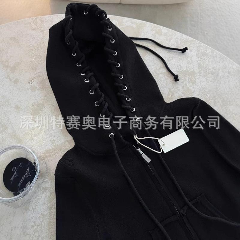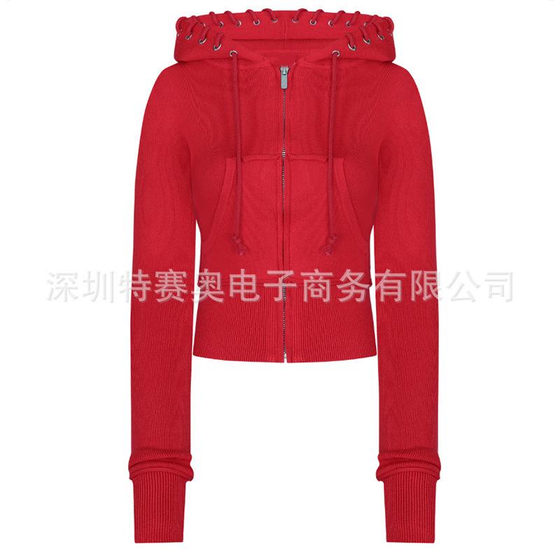 Sudadera con capucha y tiras Spring Street 2025, chaqueta de sudadera americana con color de contraste, cinturilla patchwork ligeramente acampanada, traje europeo y americano