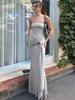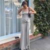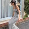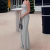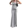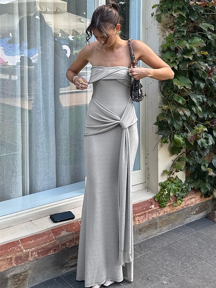 Vestido de Primavera y Verano Nuevo Estilo Europeo y Americano para Mujer Color Sólido Ajustado Cintura Alta Moda Sexy Cuello Palabra de Honor Tirantes Sin Mangas