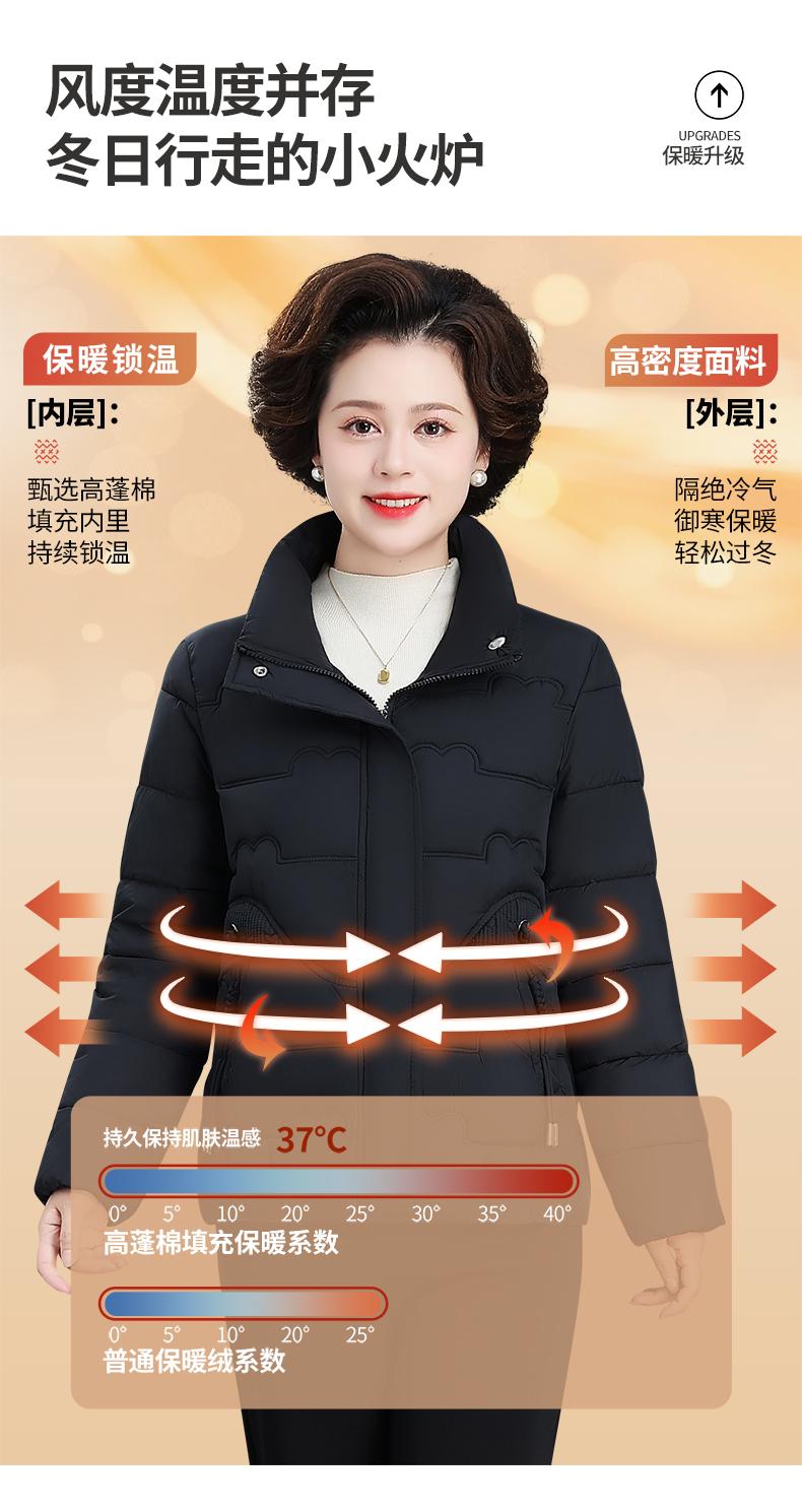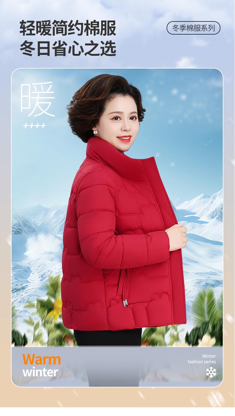 Chaqueta acolchada de algodón de invierno para madres, nuevo estilo 2024, abrigo corto acolchado de algodón, abrigo de otoño e invierno para mujeres de mediana edad y mayores.