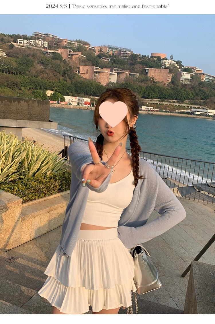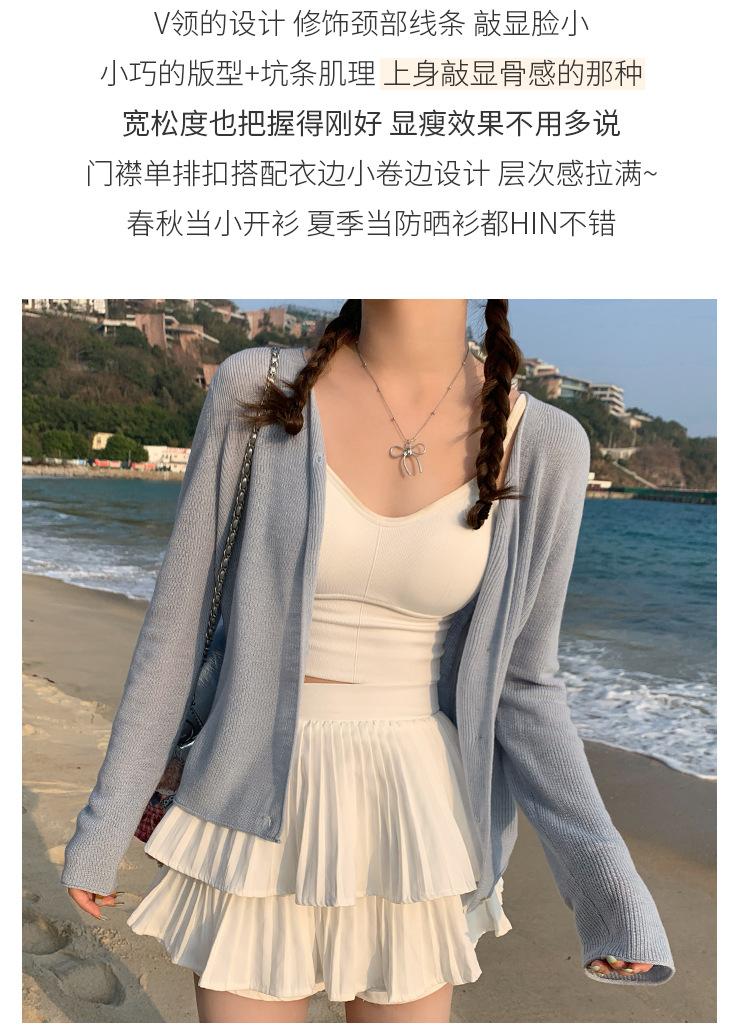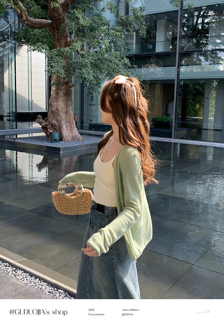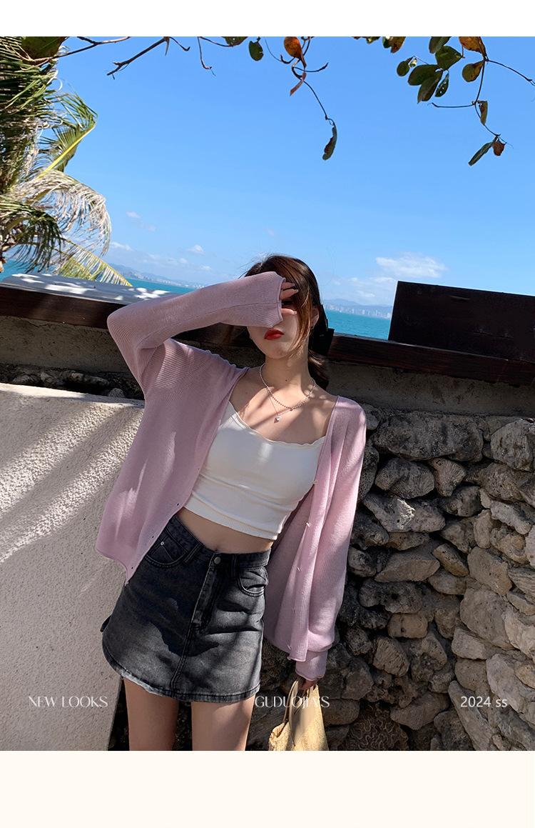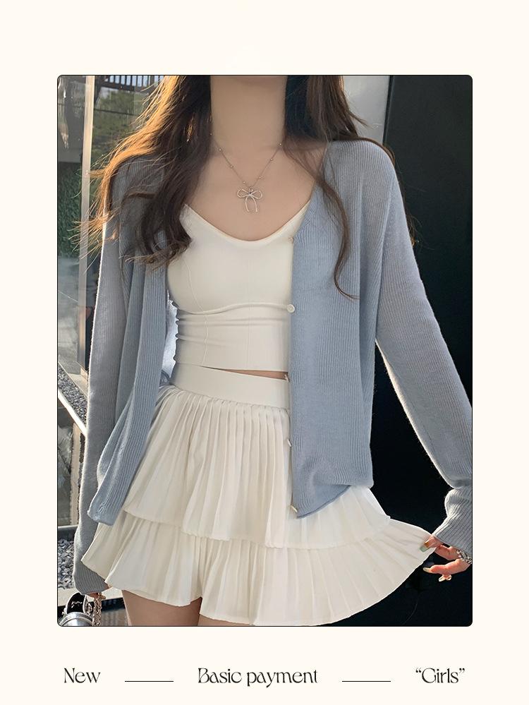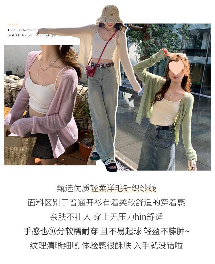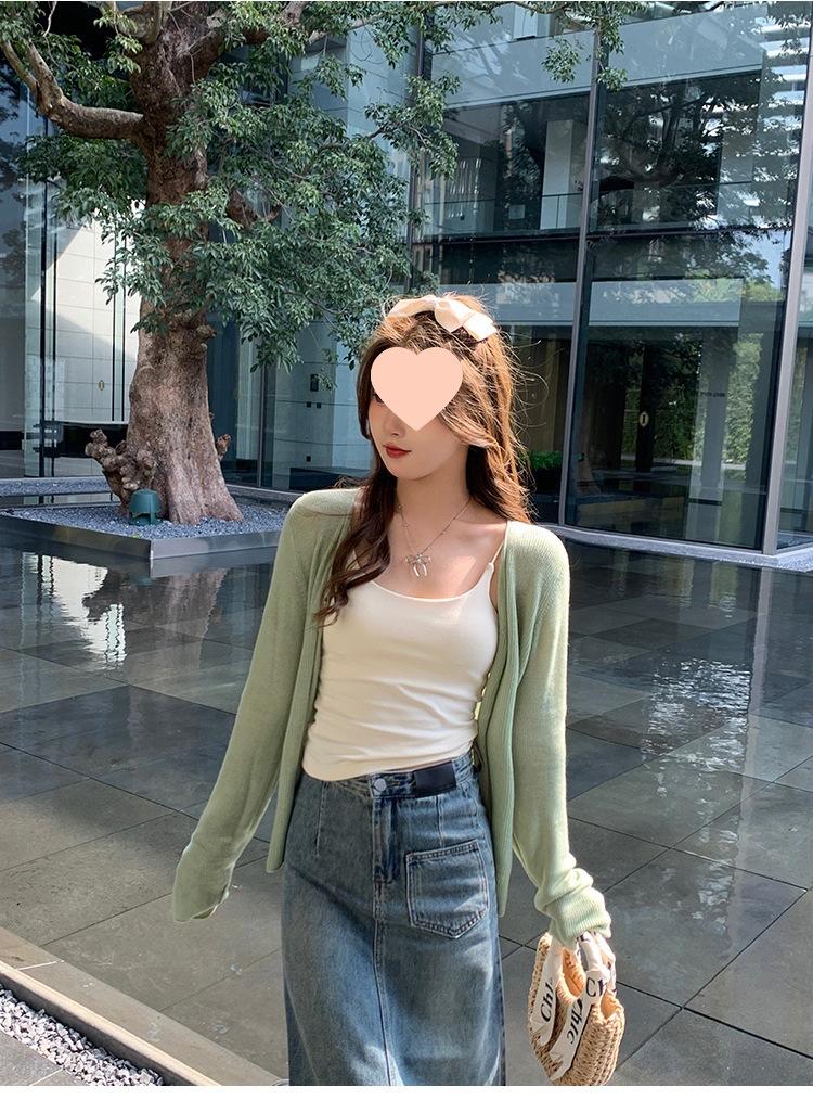 Chaqueta de punto tipo cárdigan para mujer, primavera y otoño, seda de hielo, protector solar, chal fino, verano, con vestido y blusa con tirantes