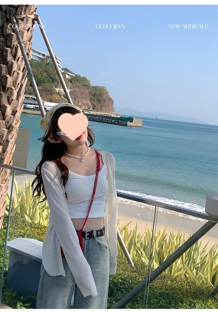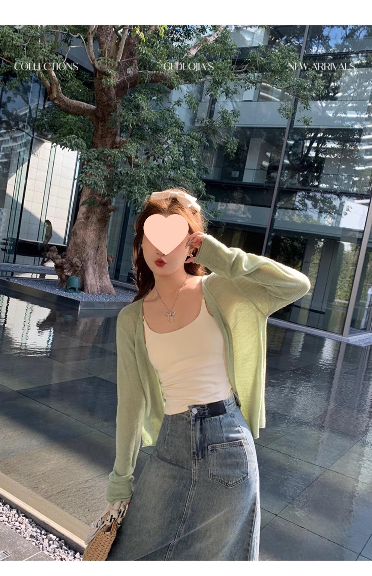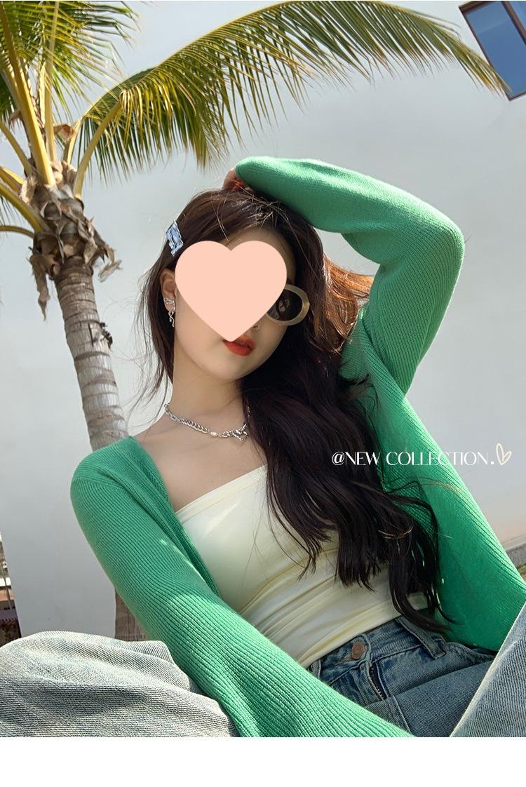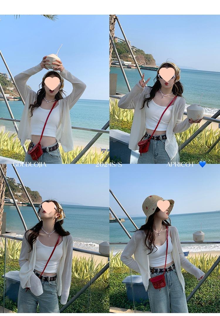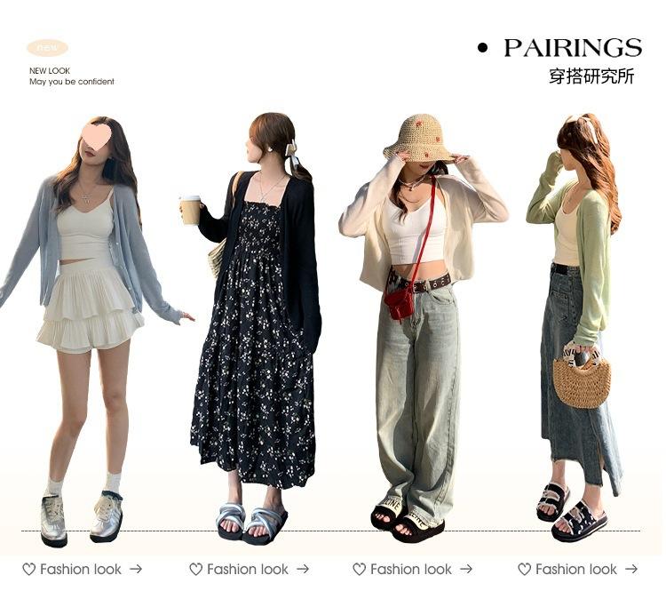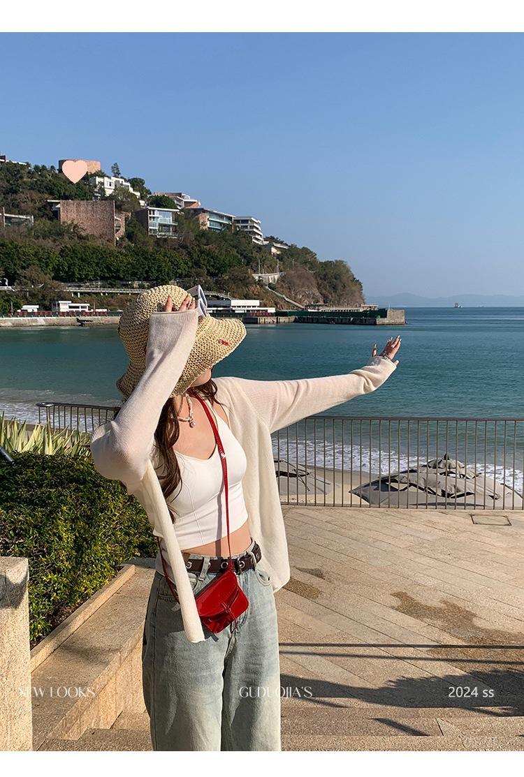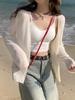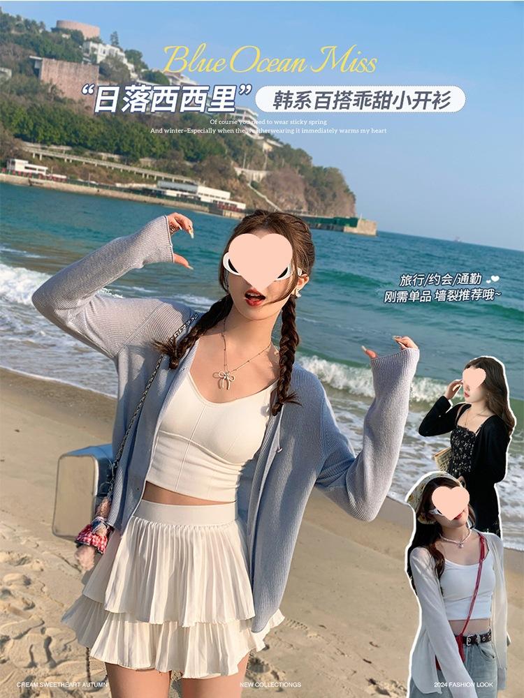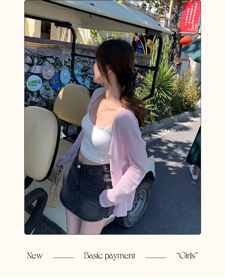 Chaqueta de punto tipo cárdigan para mujer, primavera y otoño, seda de hielo, protector solar, chal fino, verano, con vestido y blusa con tirantes