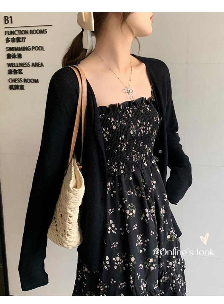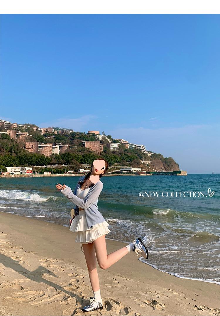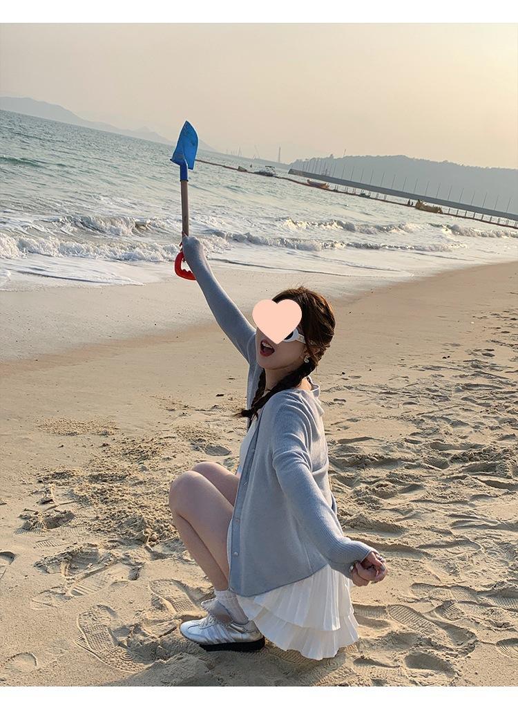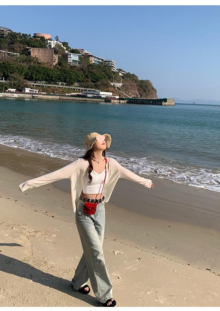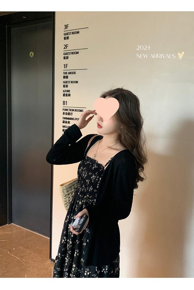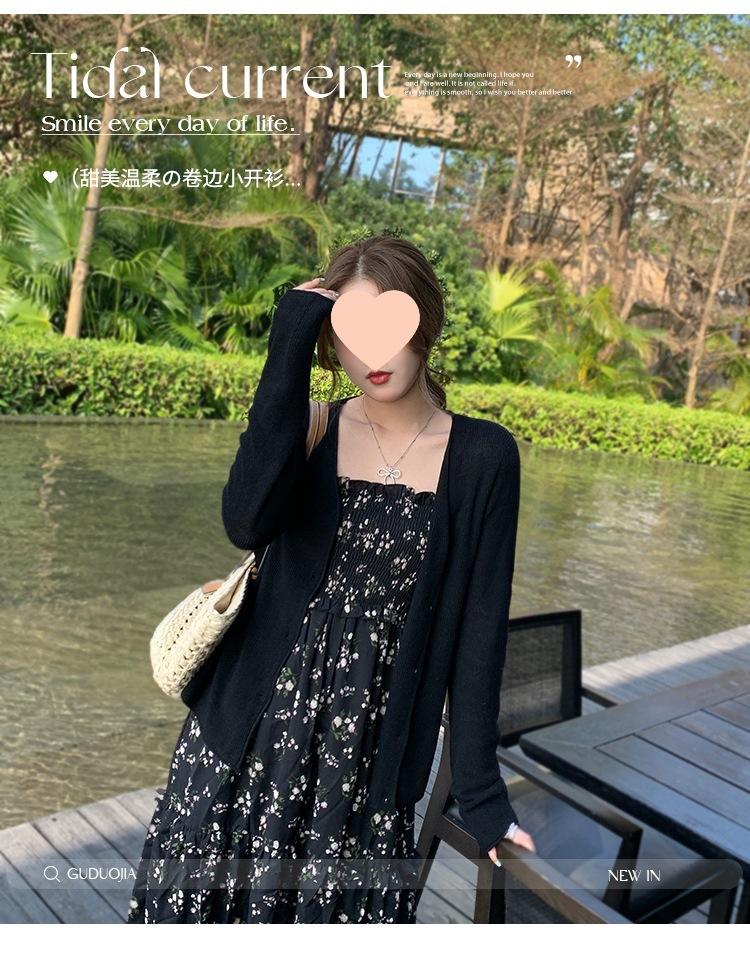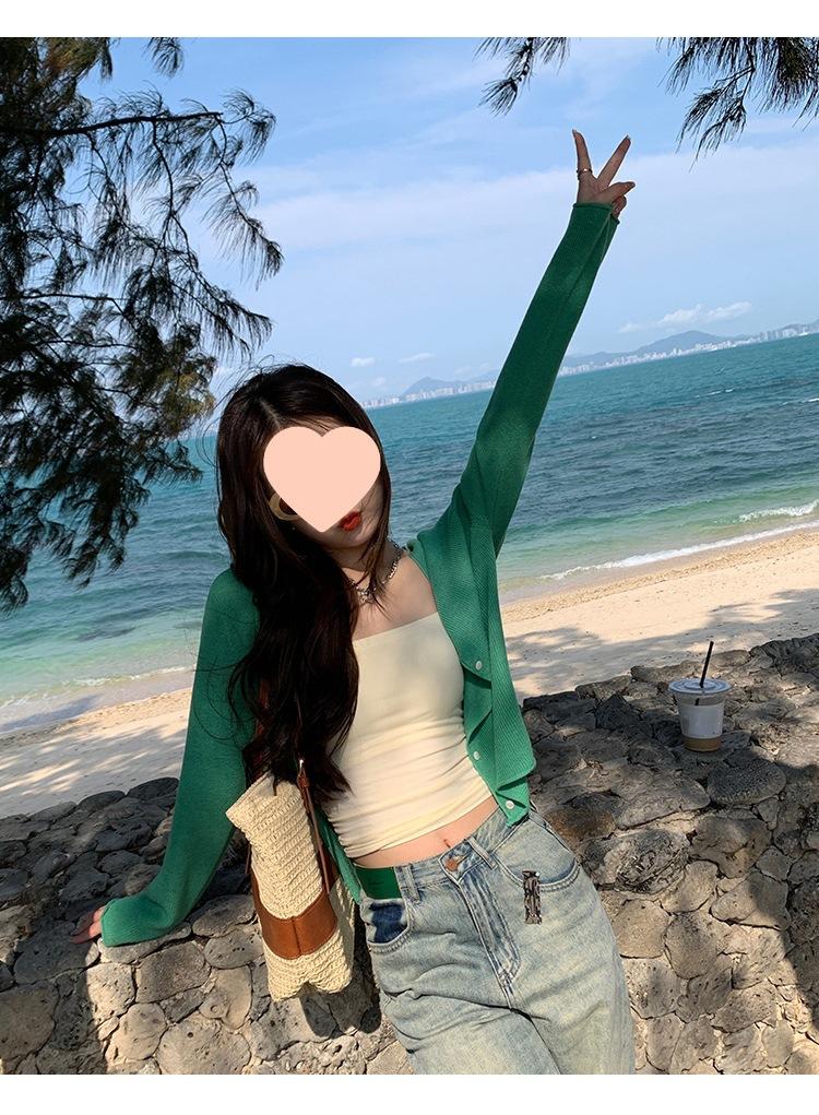 Chaqueta de punto tipo cárdigan para mujer, primavera y otoño, seda de hielo, protector solar, chal fino, verano, con vestido y blusa con tirantes