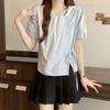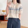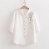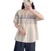 Camisa de Algodón de Manga Corta con Bordado Pesado de Estilo Étnico Artístico y Fresco para Mujer, Camisa Única de Corte Holgado y Adelgazante