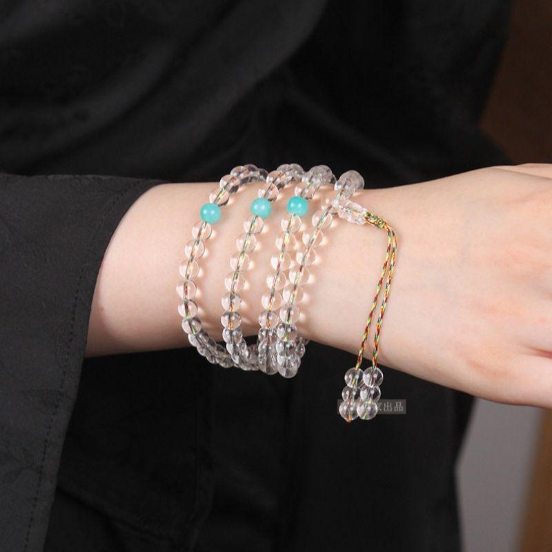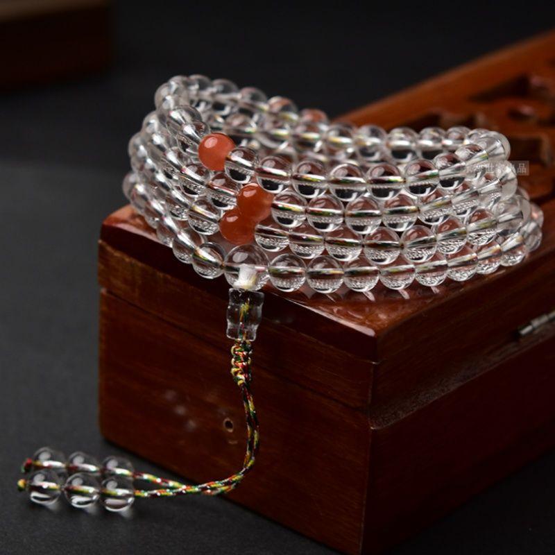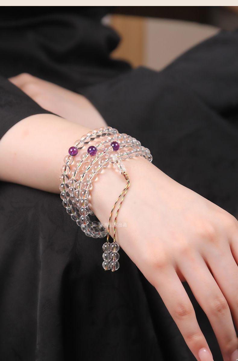 Rosario de cristal blanco optimizado, 108 cuentas, para hombre y mujer, pulsera multicírculo para pareja, collar y cuentas de amatista.