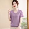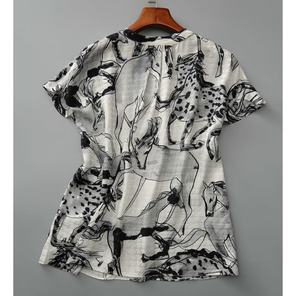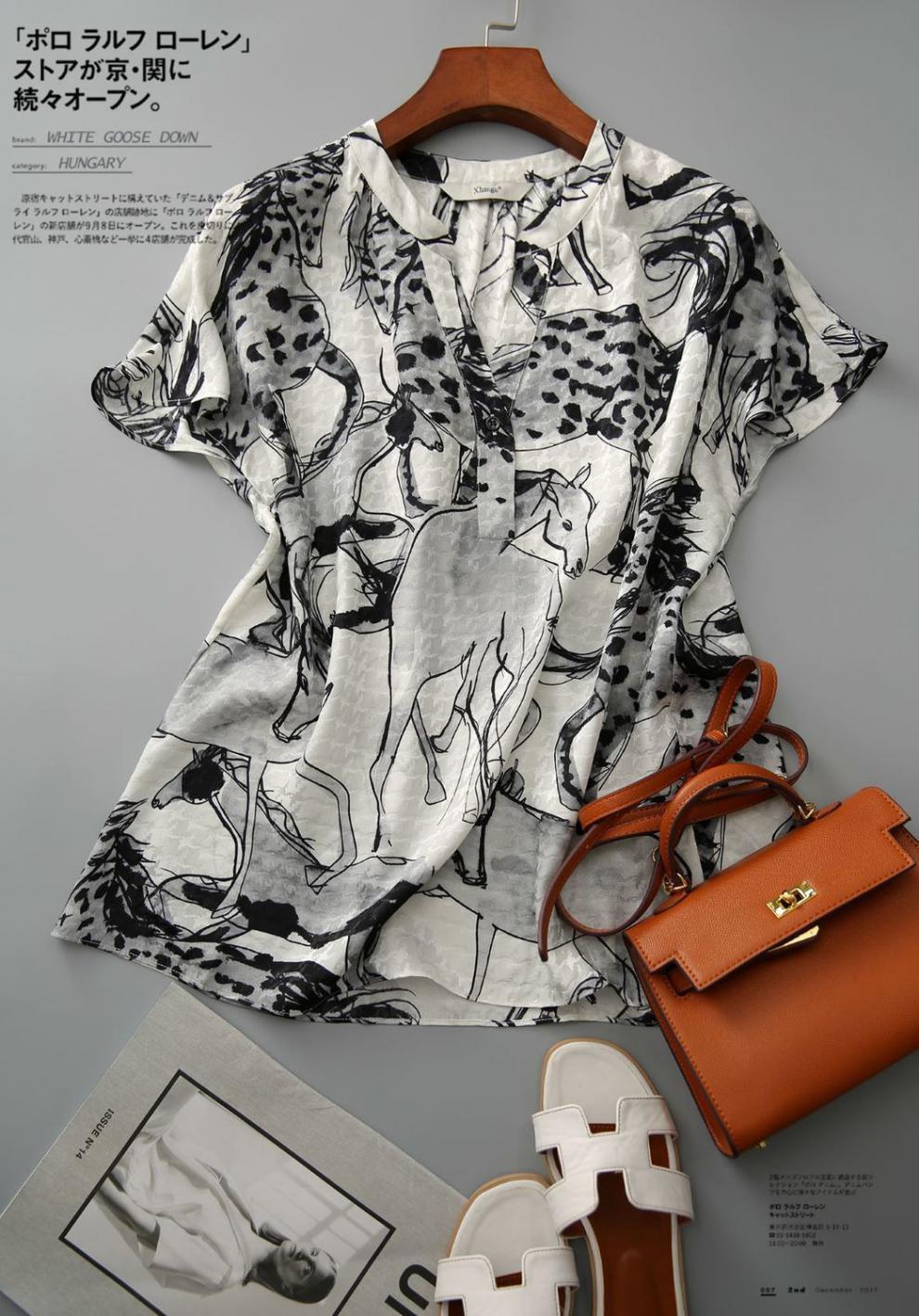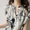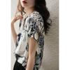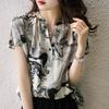 Camisa de gasa con estampado de tinta para mujer, recién llegada de verano, estilo Hong Kong, elegante, ligera, de lujo, combinable, con cuello en V y flores, de manga corta.
