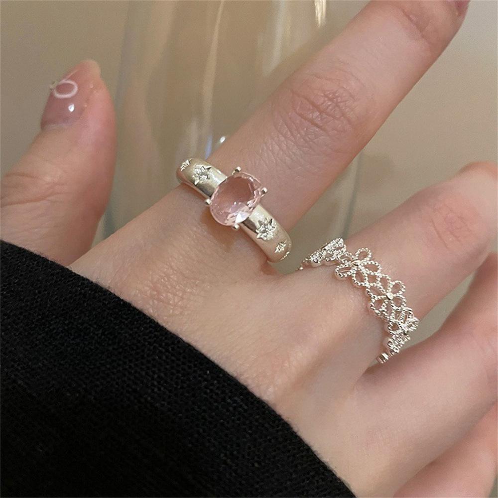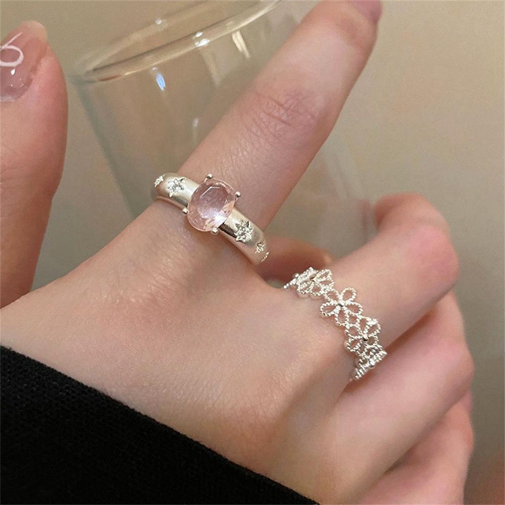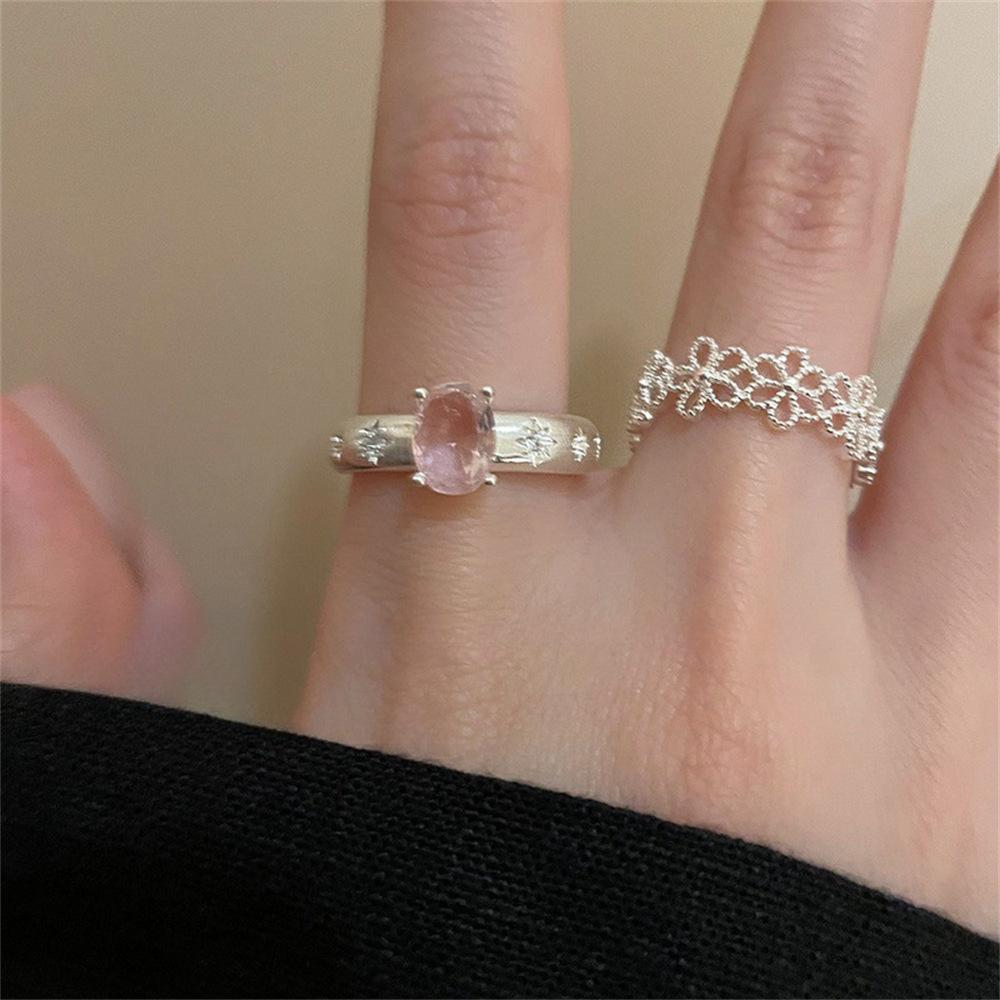 Anillo Delicado de Flor Hueca con Zirconia Diseño Nicho Femenino Lujo Ligero Sensación de Alta Gama Anillo Elegante de Estilo Frío para Dedo