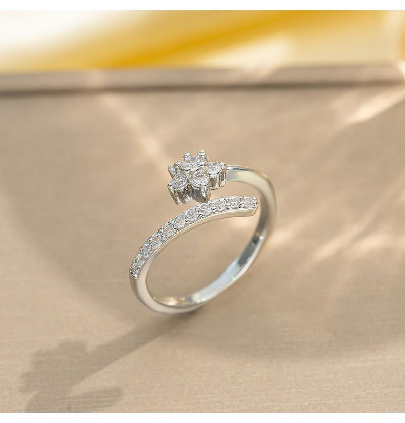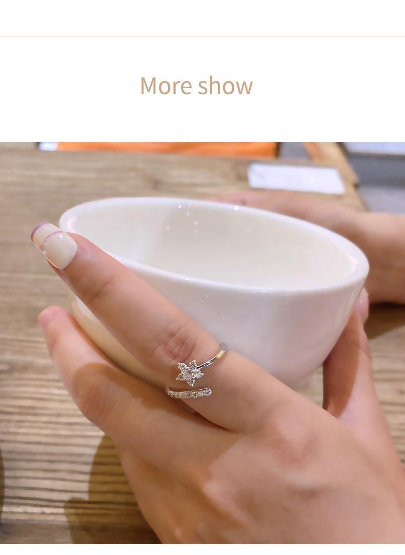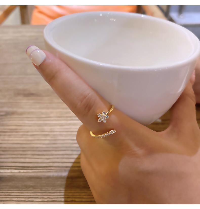Anillo de Flor de Cristal de Hielo con Zircón Incrustado Exquisito Estilo Coreano para Mujer Celebridad de Internet Elegante Anillo de Moda Apertura Ajustable Joyería de Mano