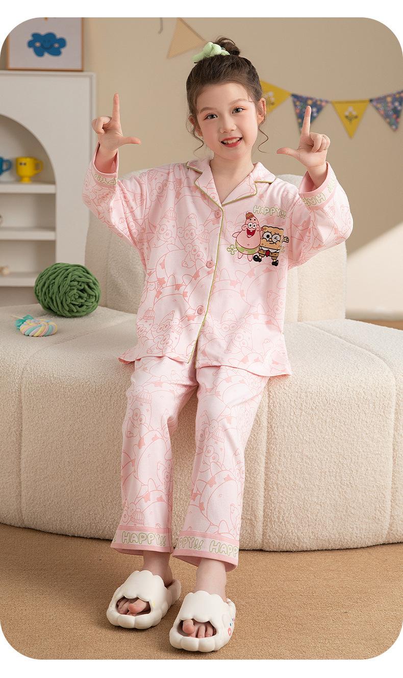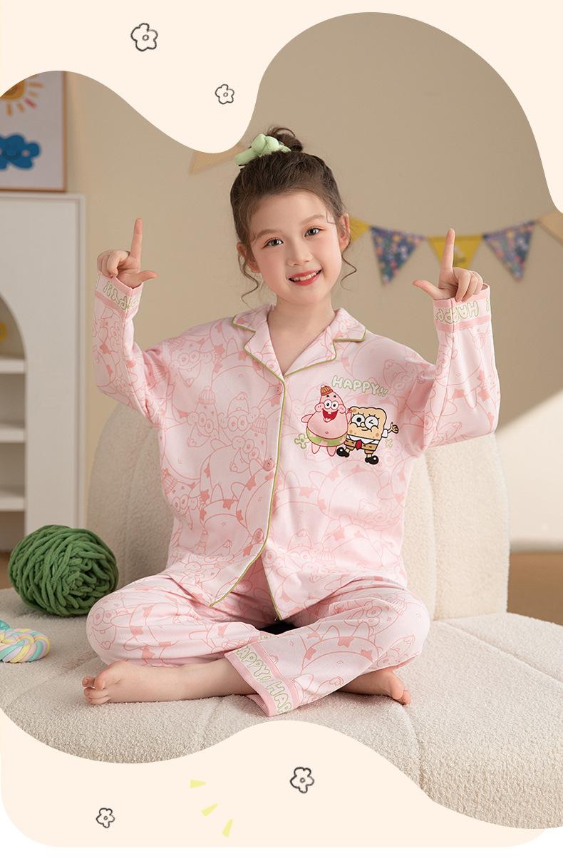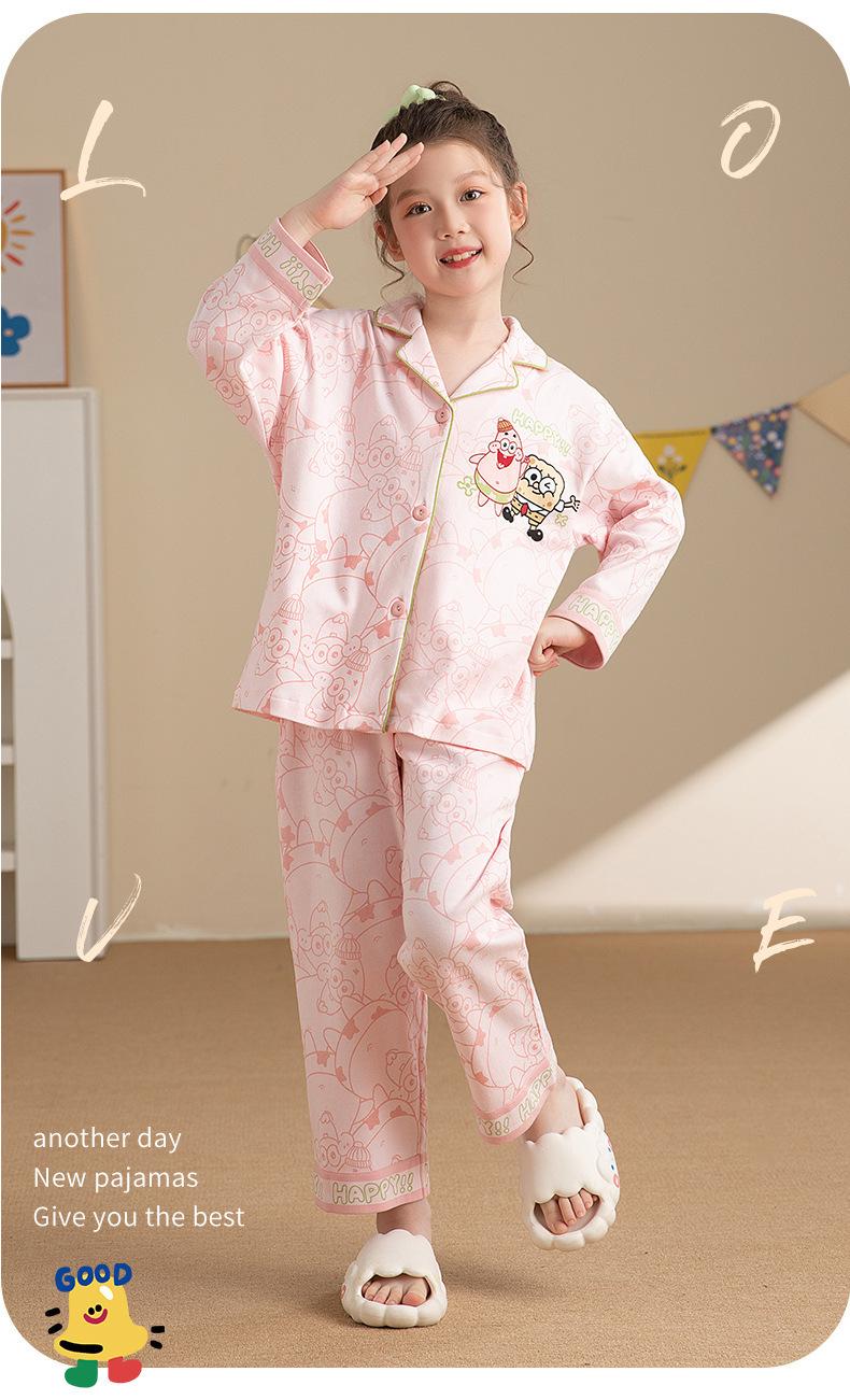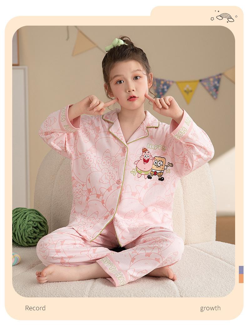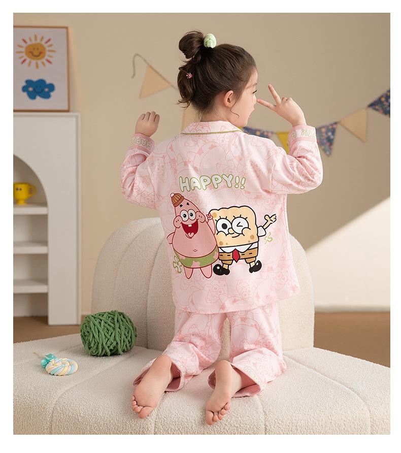 Pijamas para Niñas Algodón Manga Larga Delgadas Otoño Niños Medianos y Grandes Lindos Dibujos Animados Niña Bebé Conjunto de Ropa para el Hogar