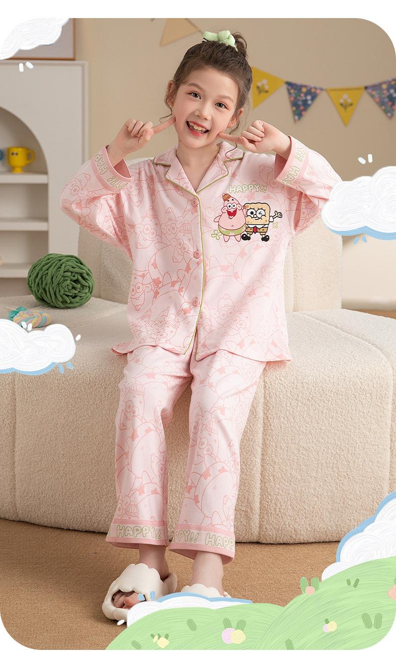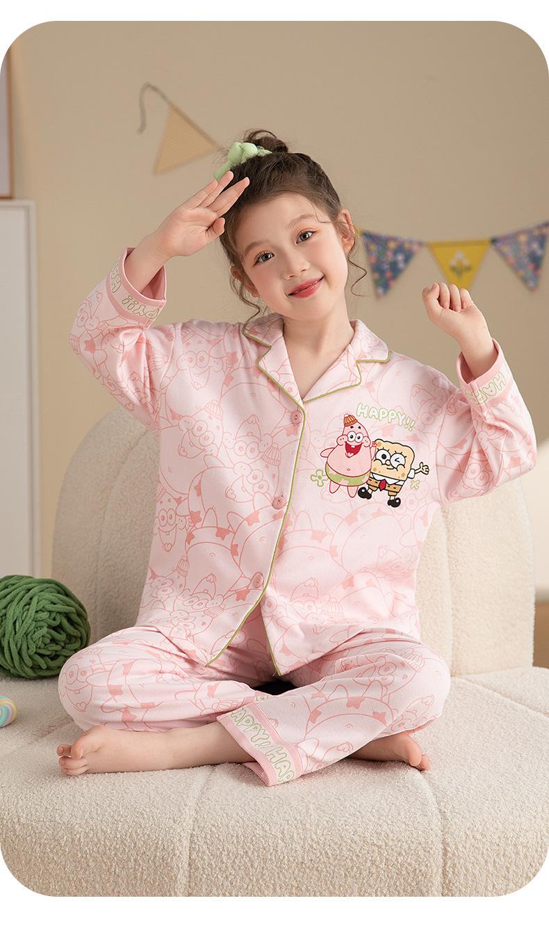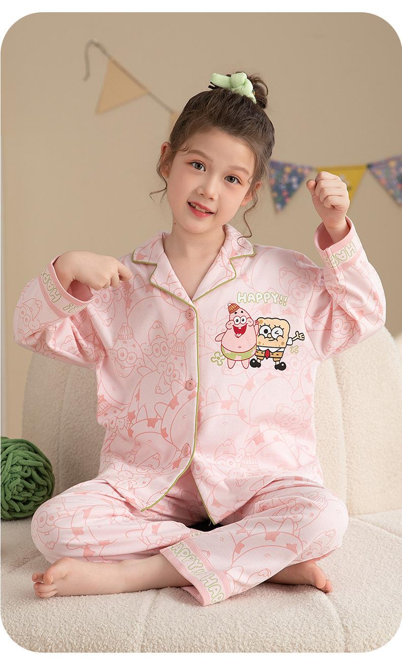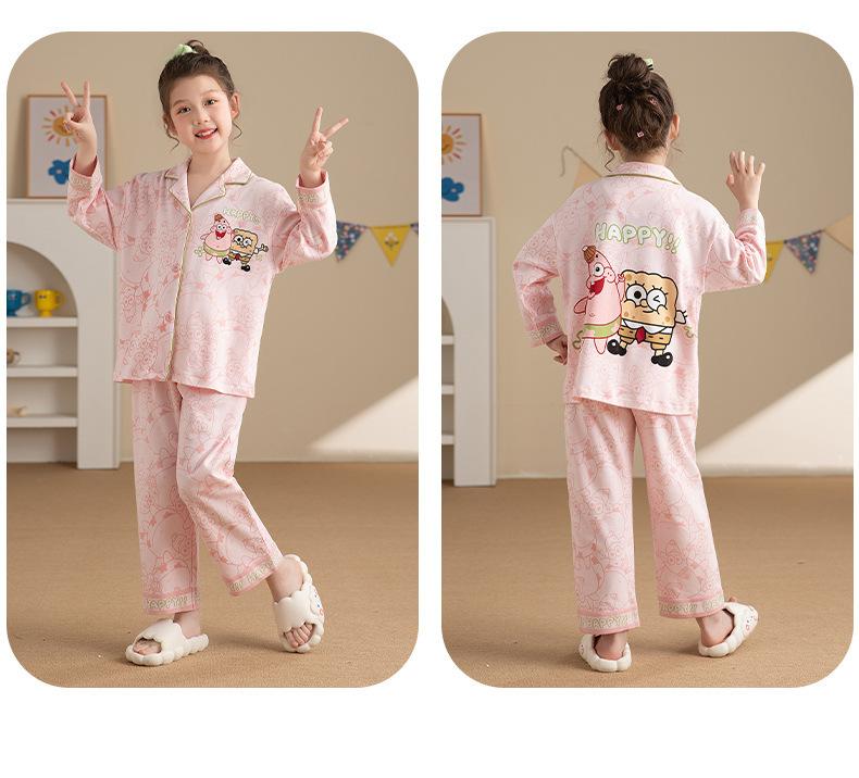 Pijamas para Niñas Algodón Manga Larga Delgadas Otoño Niños Medianos y Grandes Lindos Dibujos Animados Niña Bebé Conjunto de Ropa para el Hogar