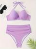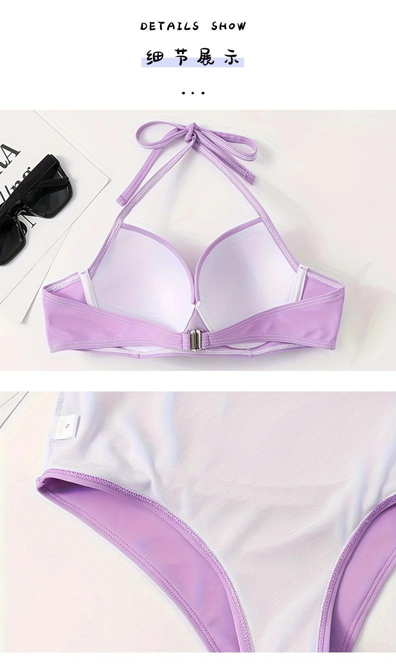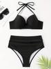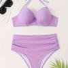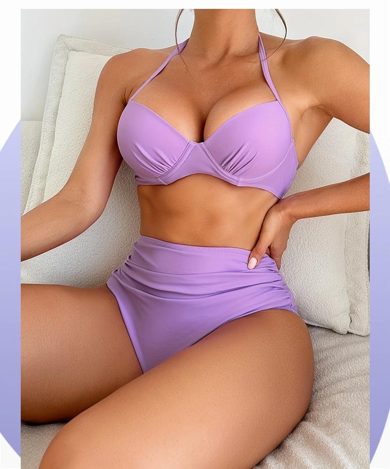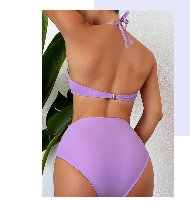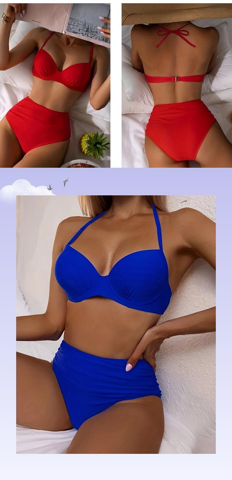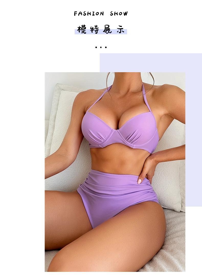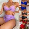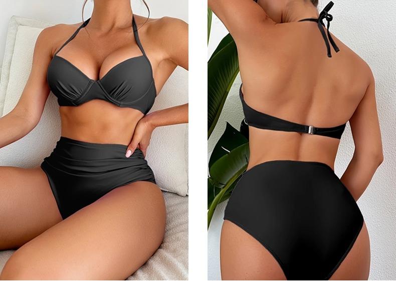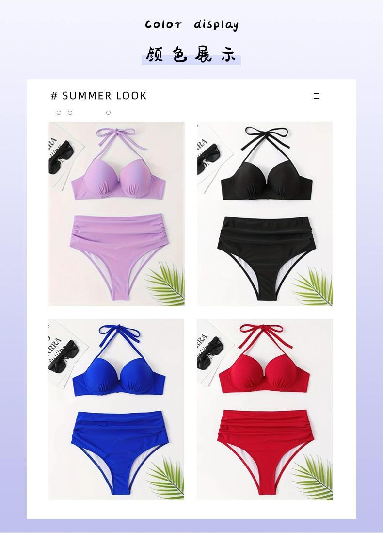 Traje de Baño Bikini Caliente de Comercio Exterior Color Sólido Sexy Dividido Traje de Baño de Dos Piezas Cintura Alta Adelgazante Traje de Baño para Vacaciones en Aguas Termales