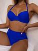 Biquíni de comércio exterior quente, cor sólida, sexy, dividido, duas peças, cintura alta, emagrecimento, primavera quente, traje de banho para férias