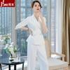 Traje de Seda de Hielo de Moda Traje para Mujer 2025 Nuevo Elegante Slim Manga Media Doble Botonadura Pantalones Casuales Conjunto de Dos Piezas