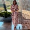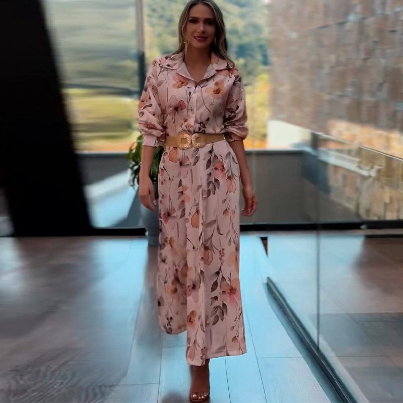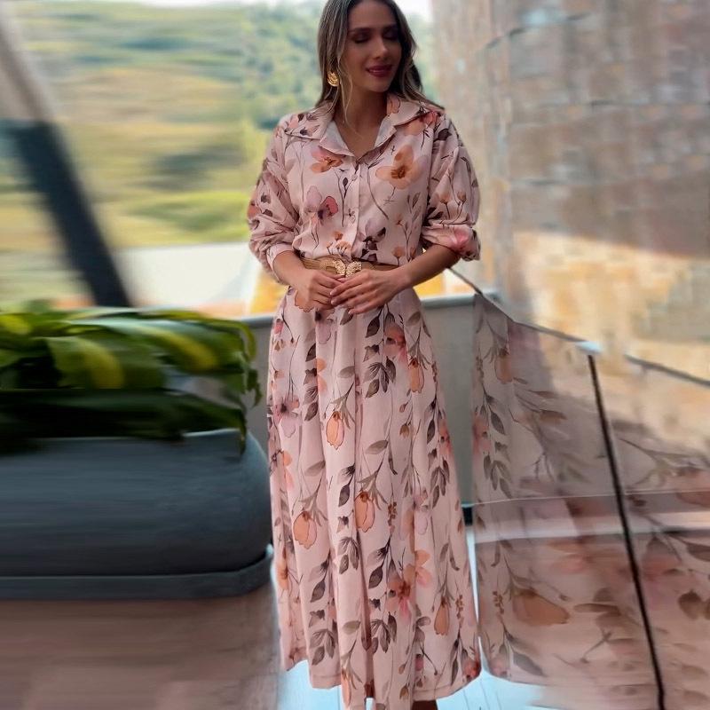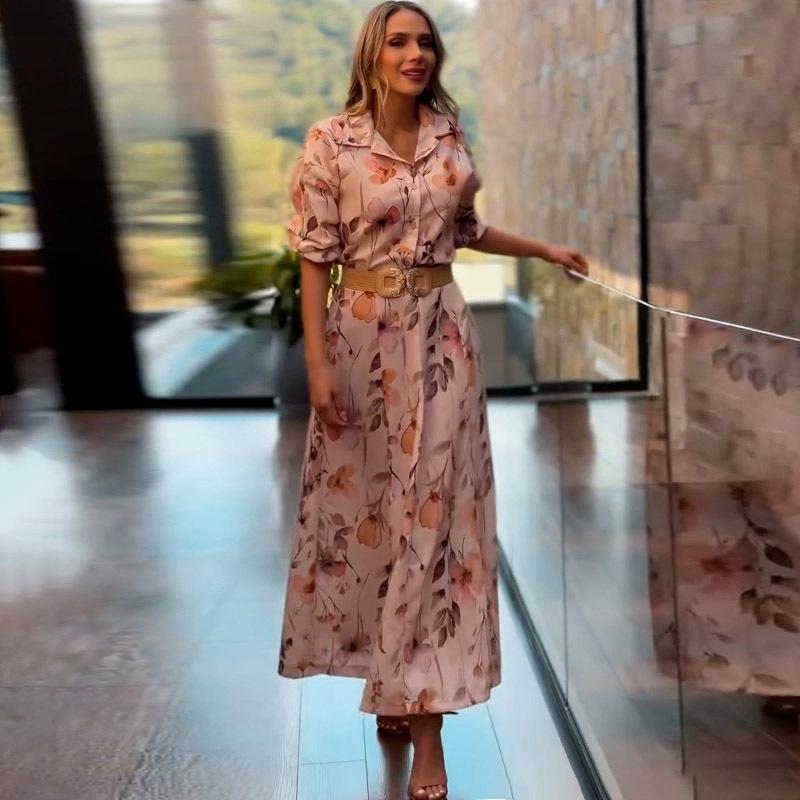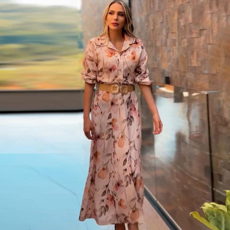 Vestido camisero con cinturón para mujer, estampado a la moda, ajustado, con cintura, para verano, Amazon 2025, Europa y Estados Unidos, transfronterizo