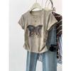 En stock Nueva camiseta de manga corta con estampado plisado de verano para mujer, de manga corta, con hombros descubiertos, estilo dulce y sexy.