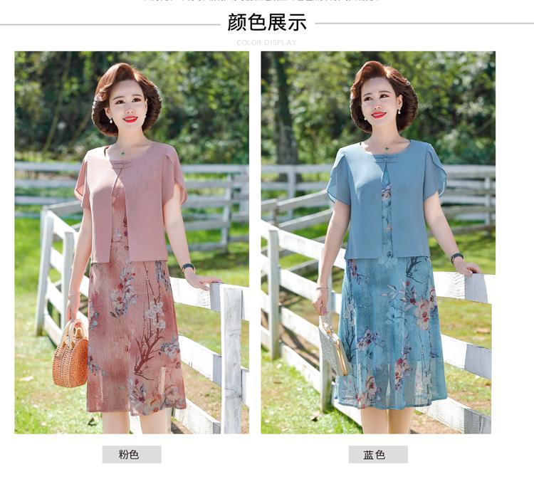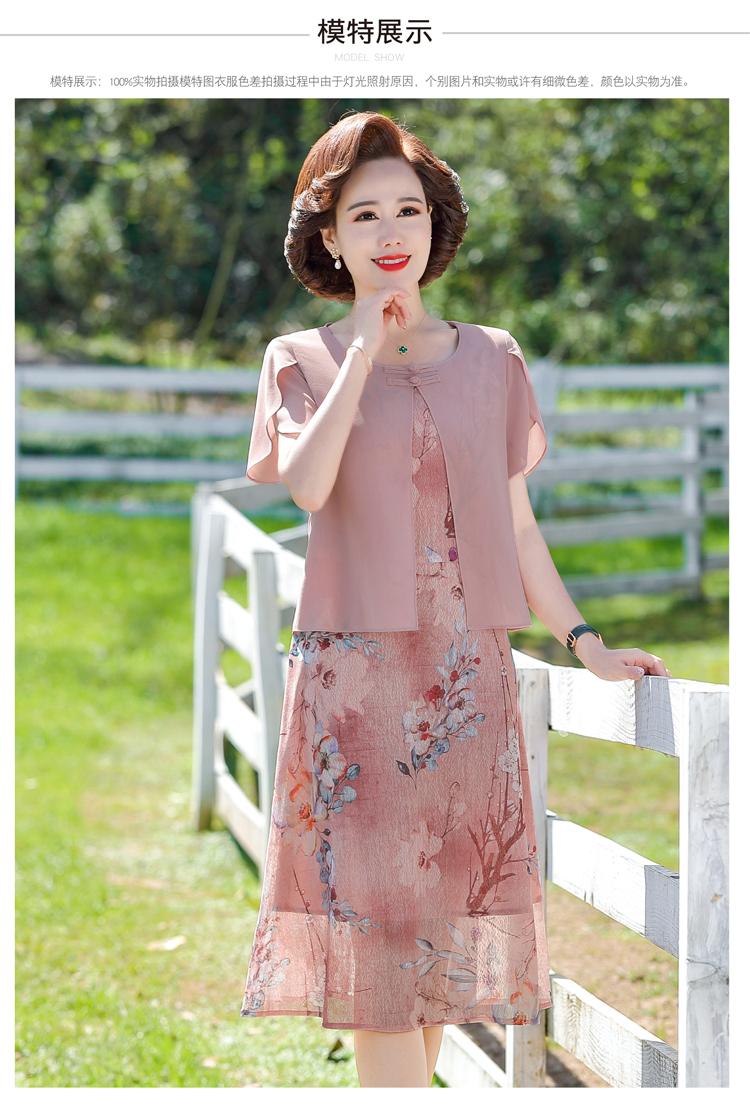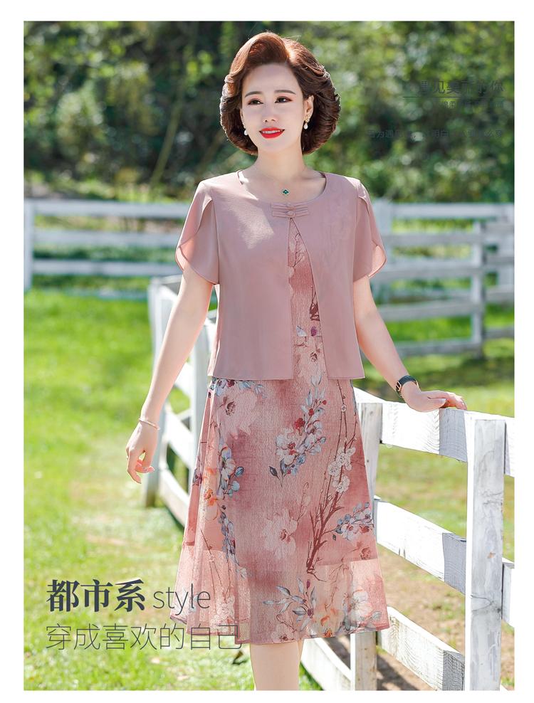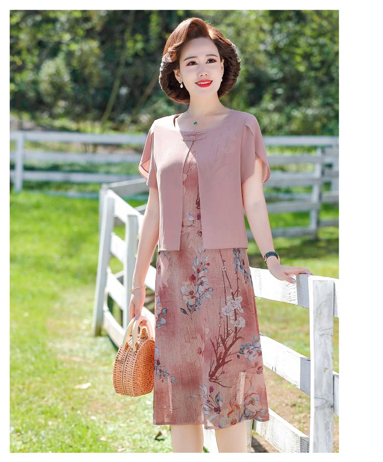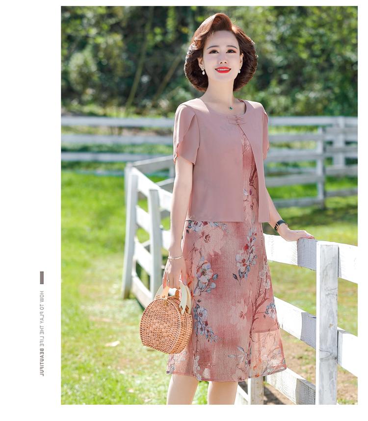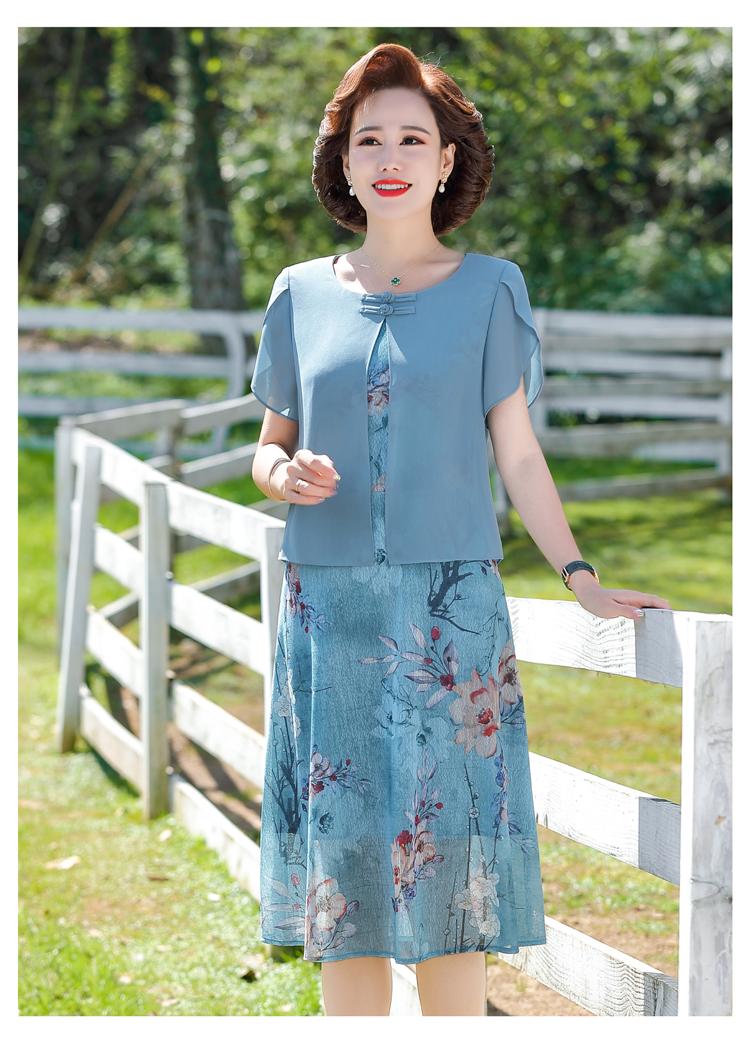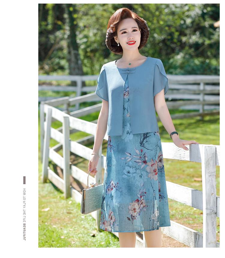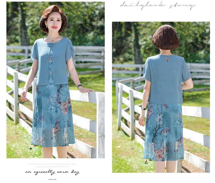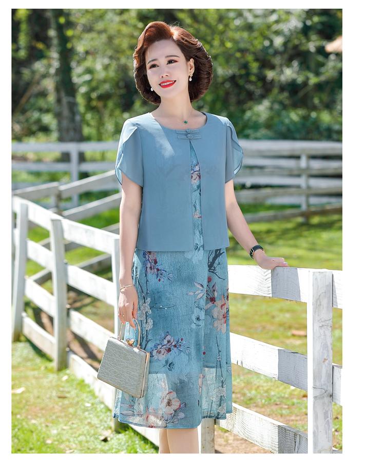 Vestido de gasa de verano para mujeres de mediana edad, buen temperamento de verano para madre, falda a la rodilla, conjunto de dos piezas falsas para mujeres de mediana edad