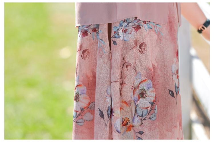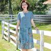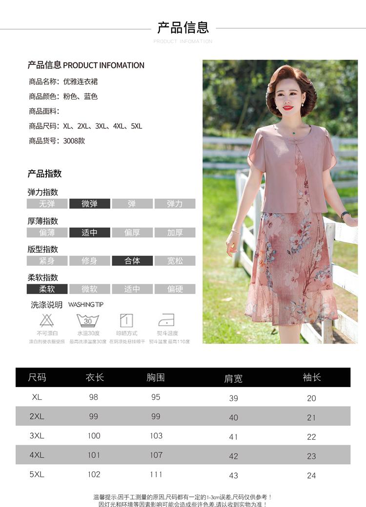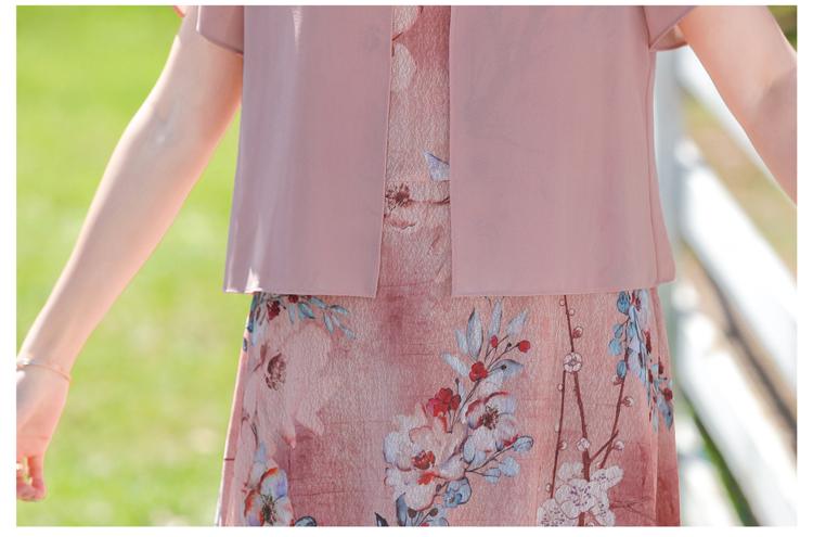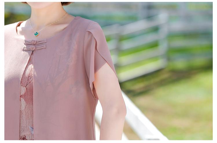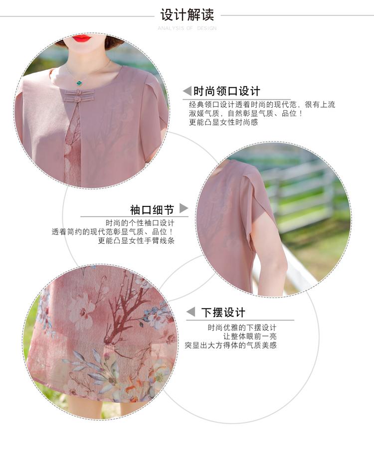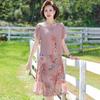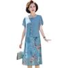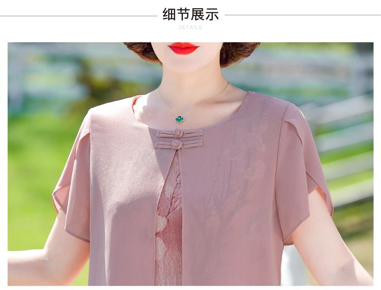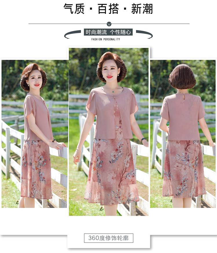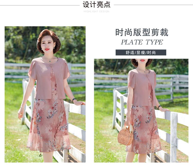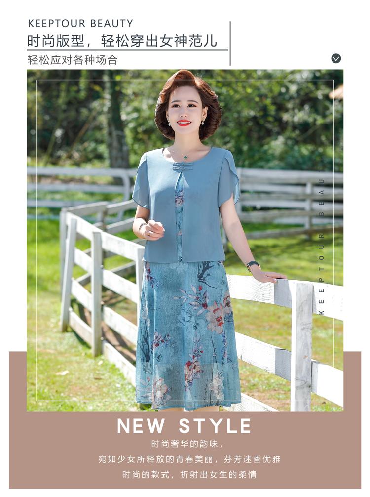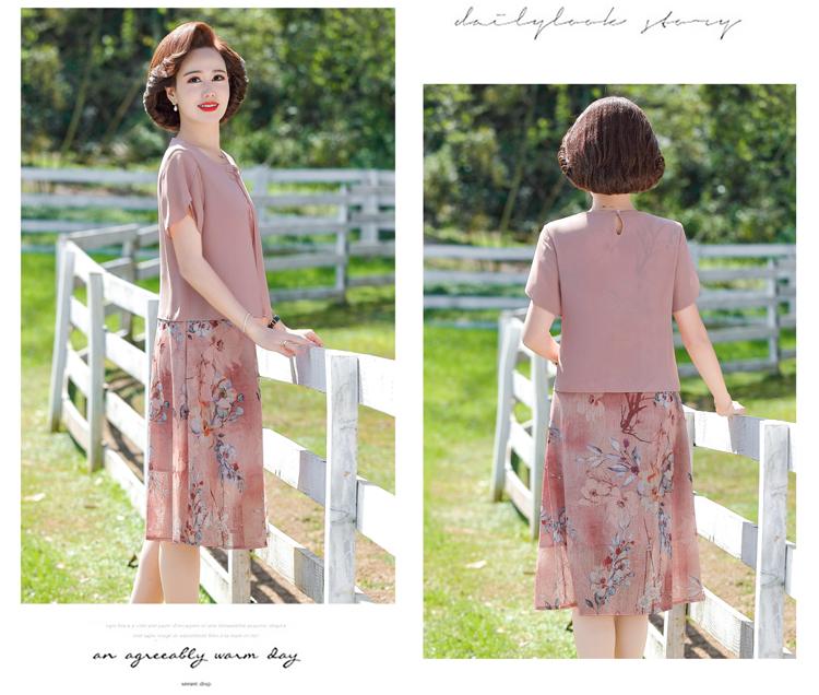 Vestido de gasa de verano para mujeres de mediana edad, buen temperamento de verano para madre, falda a la rodilla, conjunto de dos piezas falsas para mujeres de mediana edad