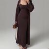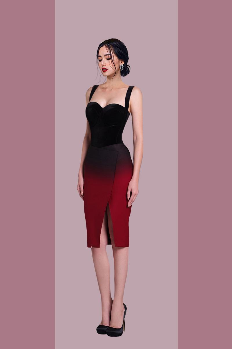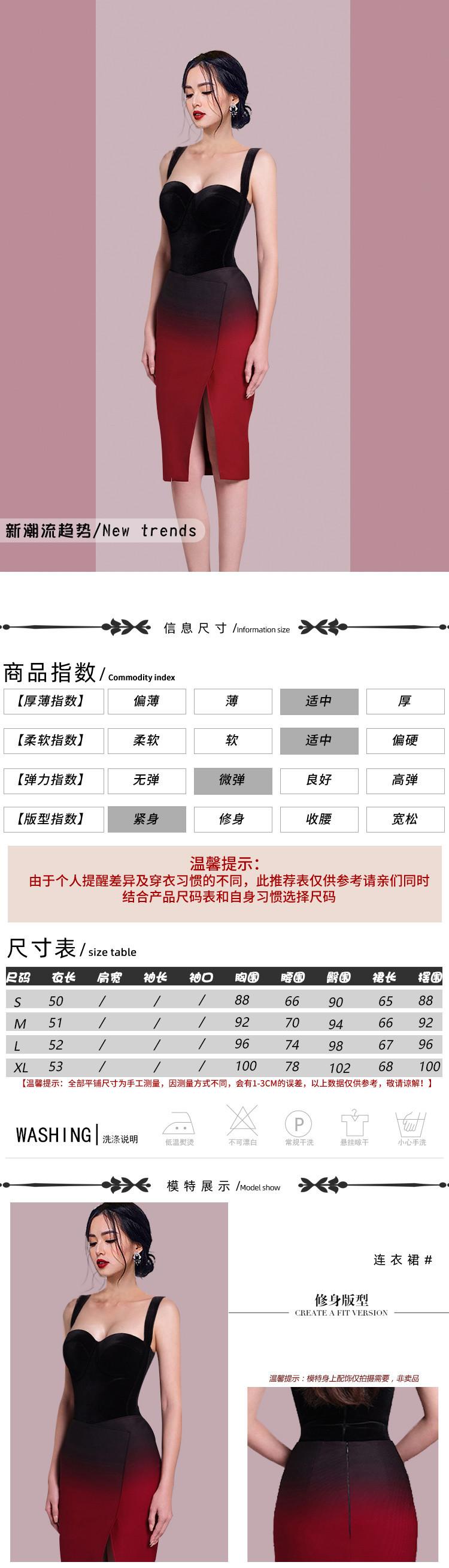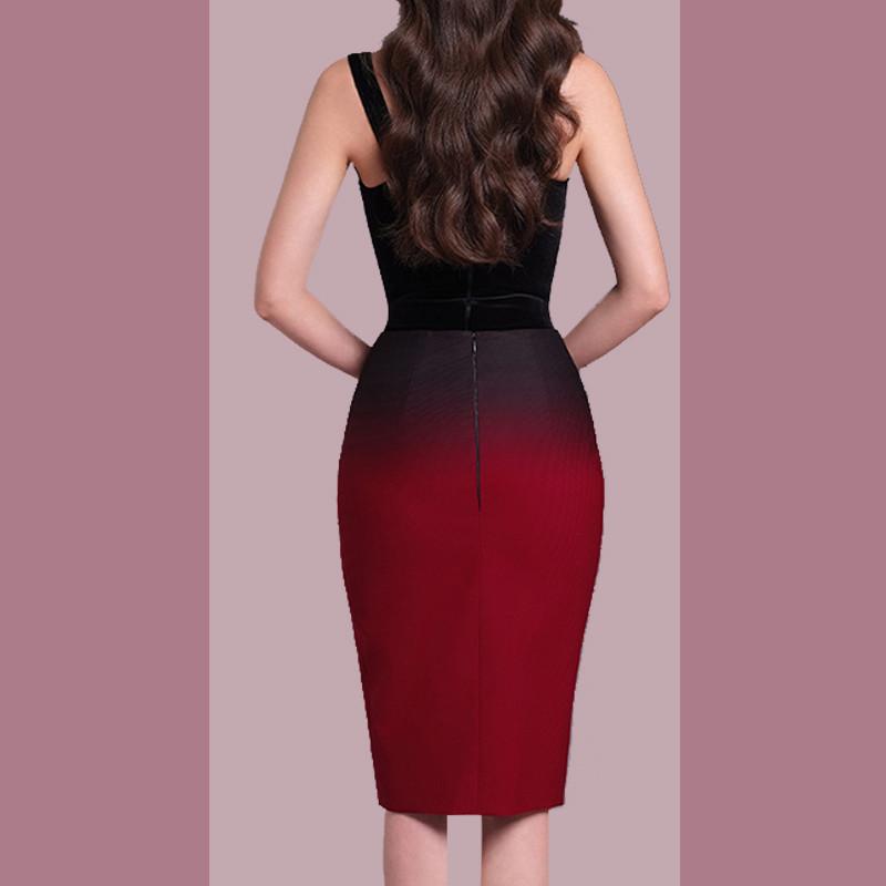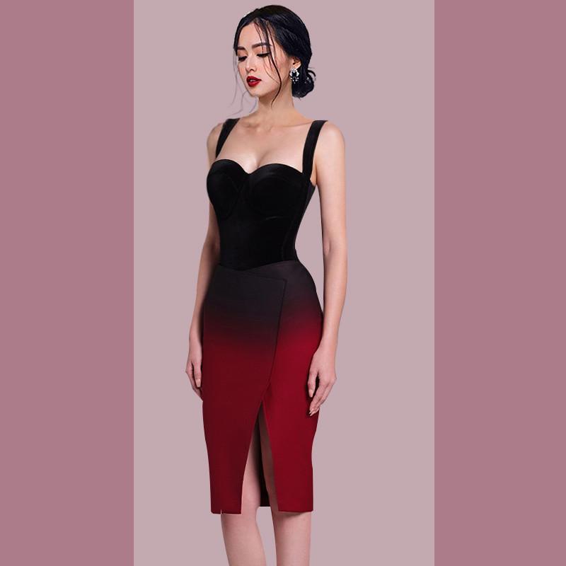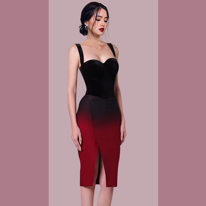 Transfronterizo 2025 Nuevo Estilo Celebridad Elegante Elegante Ajustado Color Degradado Tirantes Dobladillo Abertura Vestido Conjunto de Dos Piezas