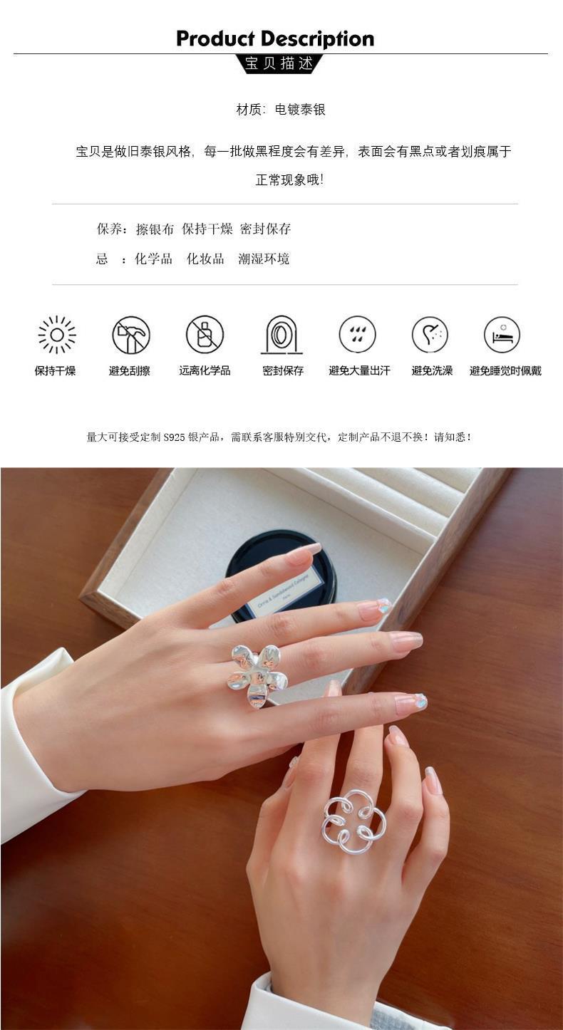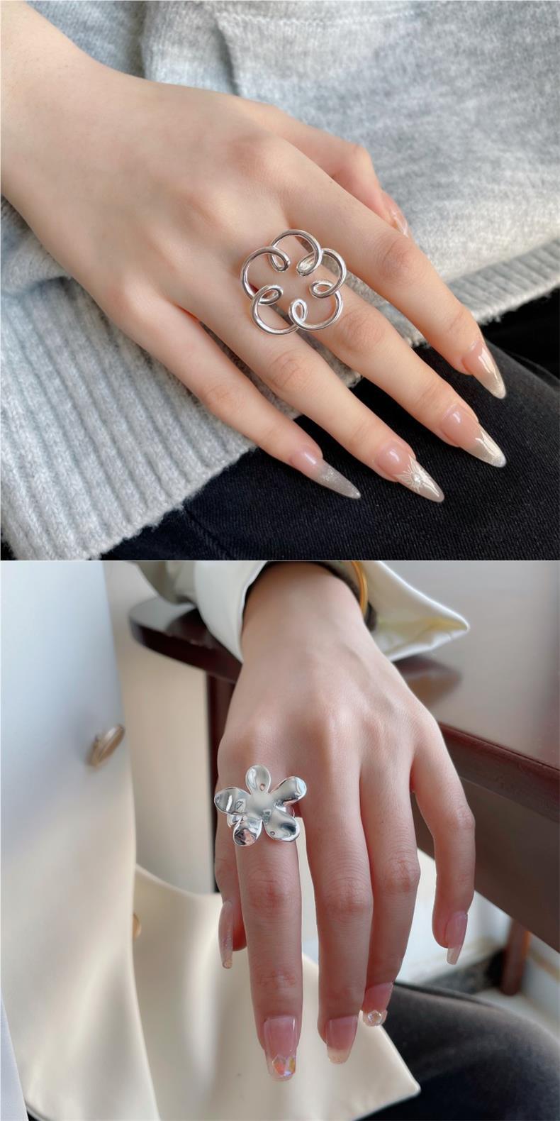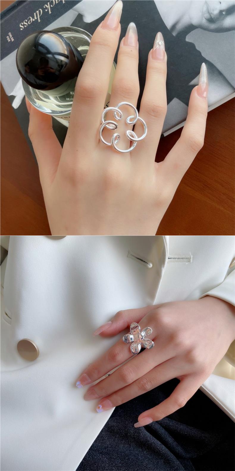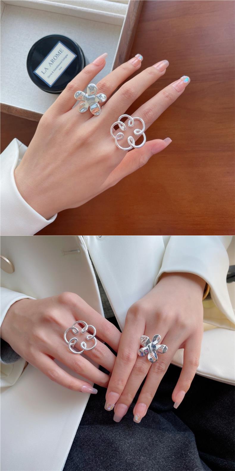 Anillo de Flor Grande Dulce y Cool para Mujer, Líneas Geométricas Huecas, Anillo Abierto Irregular, Anillo de Dedo Índice Popular Estilo Ins Tendencia
