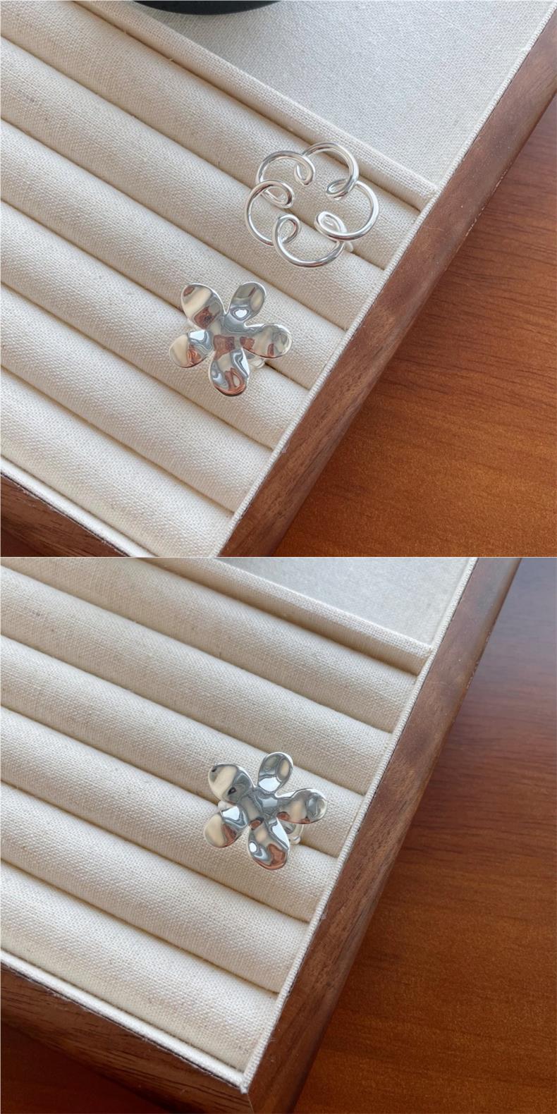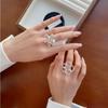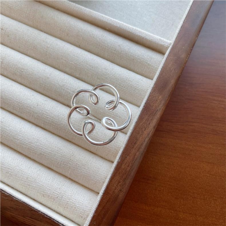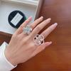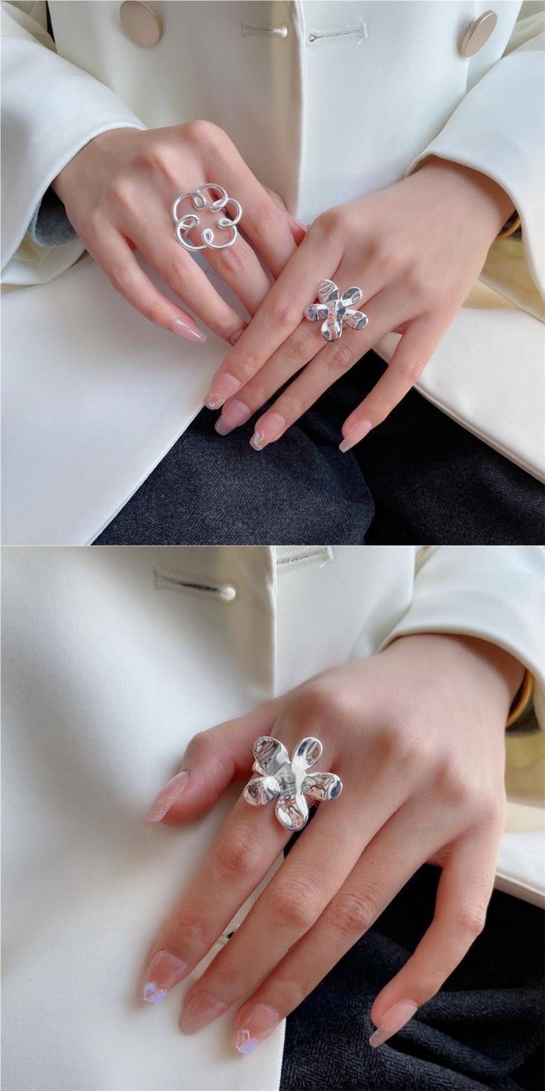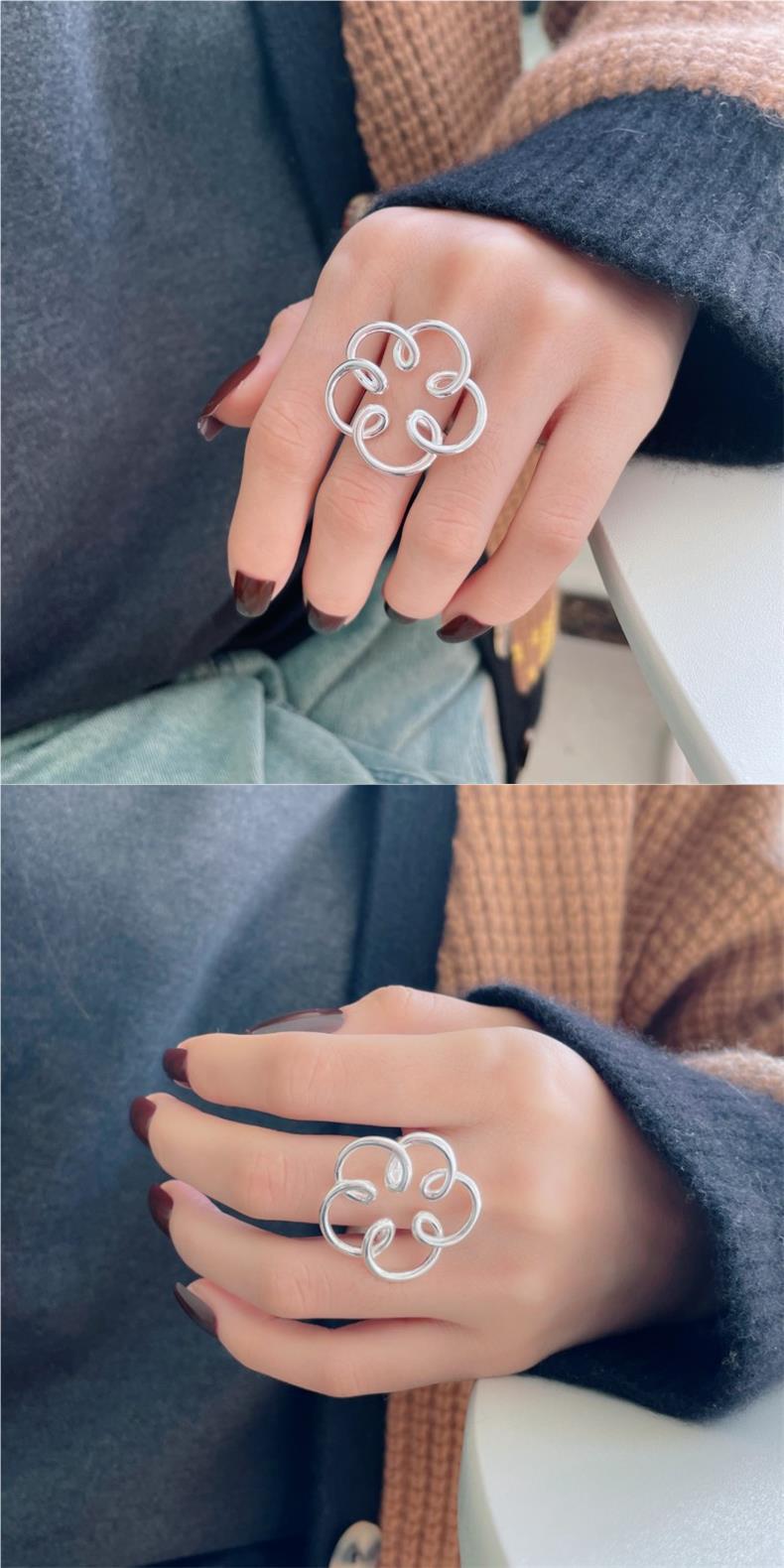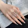 Anillo de Flor Grande Dulce y Cool para Mujer, Líneas Geométricas Huecas, Anillo Abierto Irregular, Anillo de Dedo Índice Popular Estilo Ins Tendencia