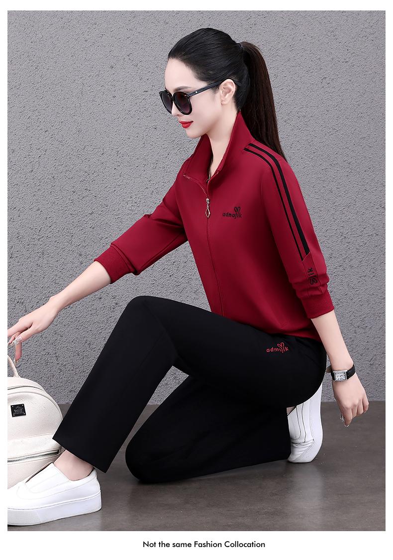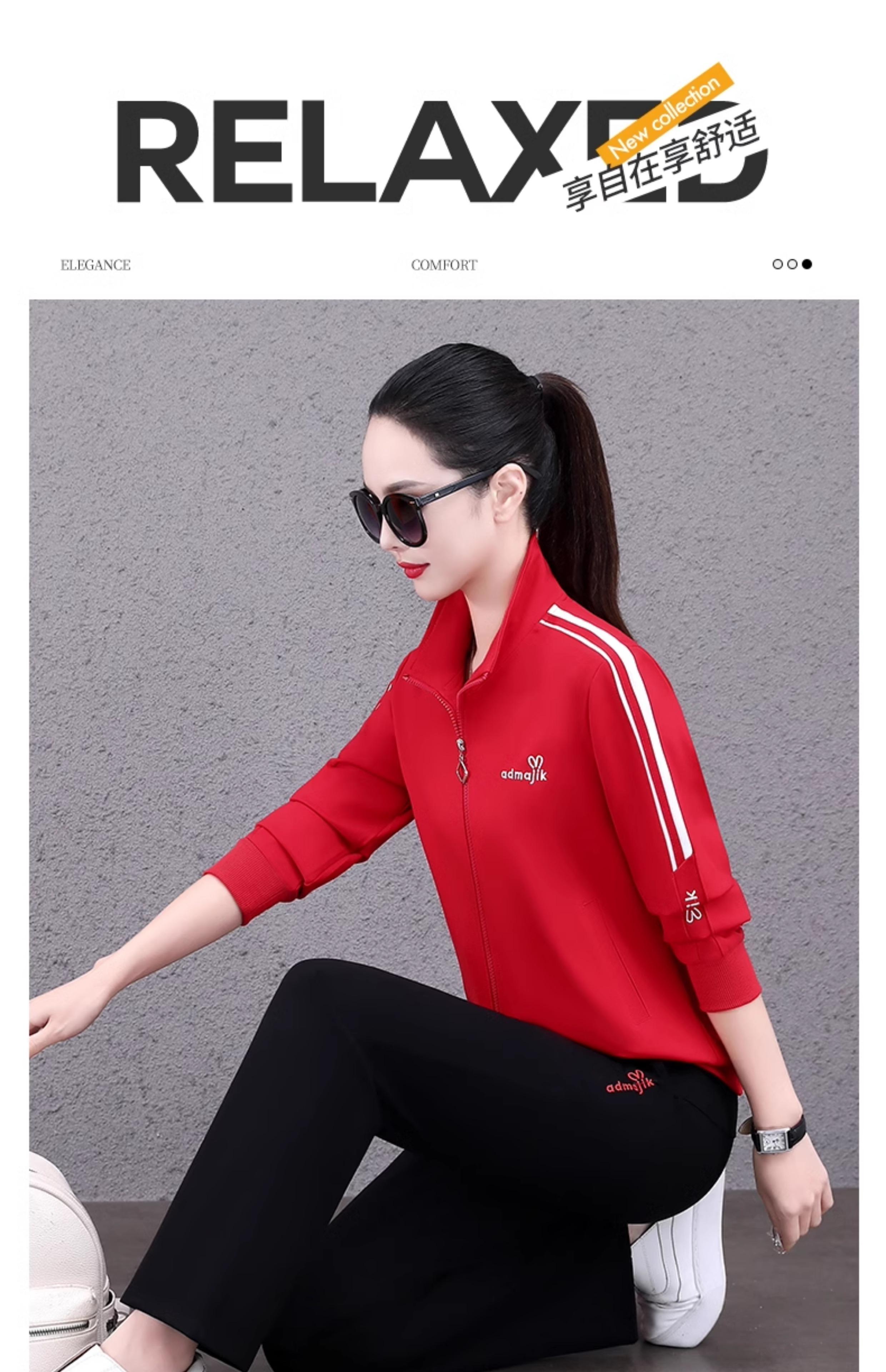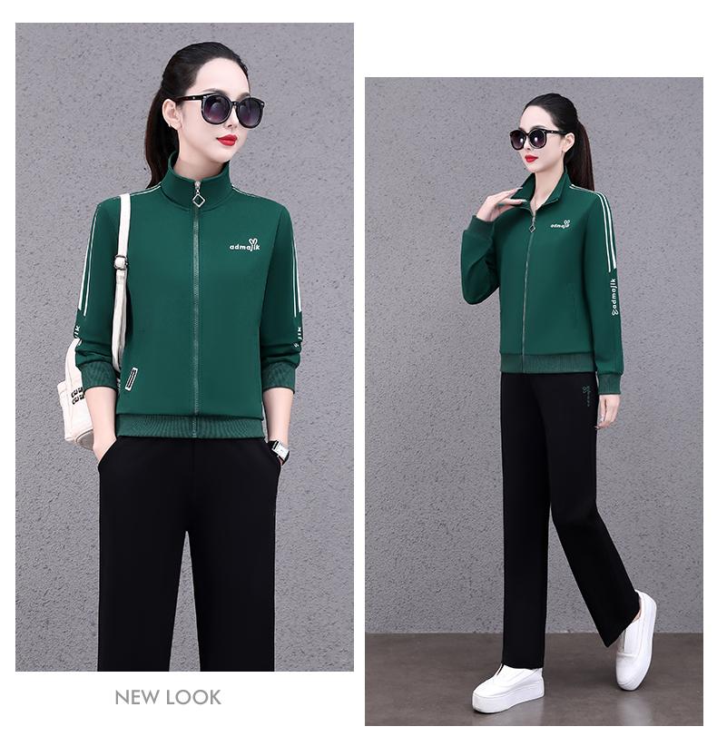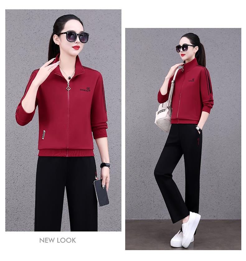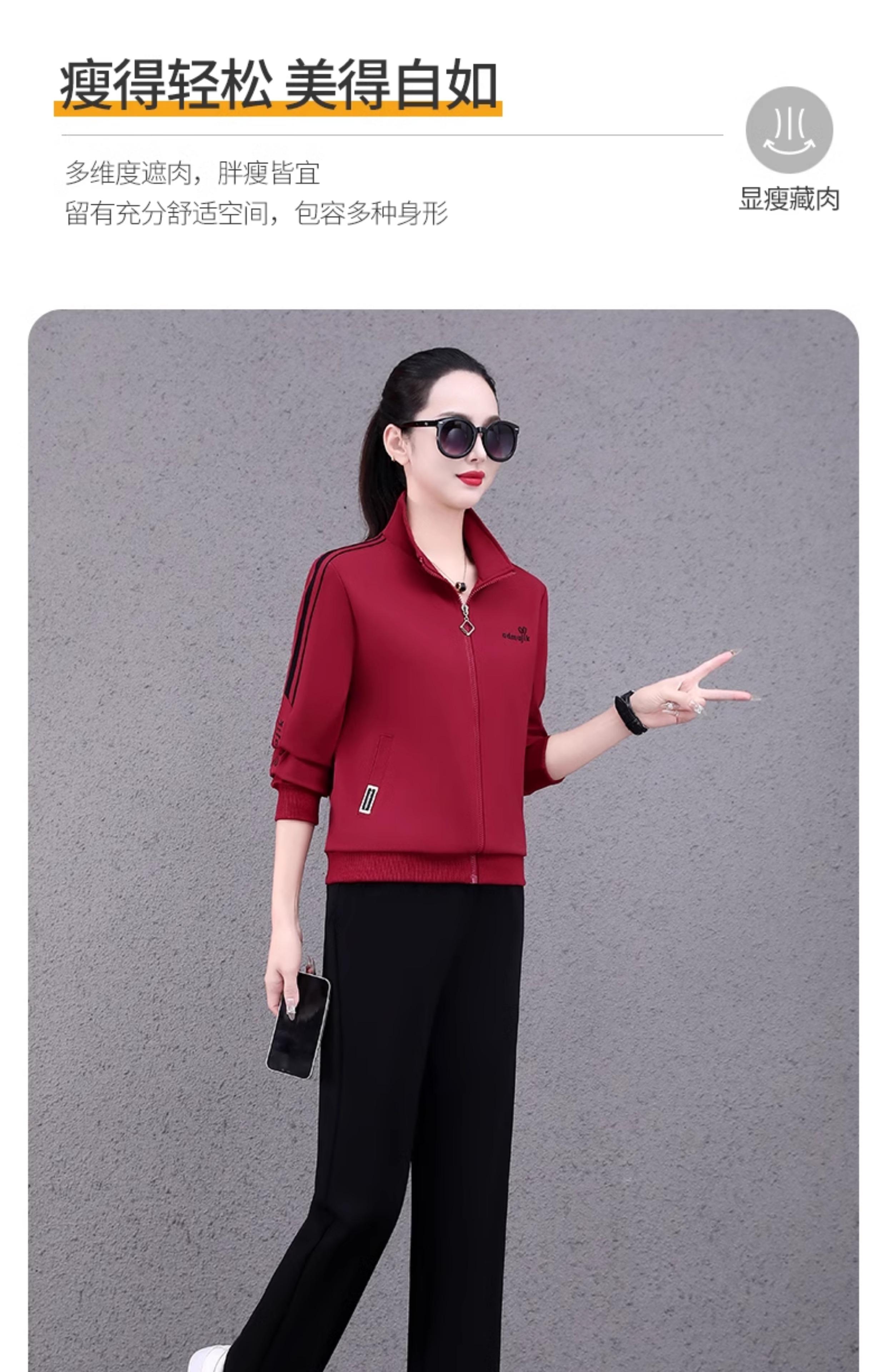 Traje deportivo de alta gama para mujer, chaqueta cárdigan de manga larga para mamá, ropa holgada antiedad para correr, conjunto informal de dos piezas para primavera y otoño